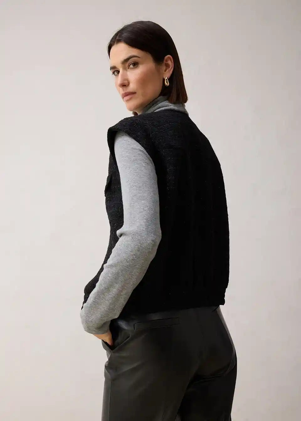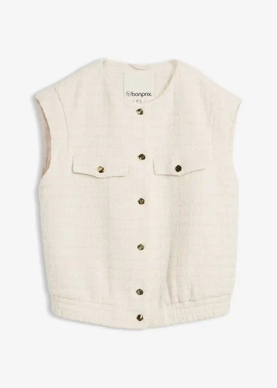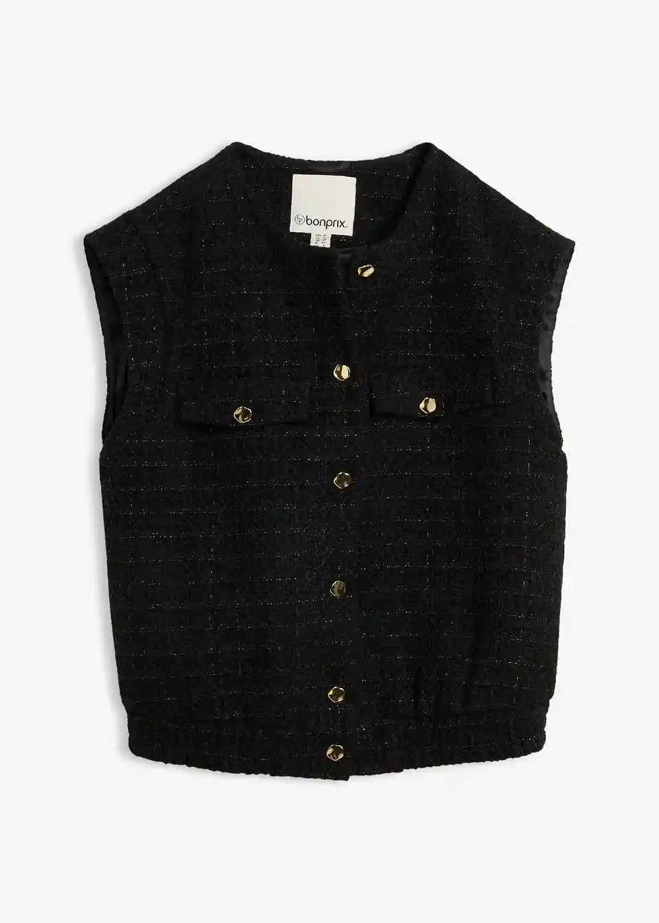 elegantan prsluk-blazer s udjelom vune i ukrasnim zlatnim gumbima