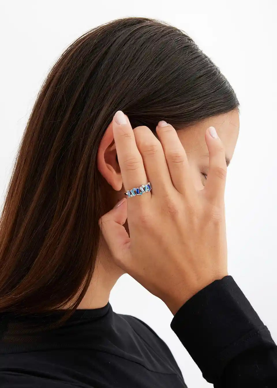 Karizmatičan prsten sa staklenim kristalima u baguette brušenju