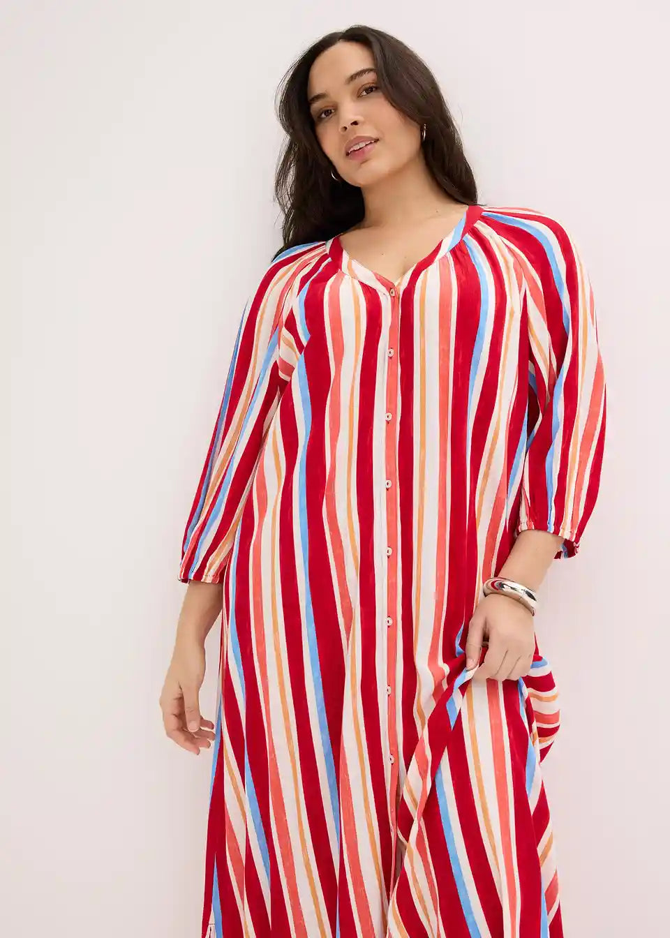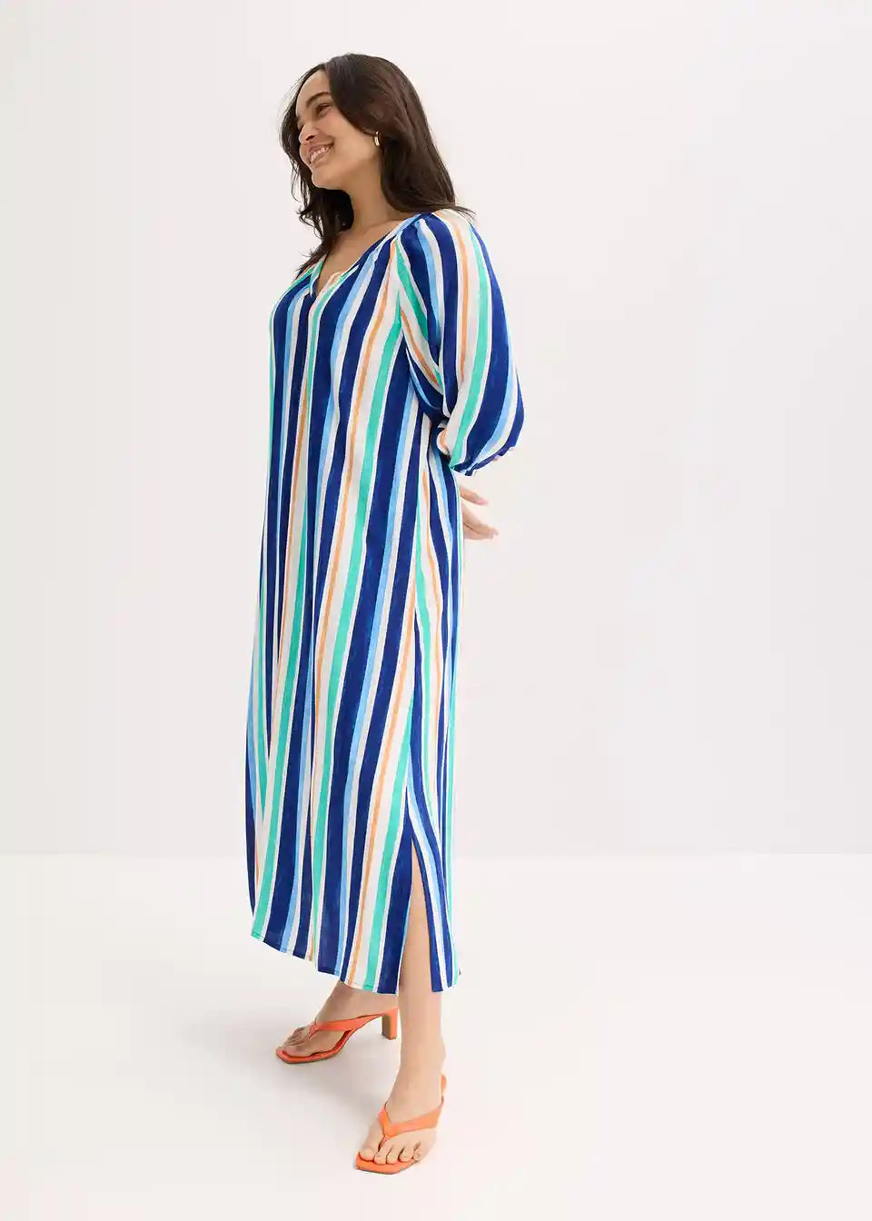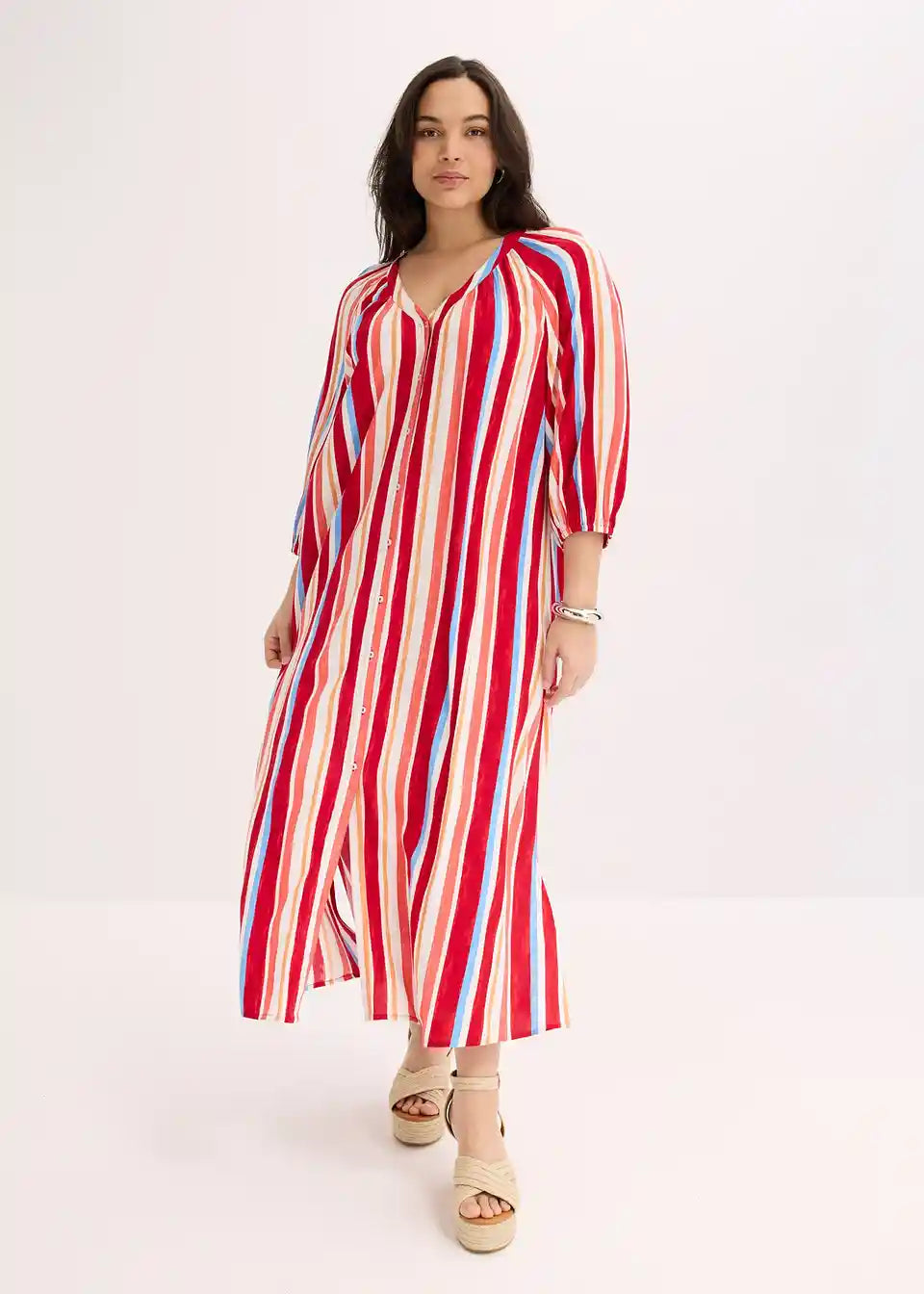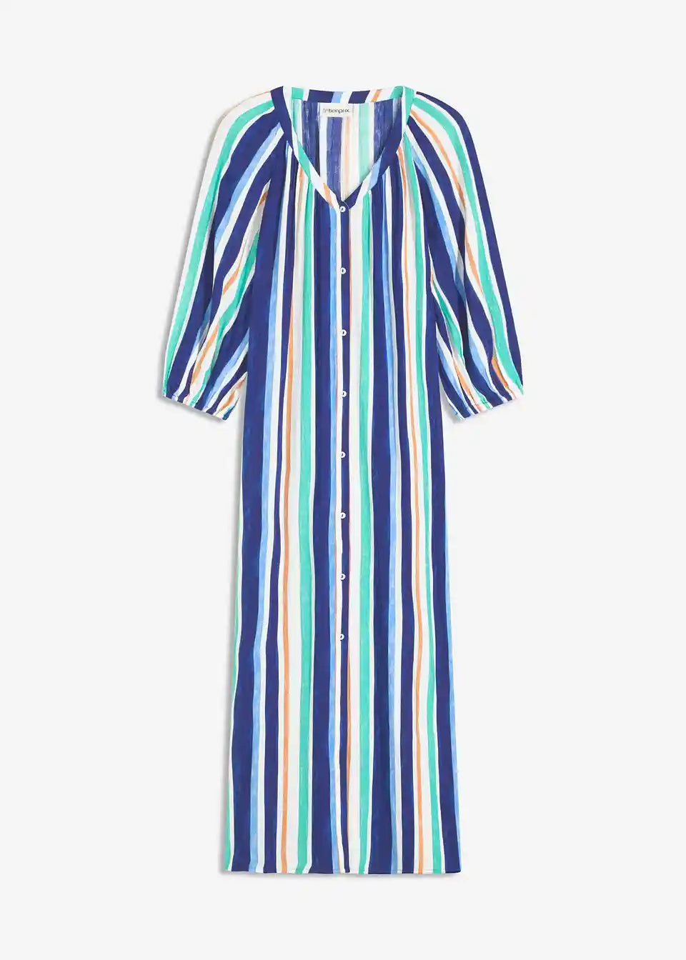 prugasta kaftan haljina od strukturirane viskoze s prednjim kopčanjem na gumbe i bočnim prorezima