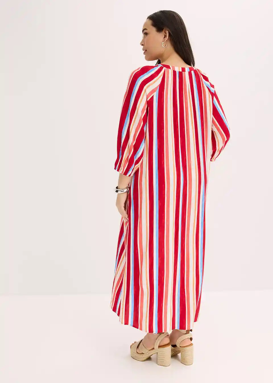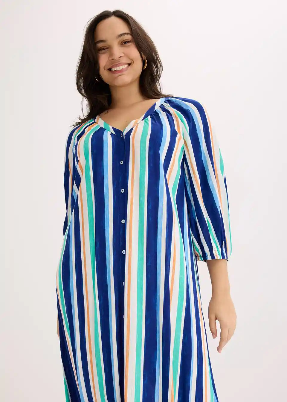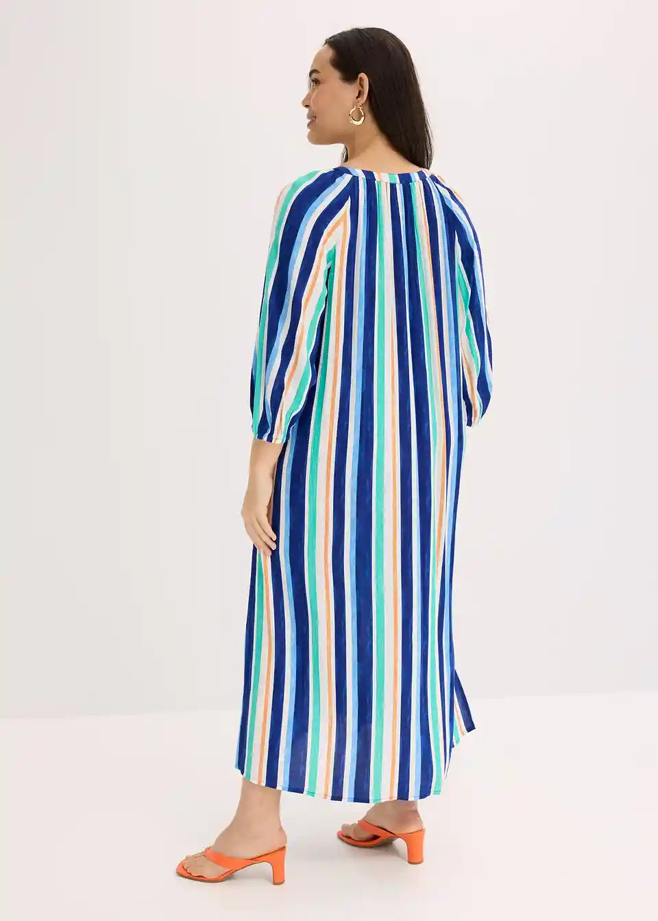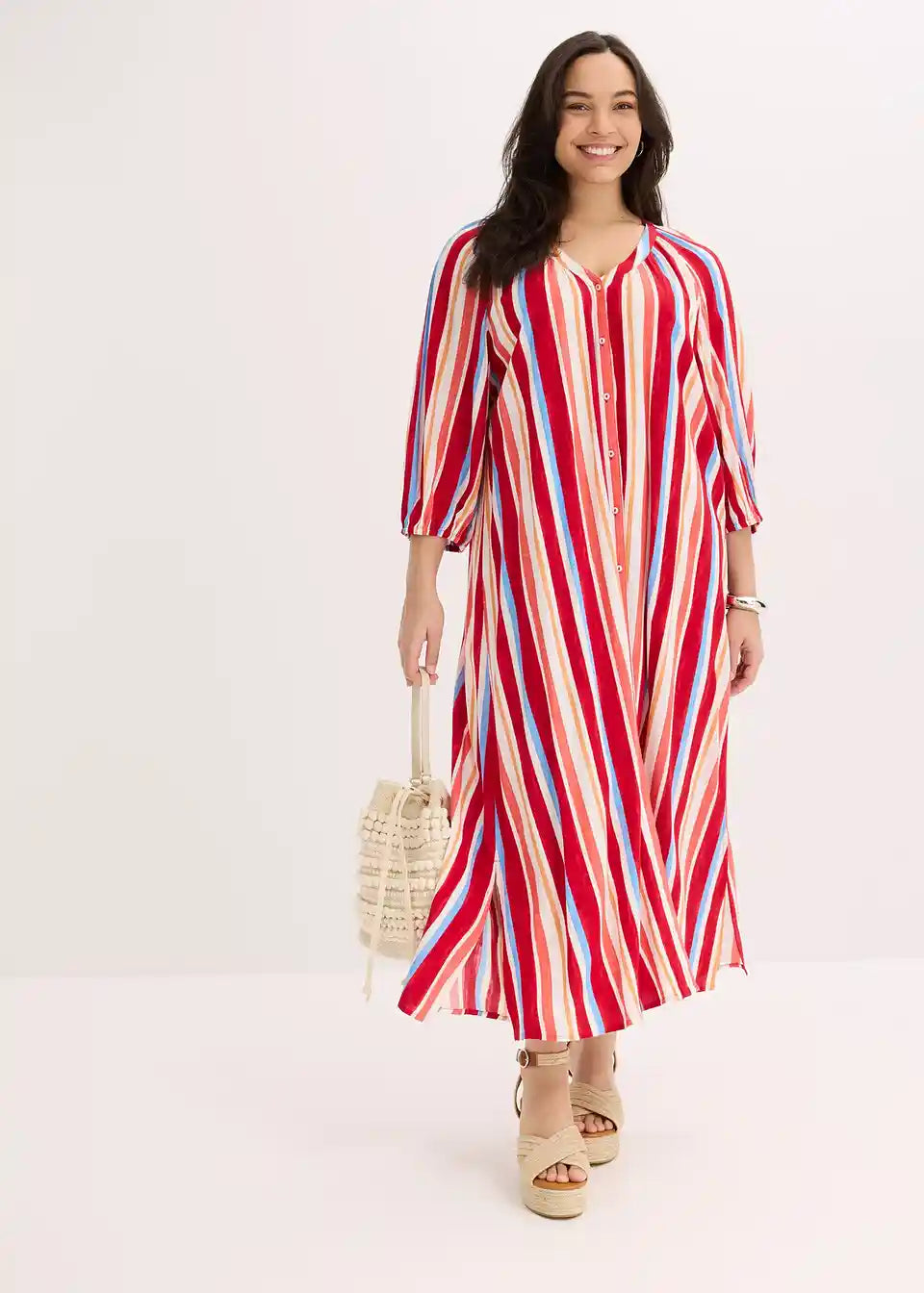 prugasta kaftan haljina od strukturirane viskoze s prednjim kopčanjem na gumbe i bočnim prorezima