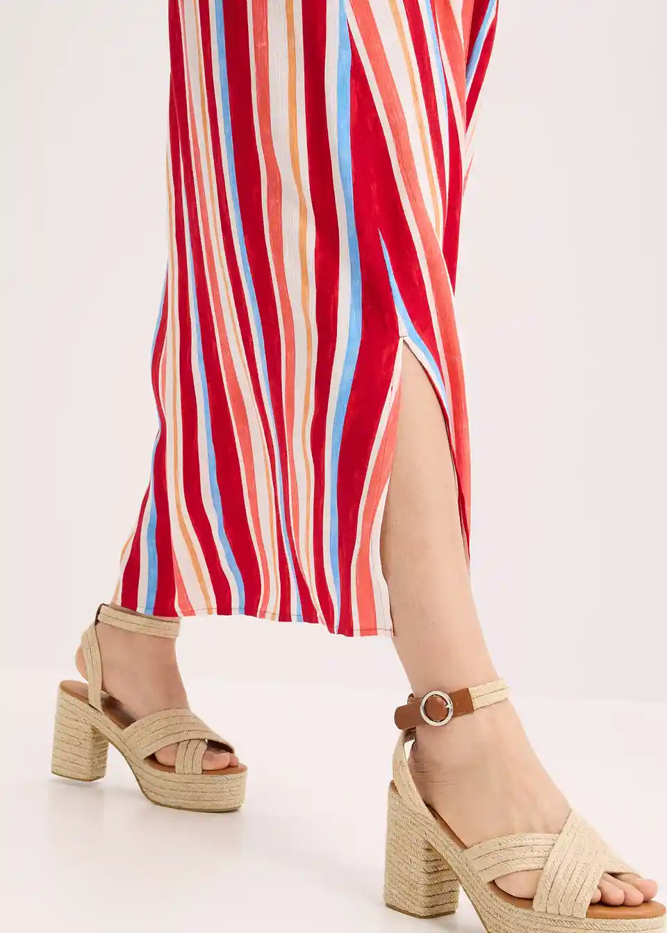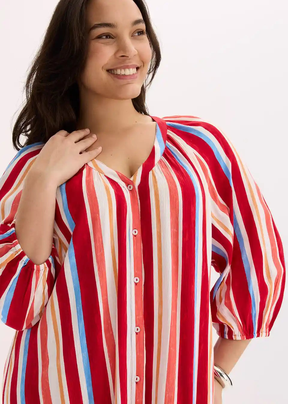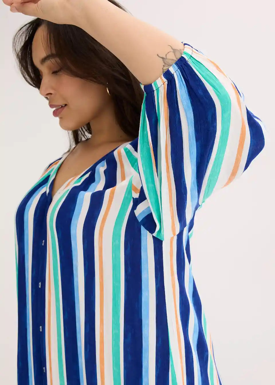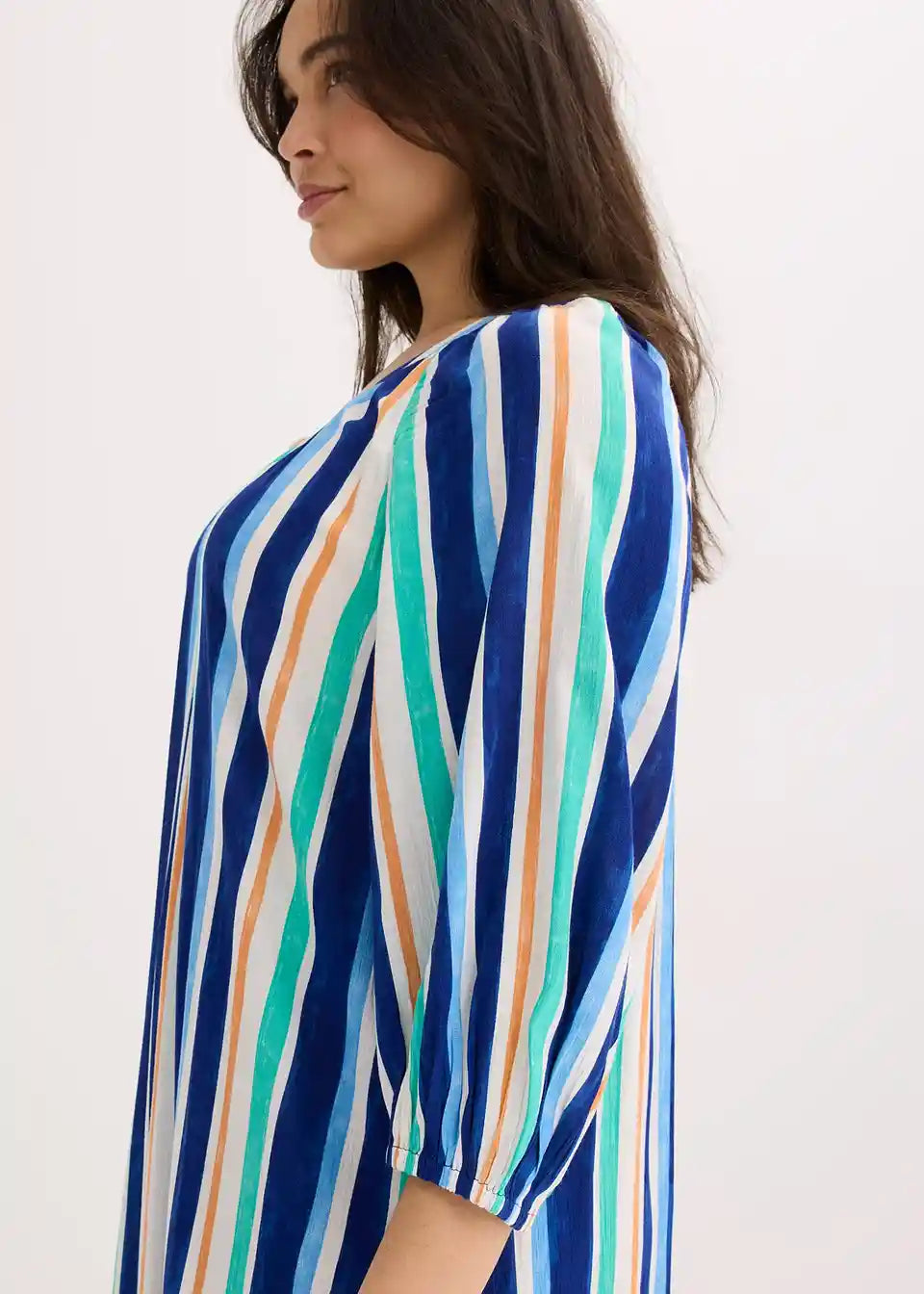 prugasta kaftan haljina od strukturirane viskoze s prednjim kopčanjem na gumbe i bočnim prorezima