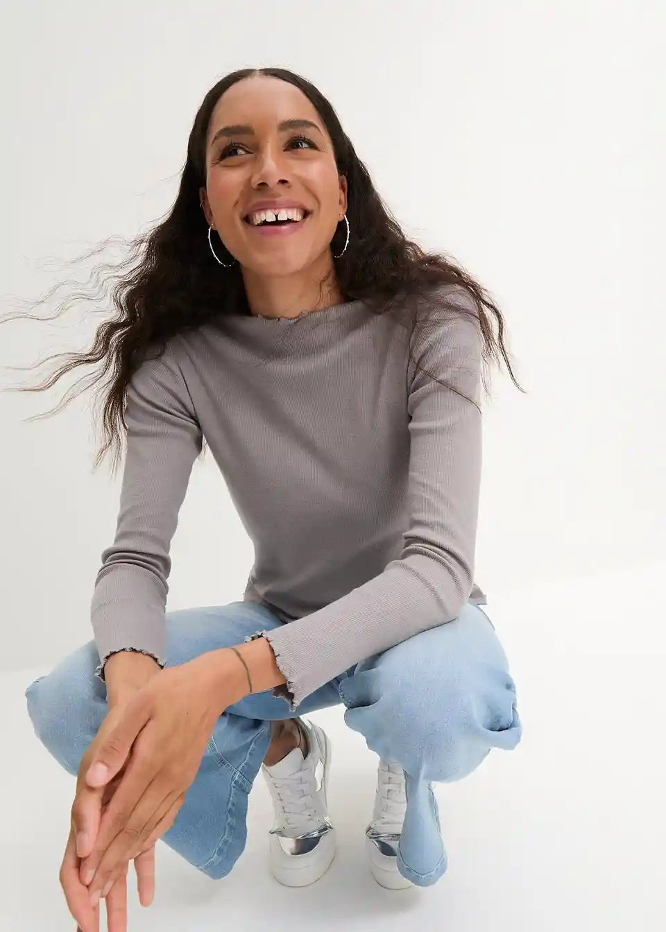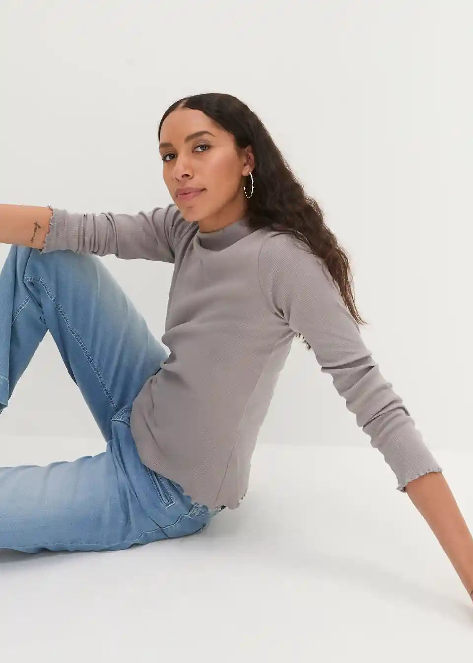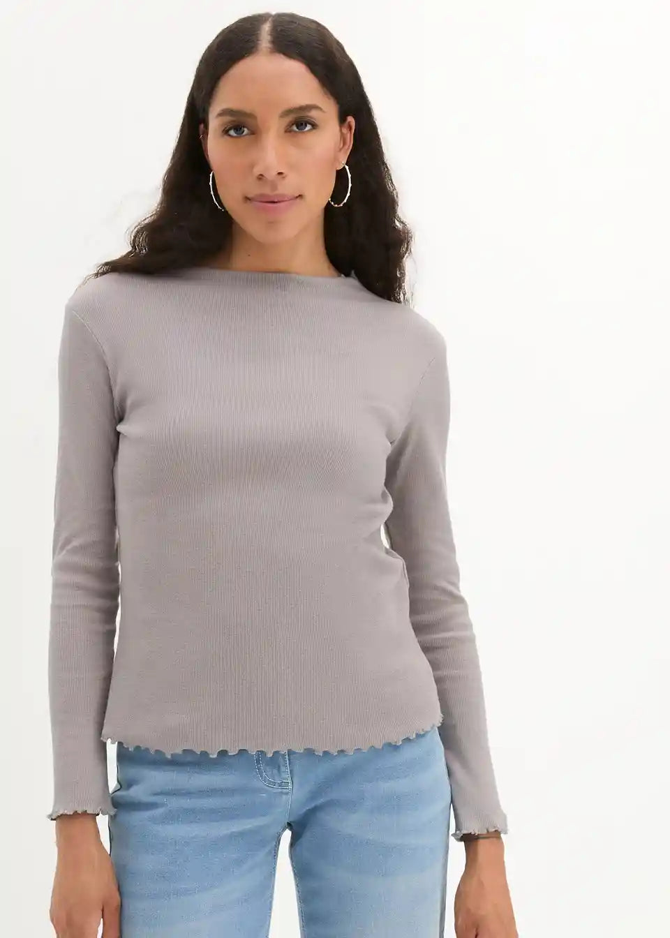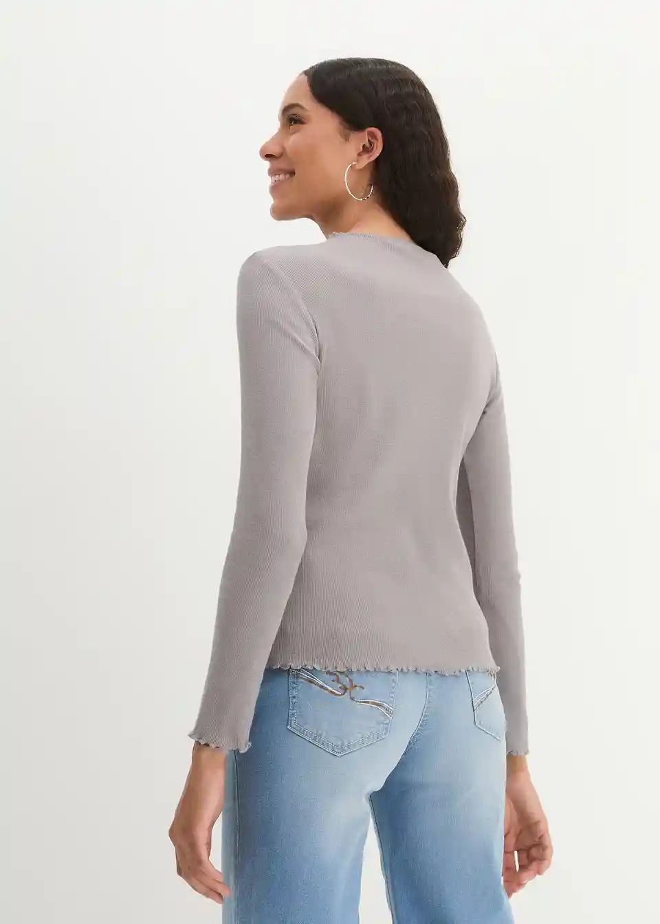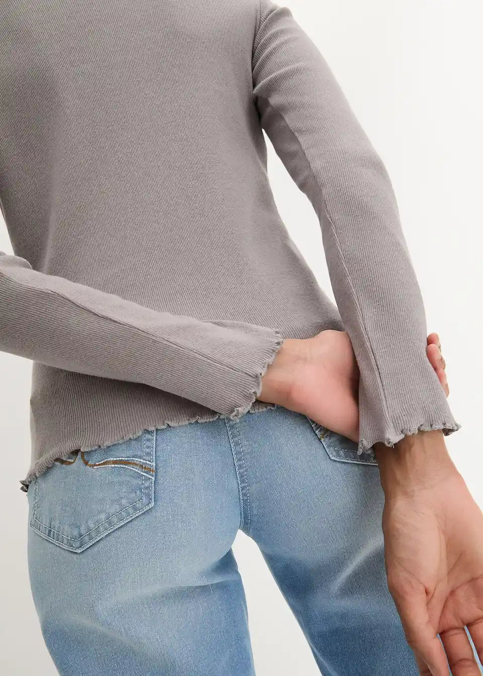 Rebrasta majica s valovitim rubom uskog kroja