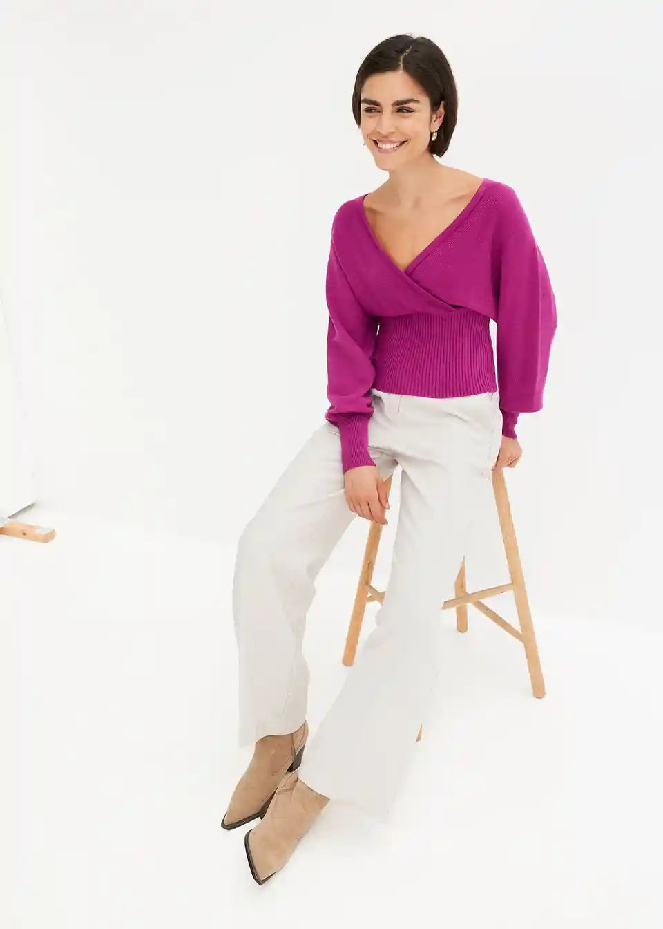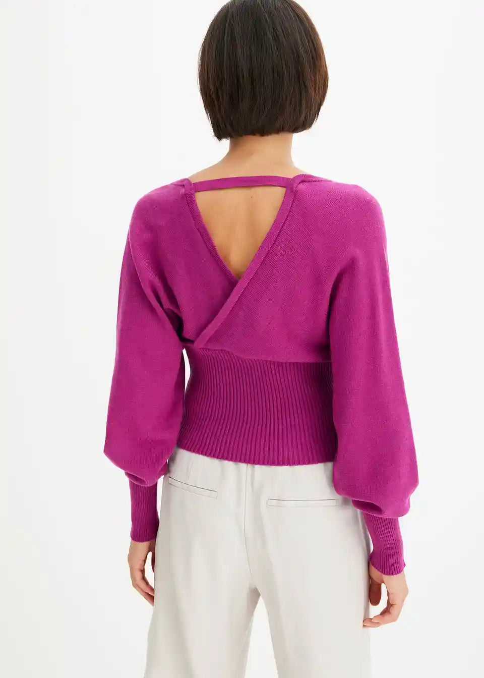 Ženski pulover s rukavima šišmiša i izrezom na leđima