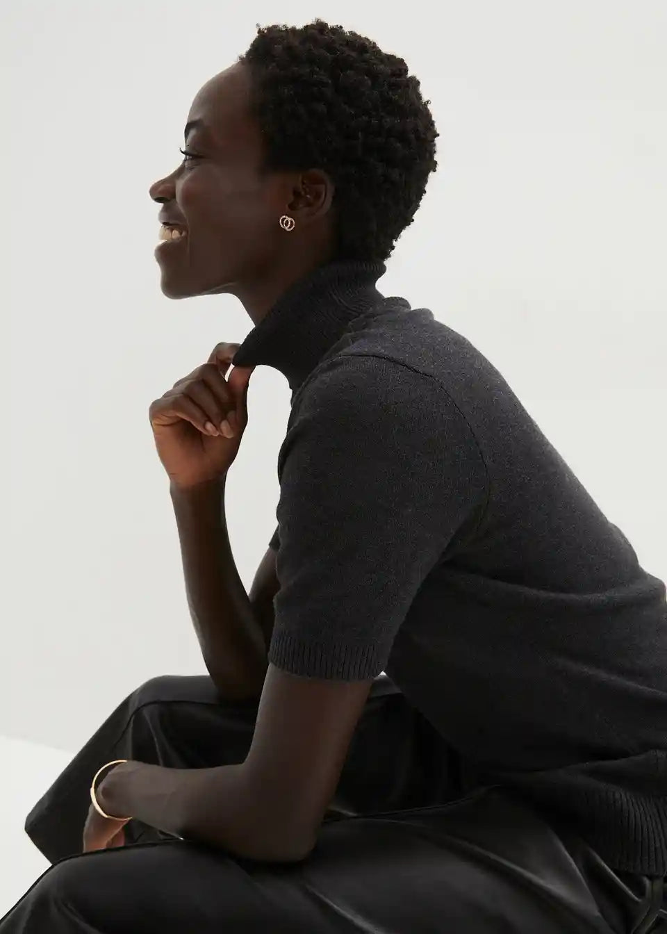 prianjajućeg kroja, s dolčevitom i kratkim rukavima, duljina otprilike 60 cm (vel. 36/38) do otprilike 74 cm (vel. 56/58), periv u perilici,