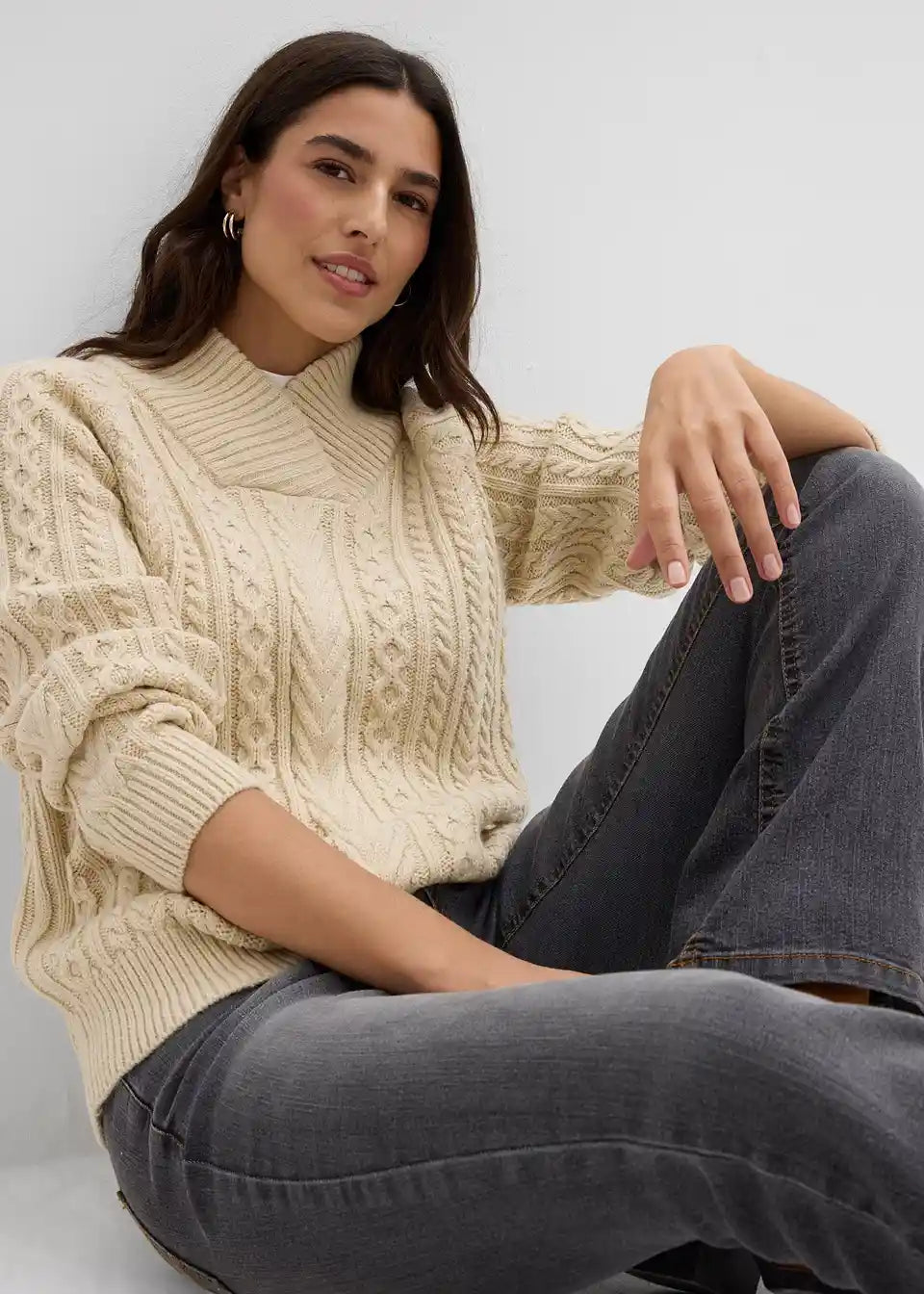 Pulover s pletenim uzorkom sa modernim V-izrezom