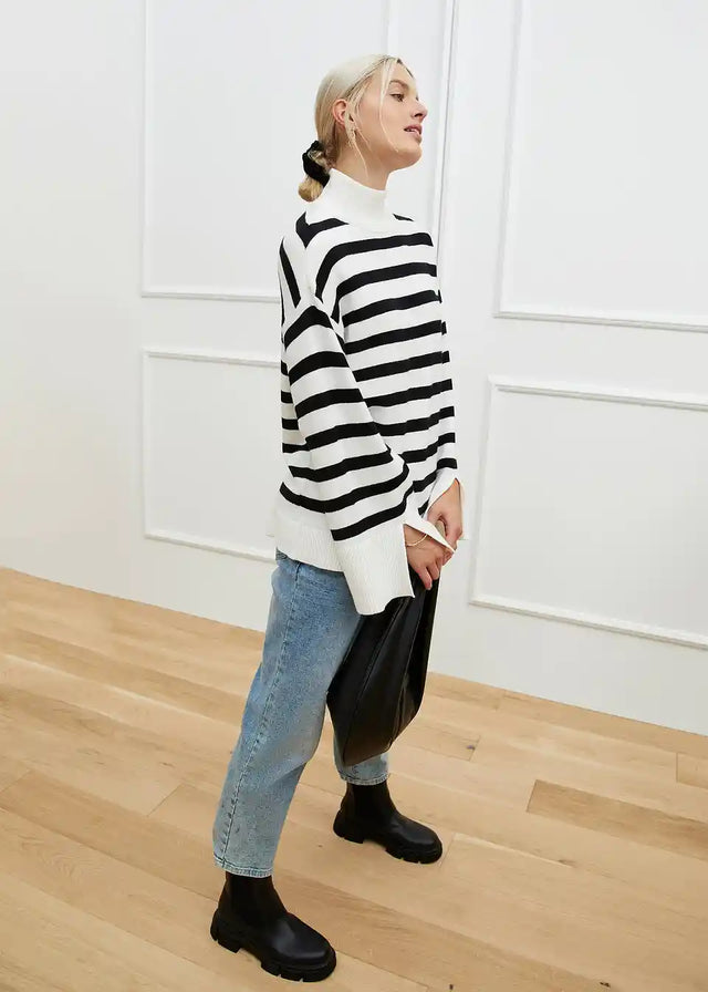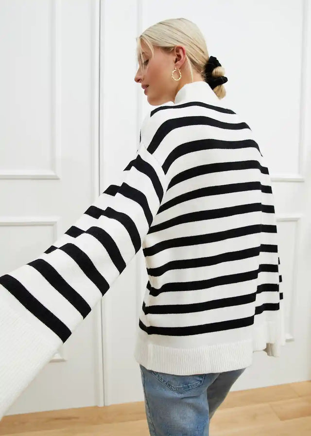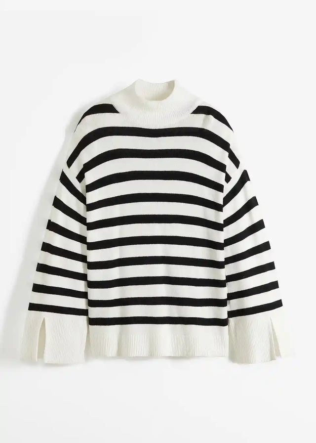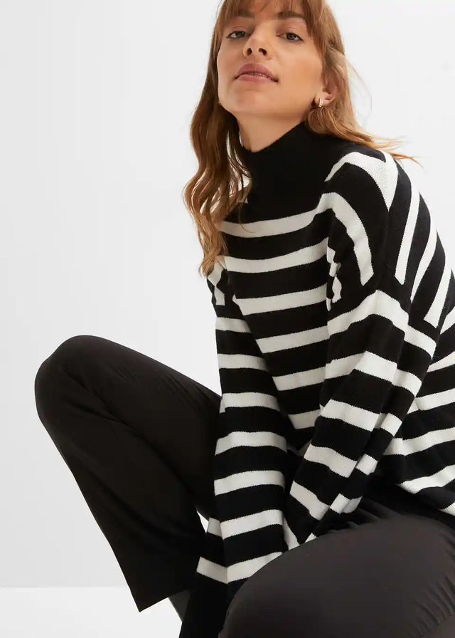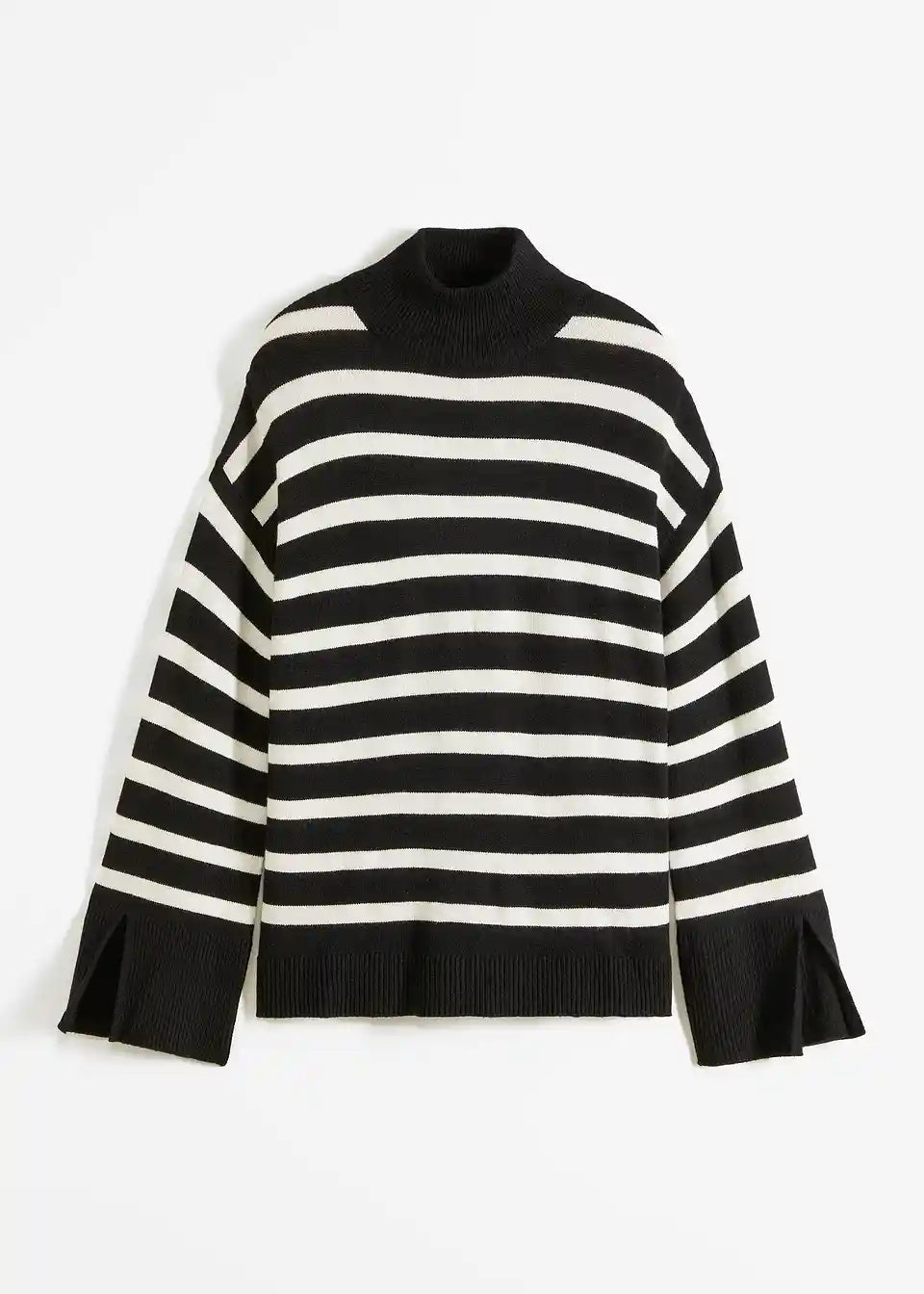 Ganz softer, weicher Pulli, toller Schnitt, normale Länge. Die offenen Ärmel sind allerdings gewöhnungsbedürftig. Ich habe ihn eine Nummer kleiner bestellt, passt super. Würde ich auf jeden Fall wieder bestellen.