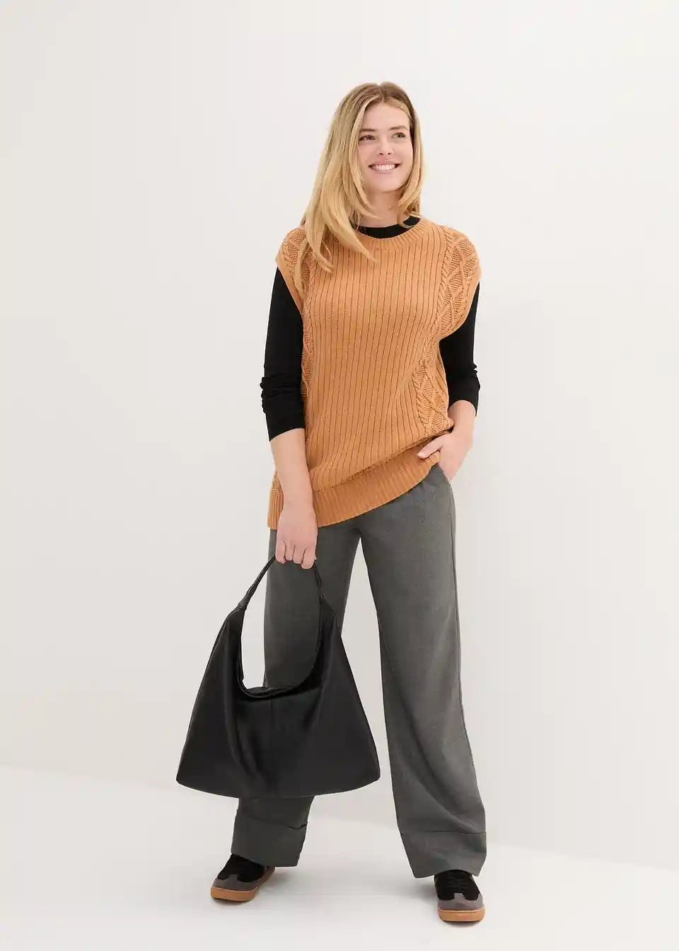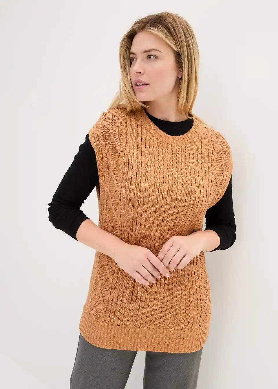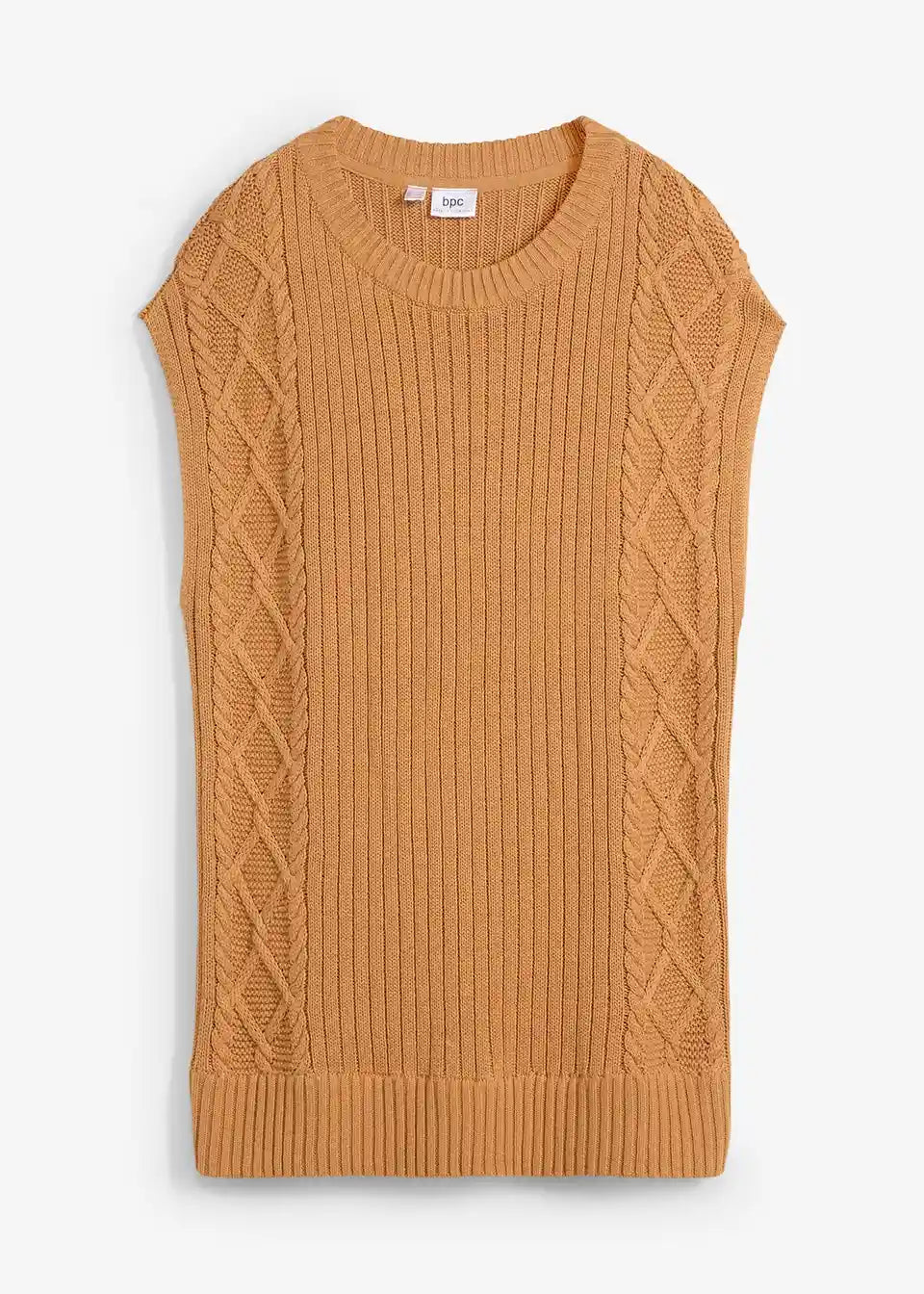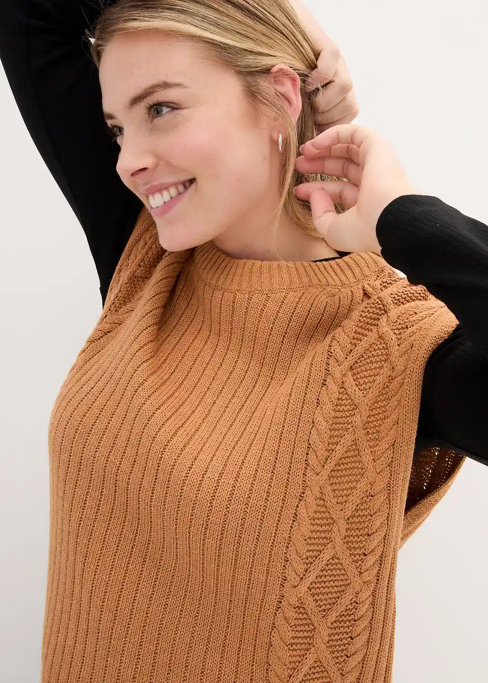 Udoban oversize pulover bez rukava s pletenim uzorkom