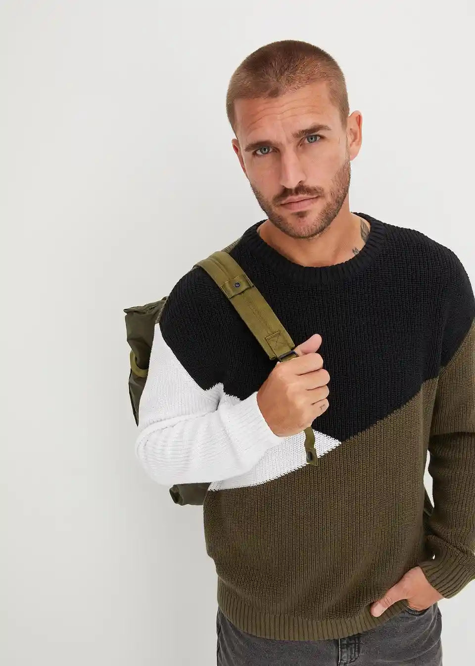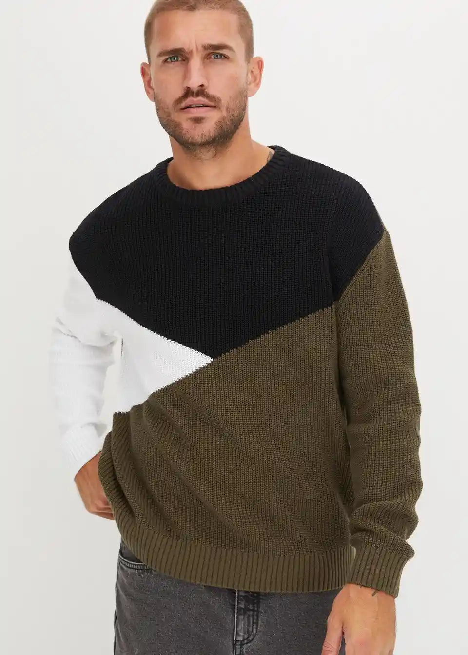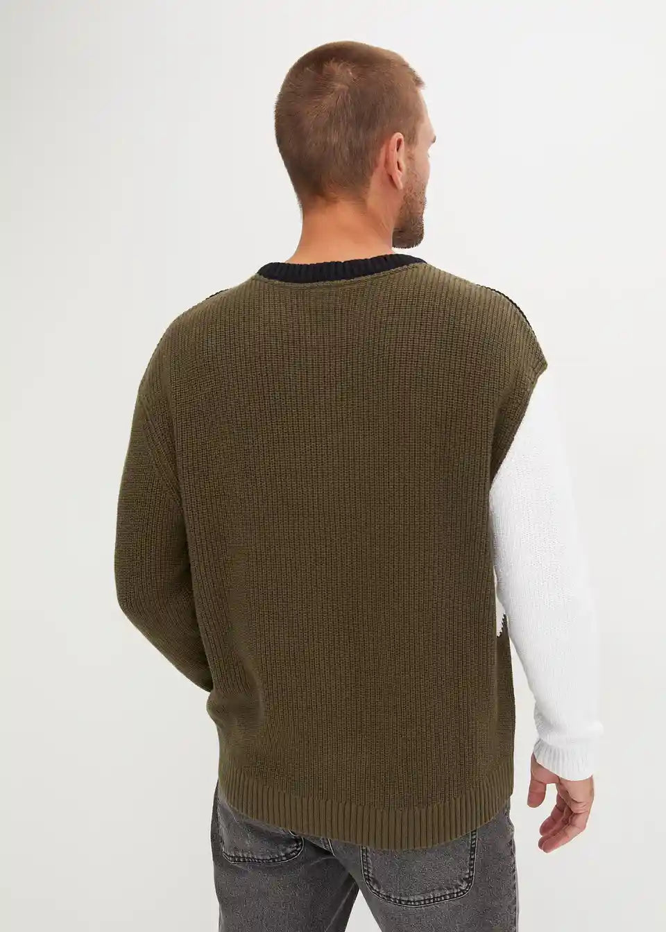 Pulover s kontrastima od pamuka komotnog kroja