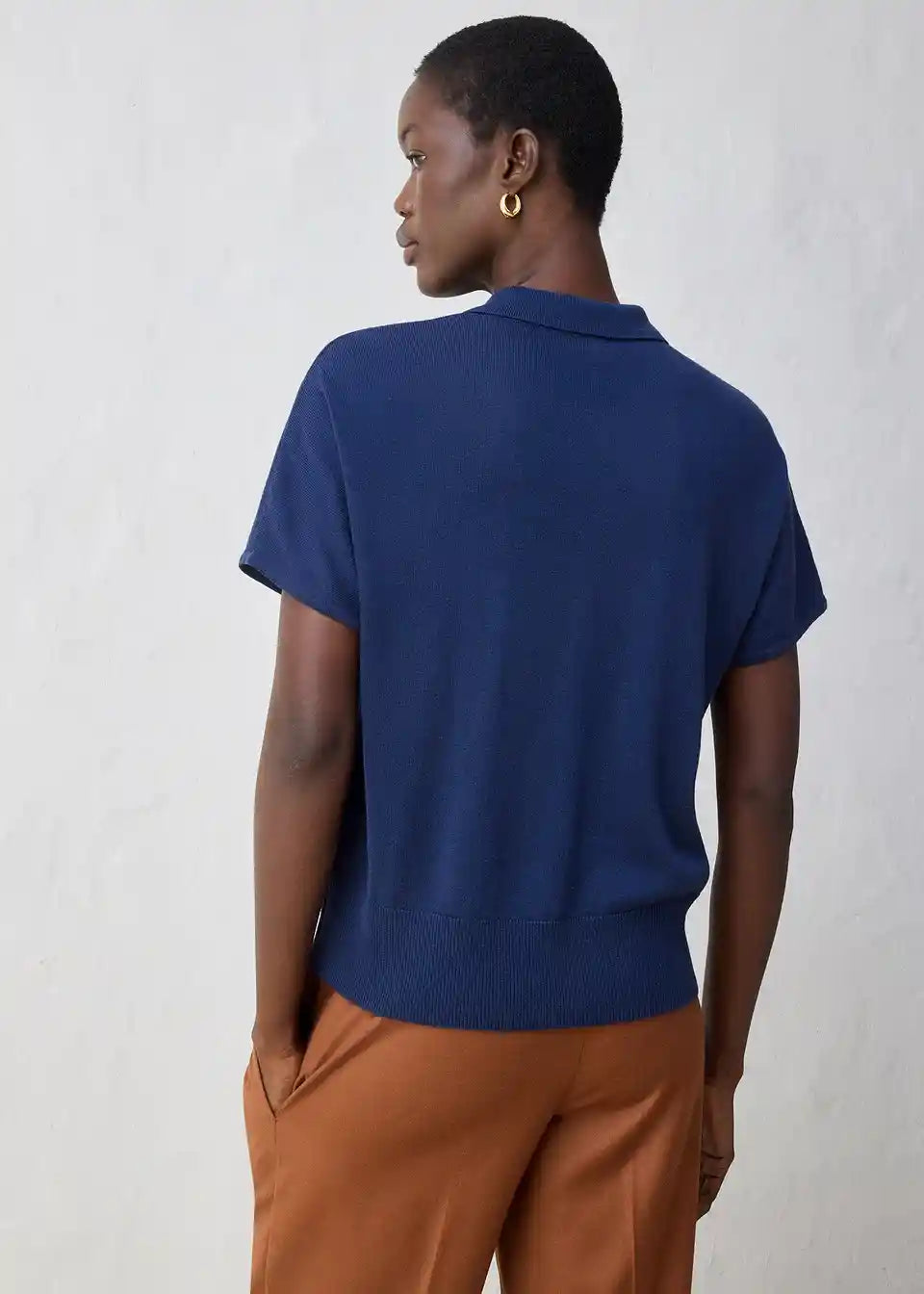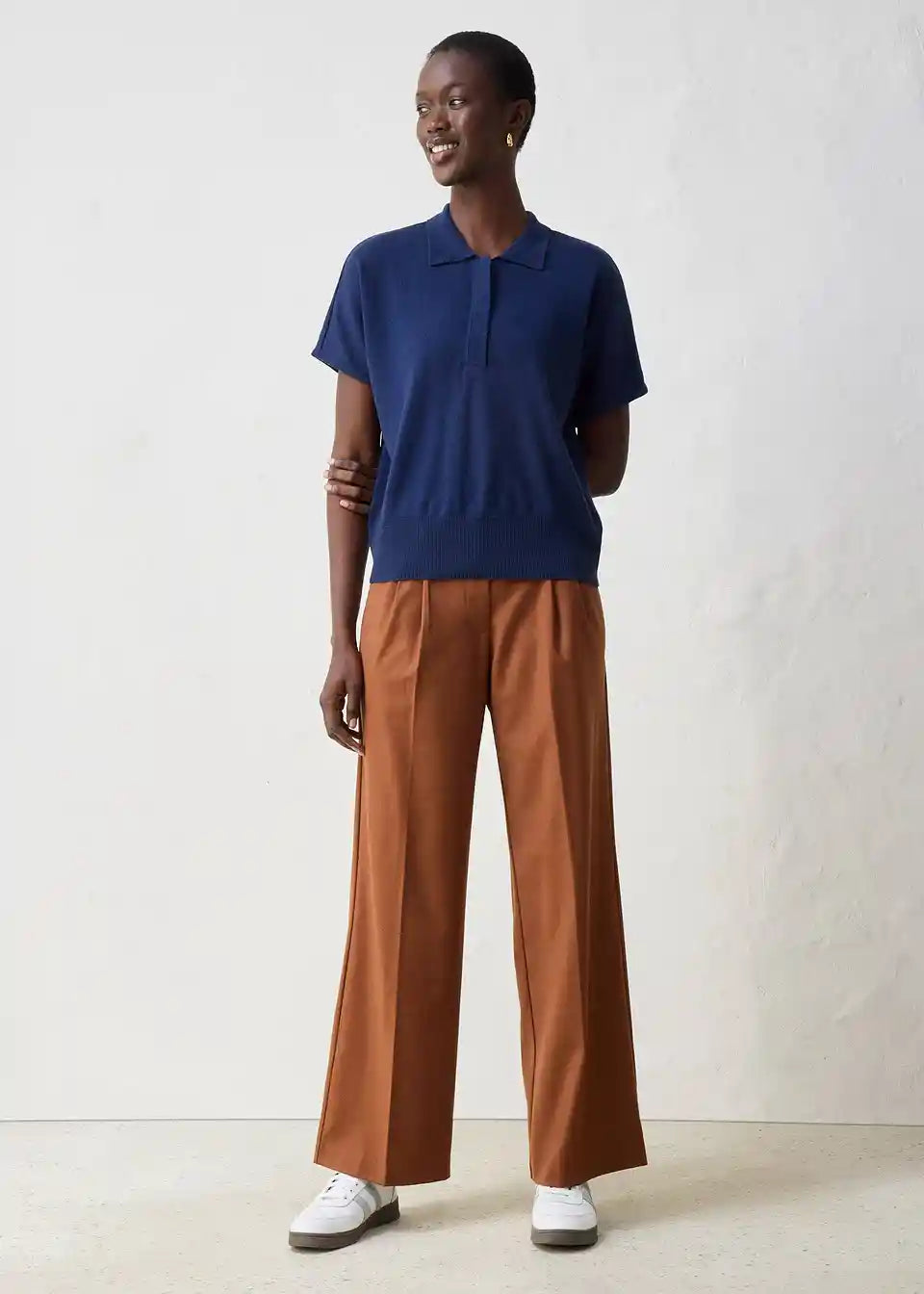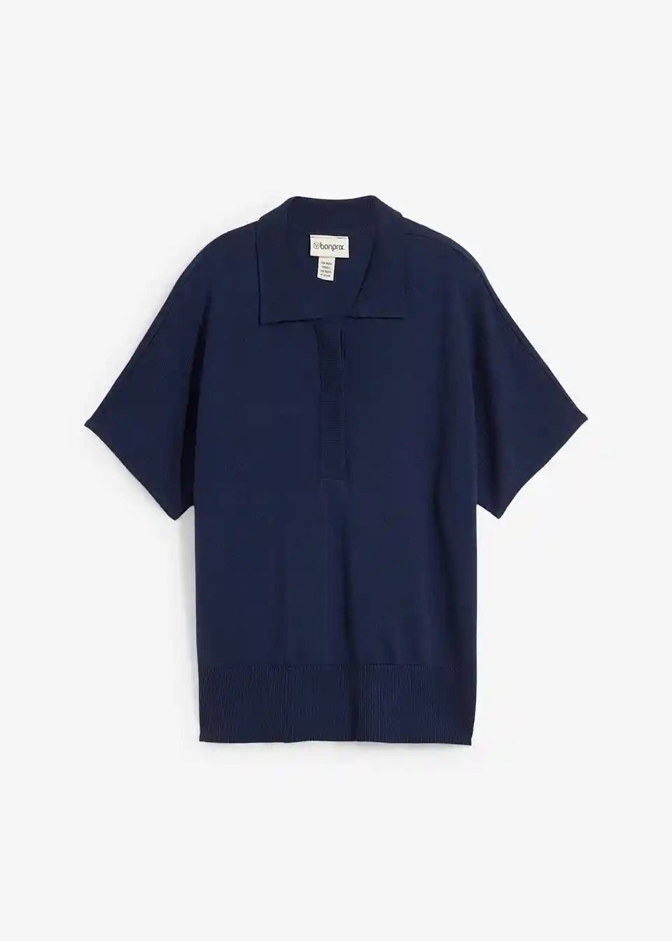 Fino pleteni pulover s udjelom vune i polo kragnom