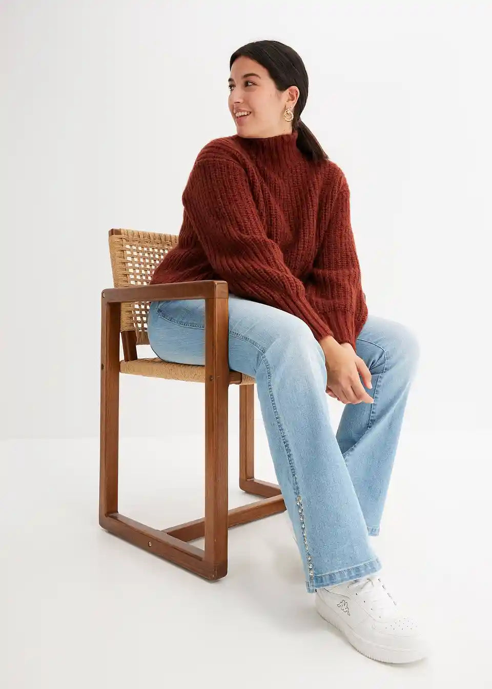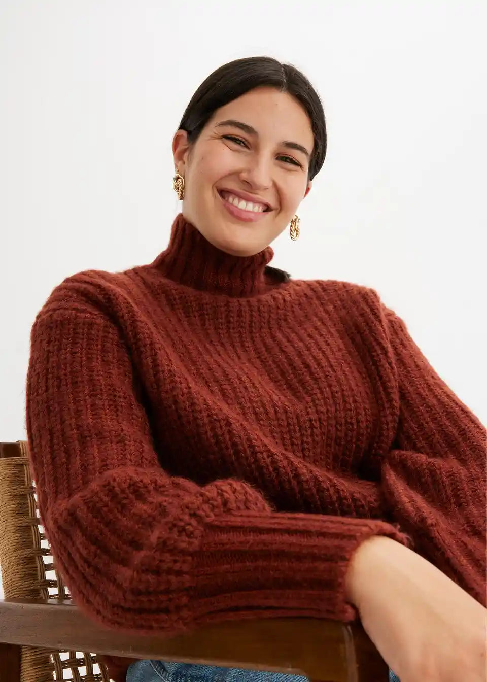 Loose Fit Pulover s Rol Kragnom