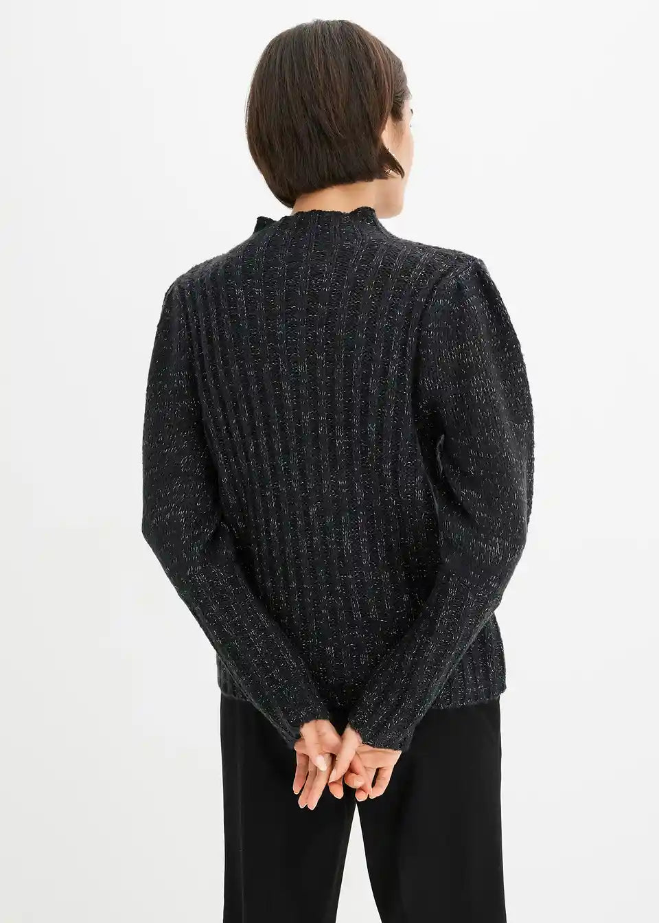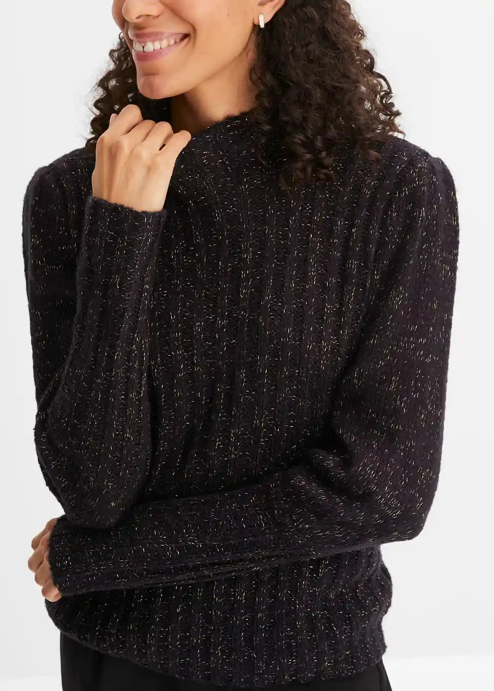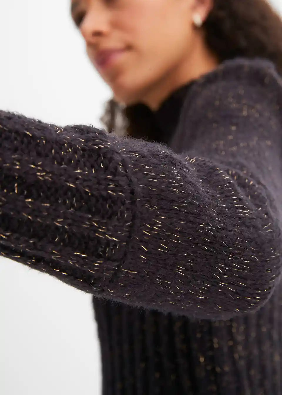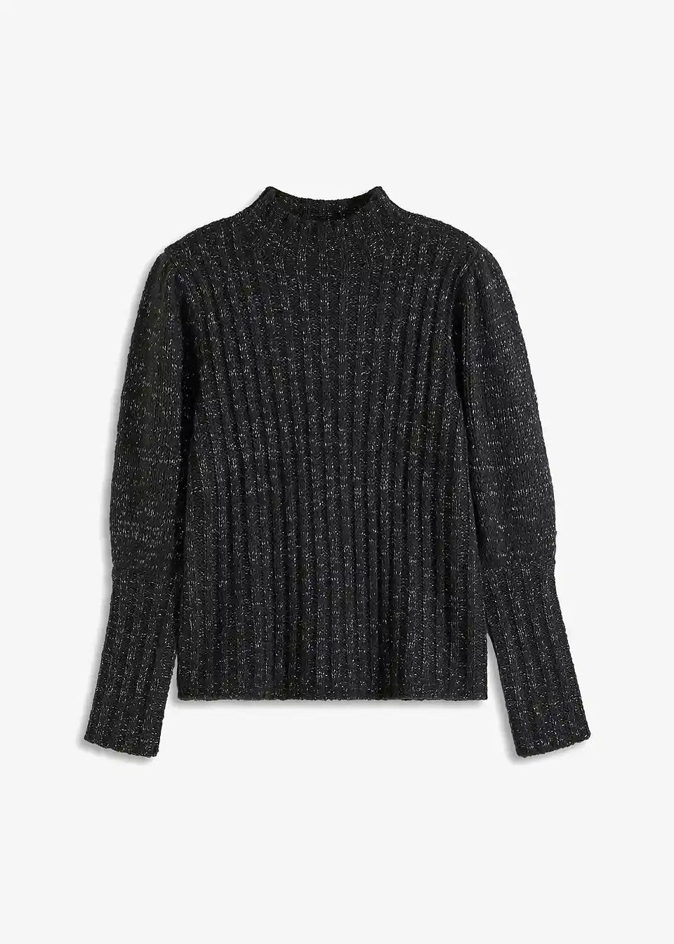 Udoban pulover s efektom sjaja i puf rukavima