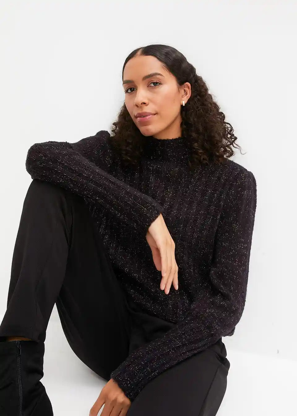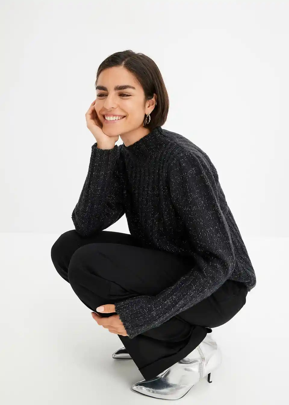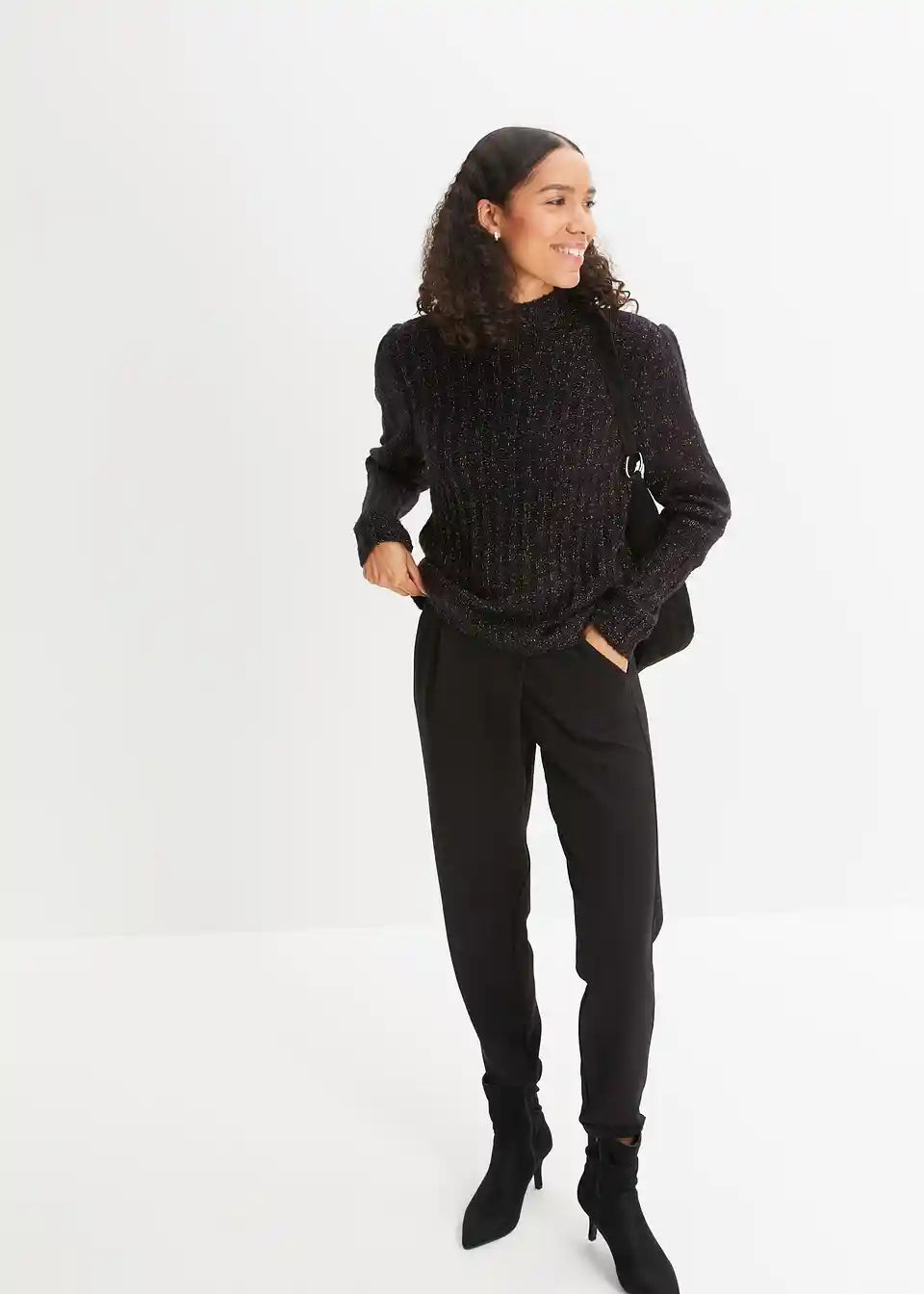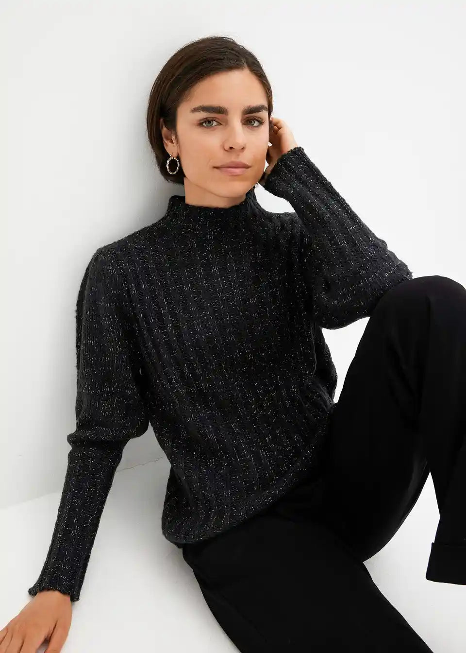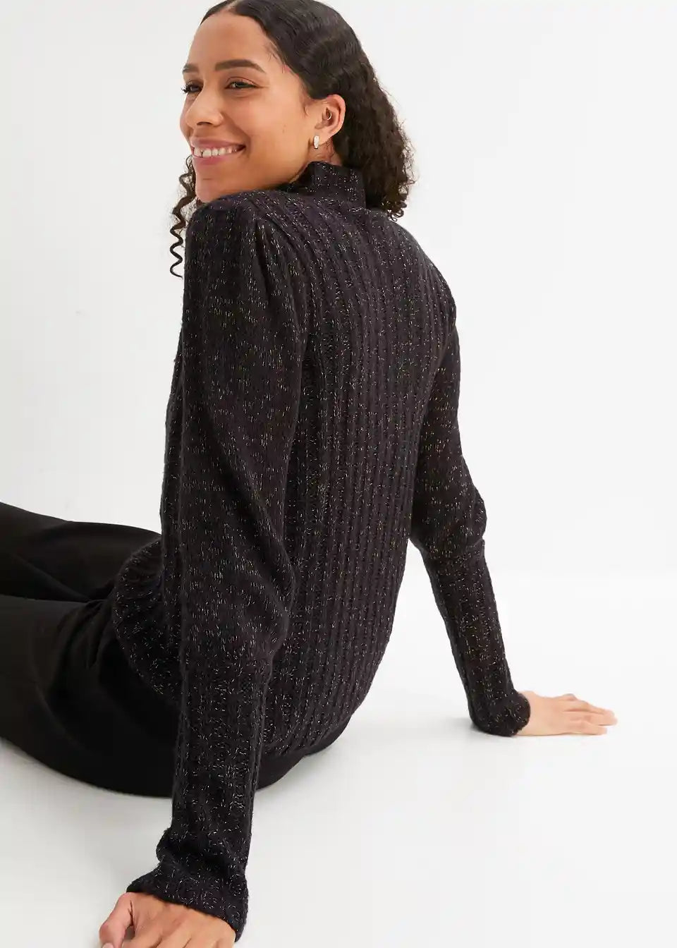 Udoban pulover s efektom sjaja i puf rukavima
