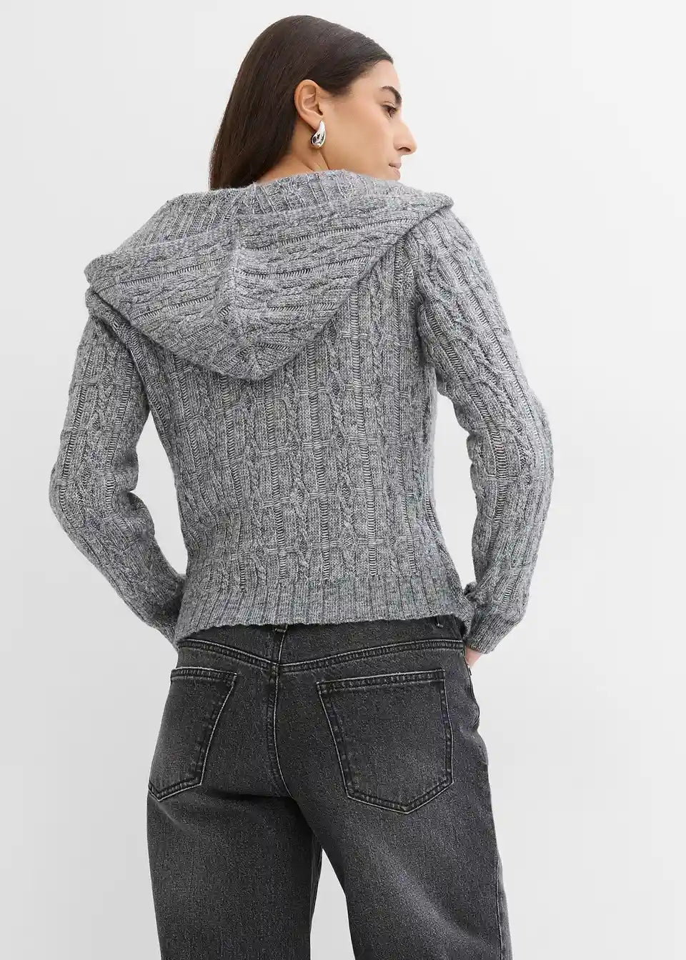 Moderan pleteni pulover s kapuljačom i asimetričnim porubom