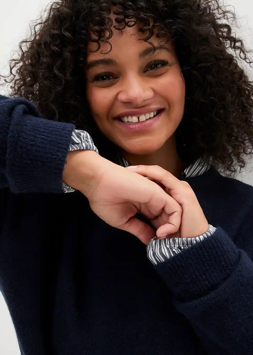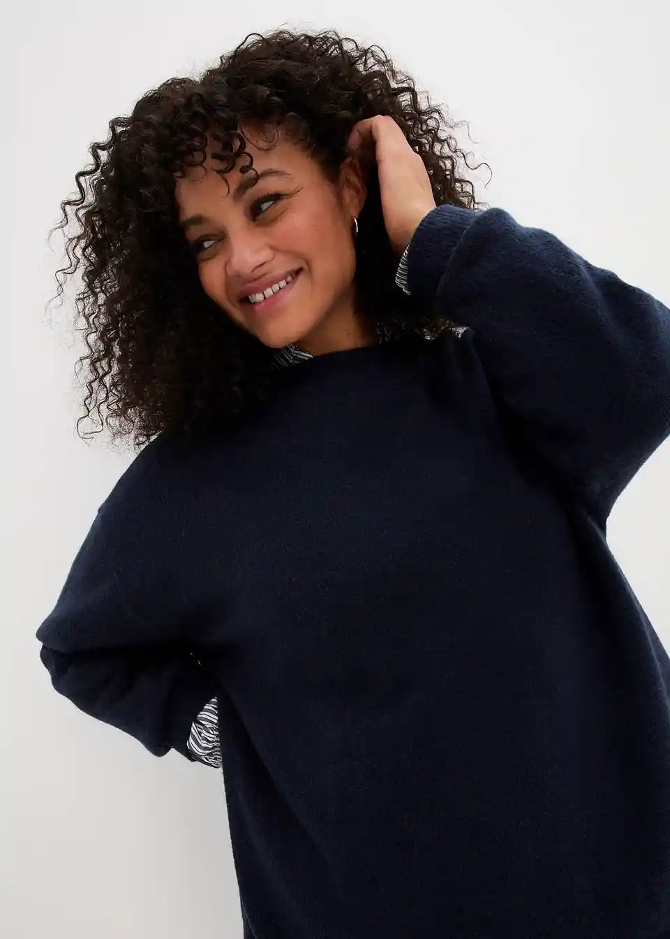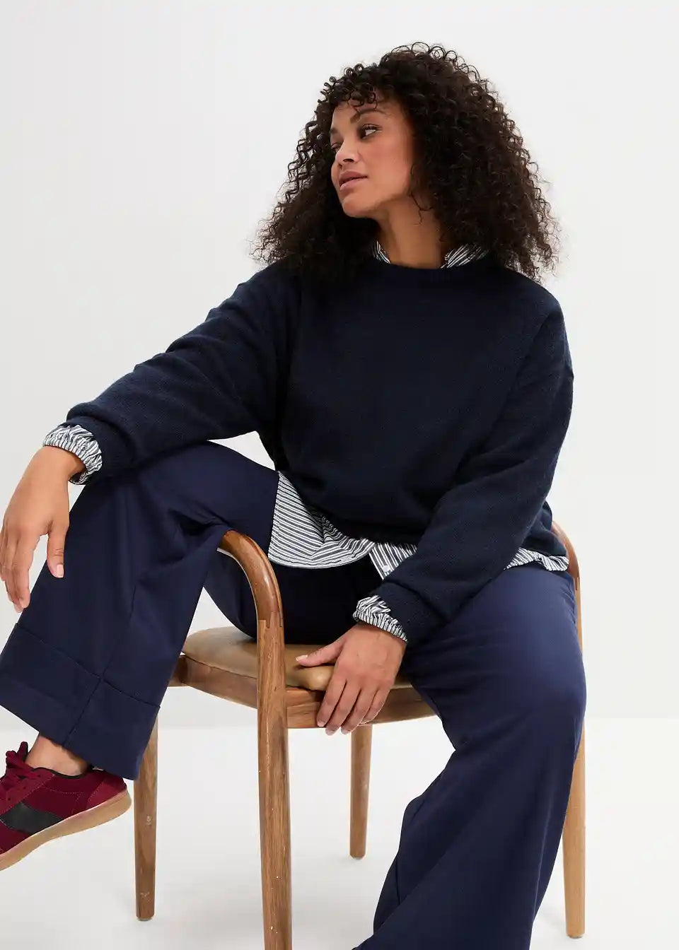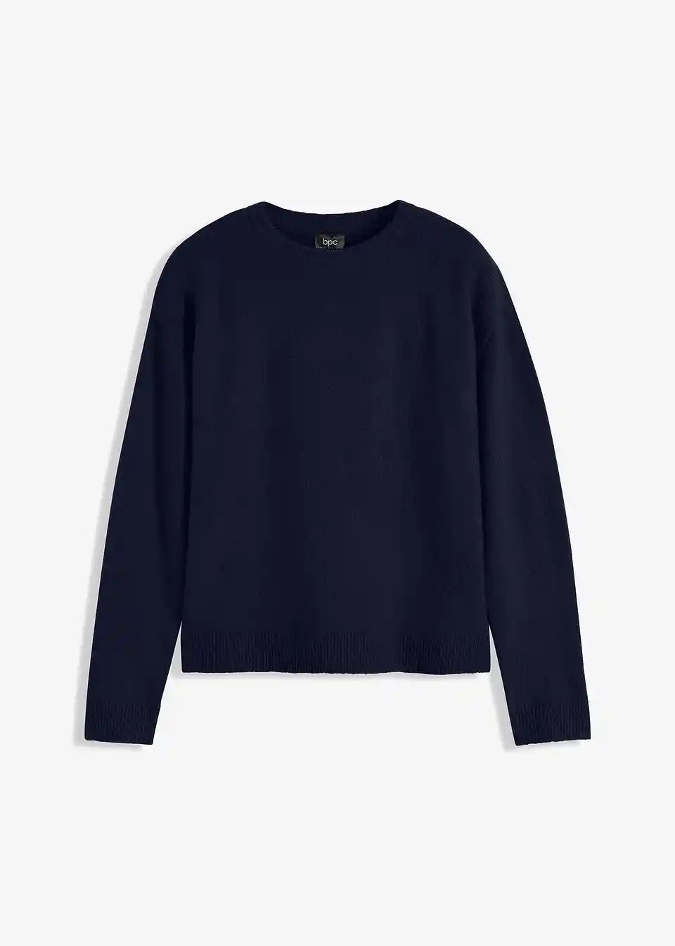 Pleteni pulover s okruglim izrezom i produženim ramenima