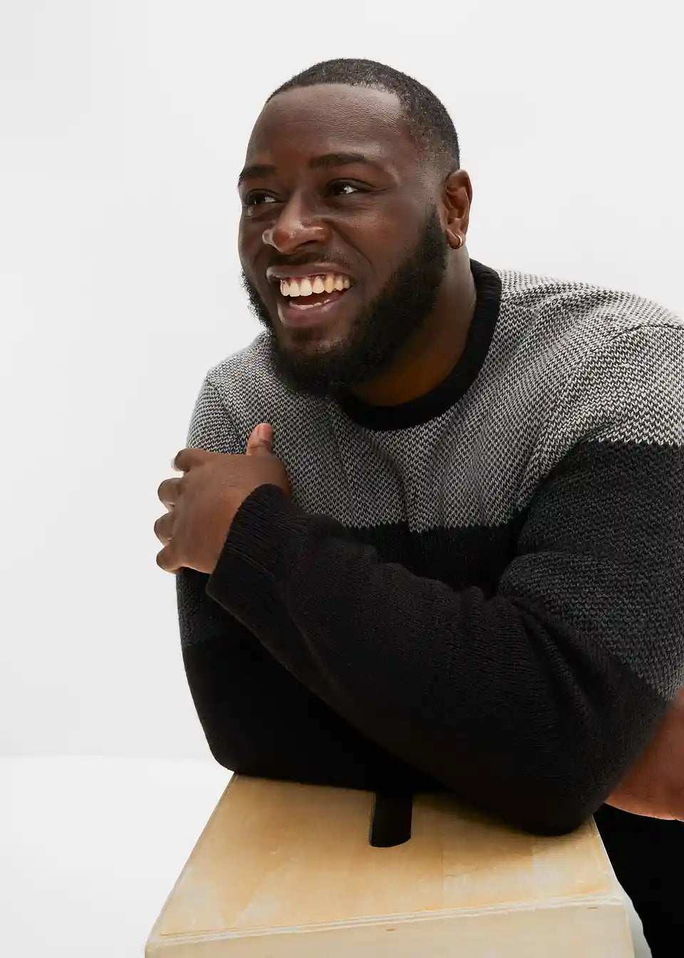 Moderan osnovni pulover u trendi strukturalnom izgledu.