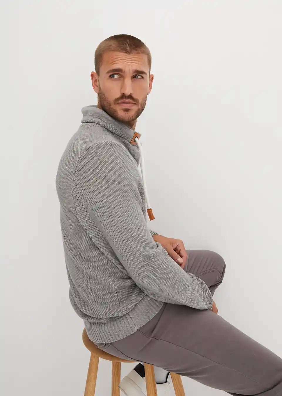 Moderan pletivo-pulover s diskretnim PU-detaljima