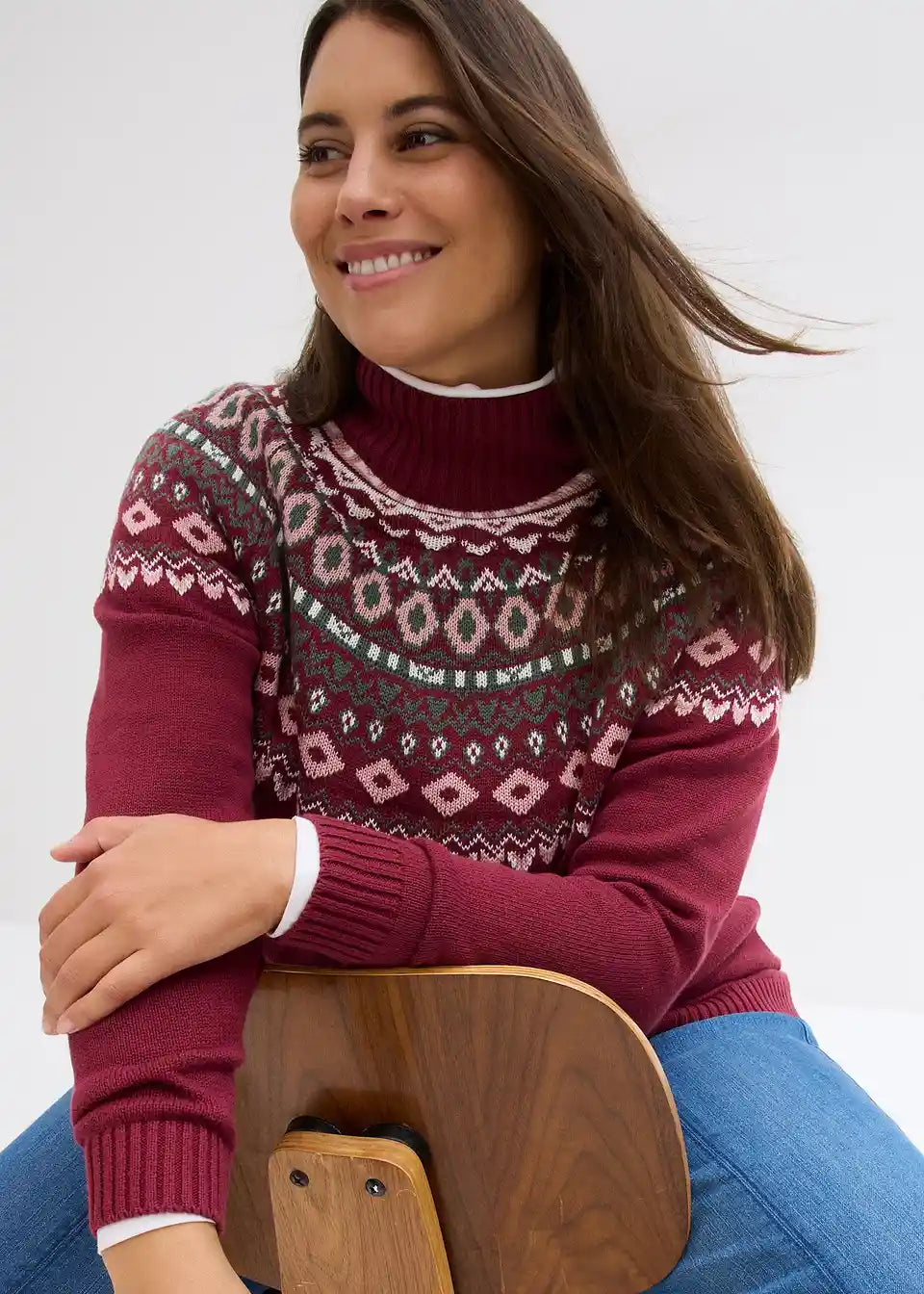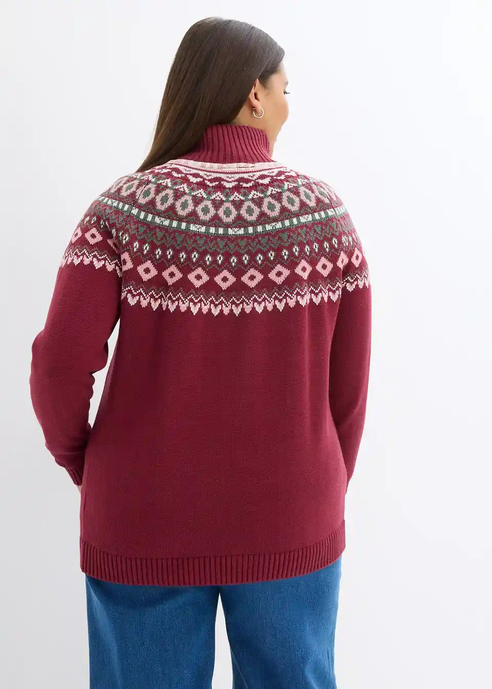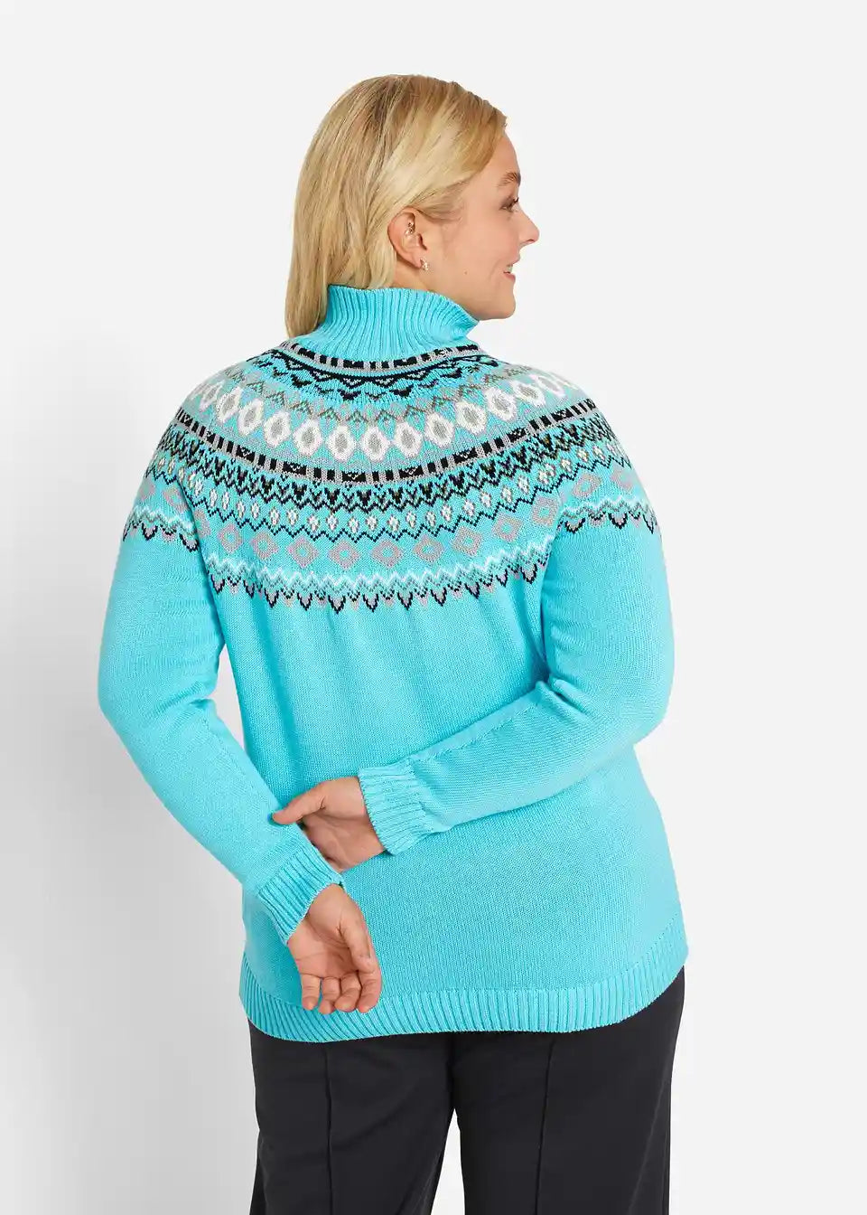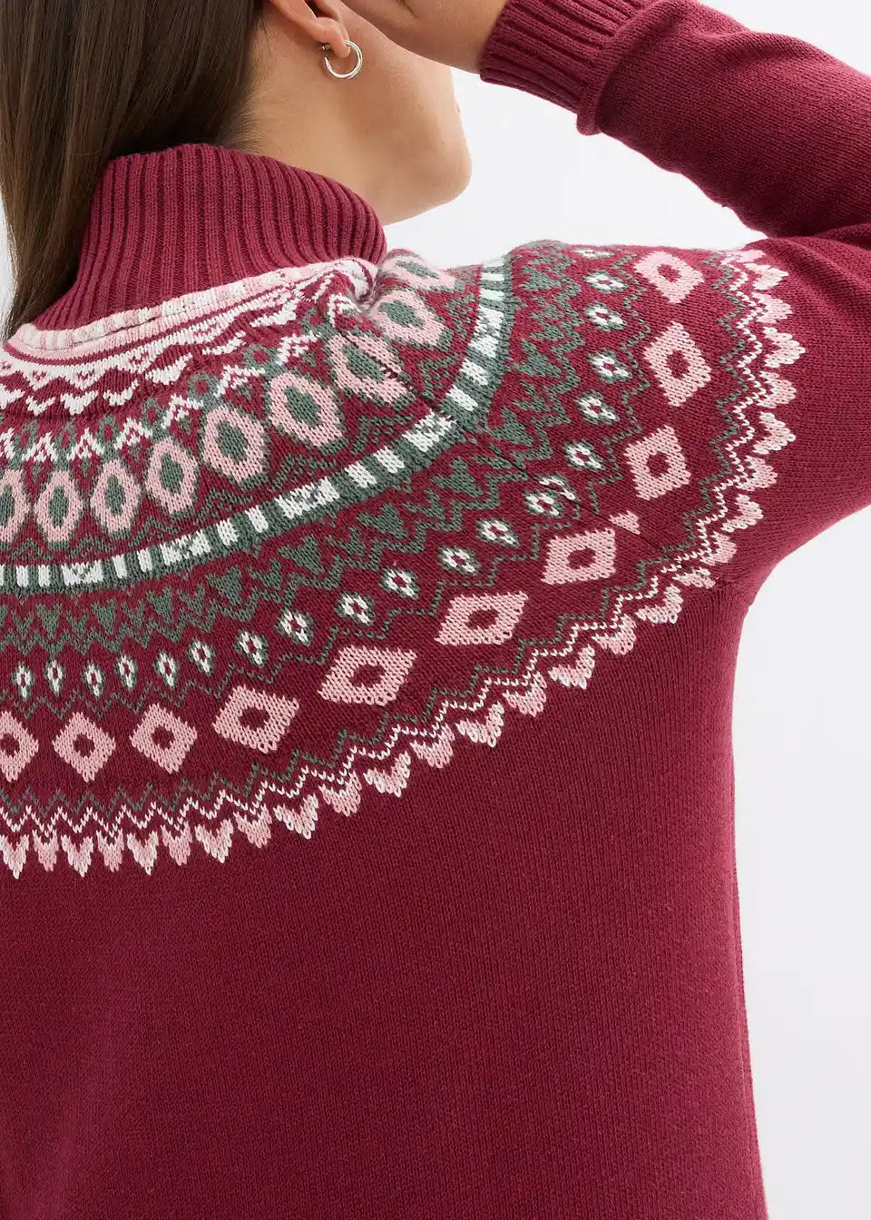 Udoban pleteni pulover s norveškim uzorkom i šal kragnom
