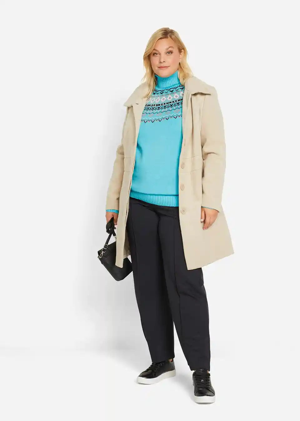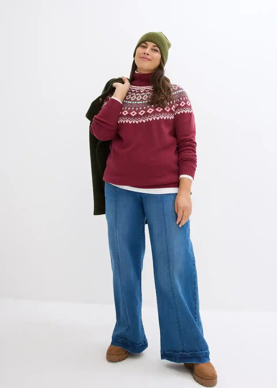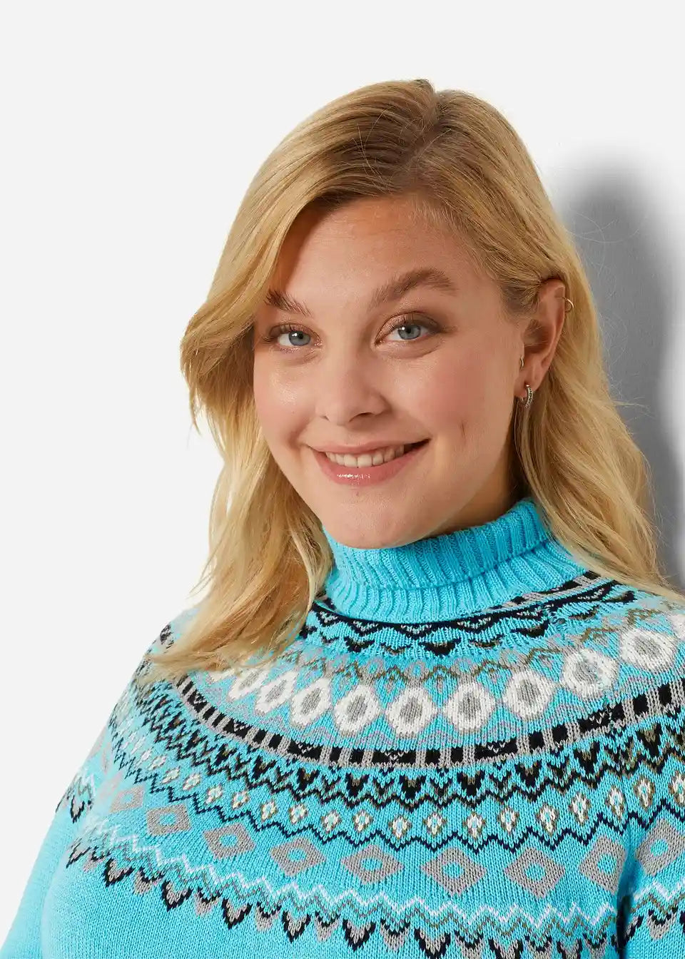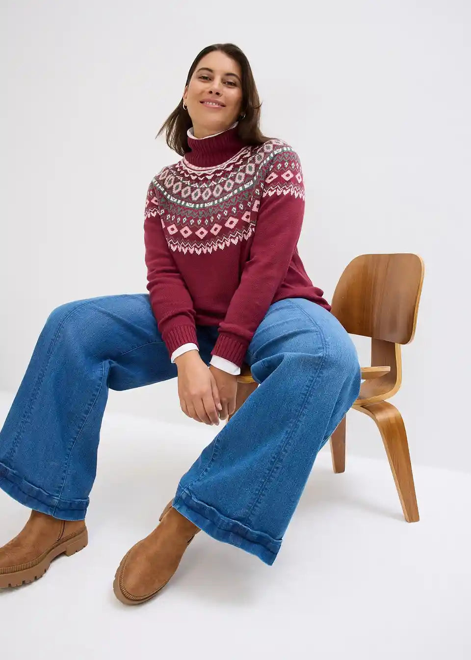 Udoban pleteni pulover s norveškim uzorkom i šal kragnom