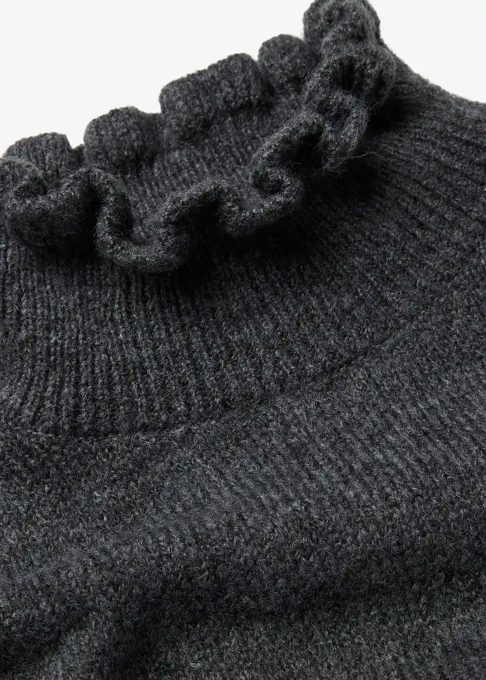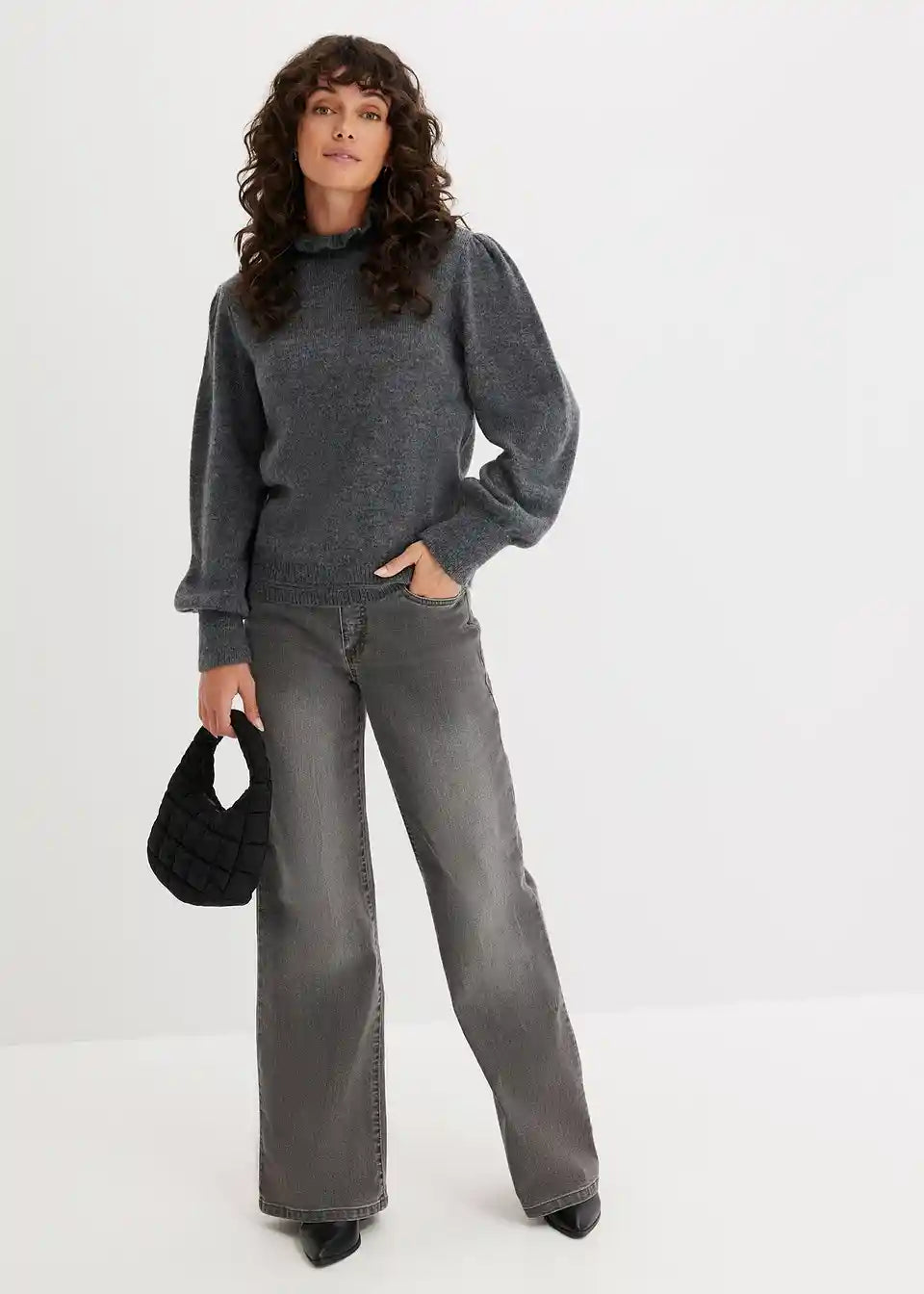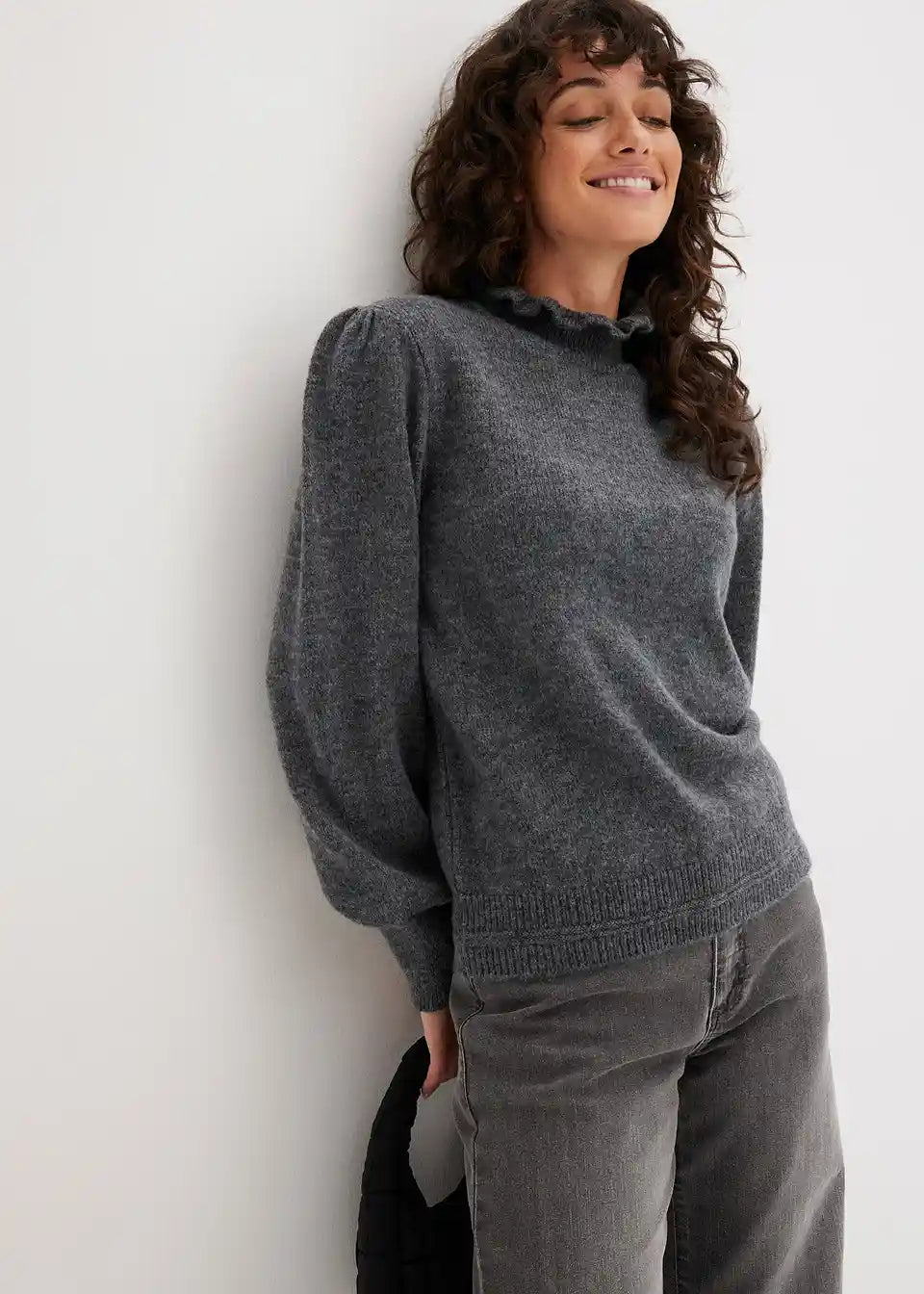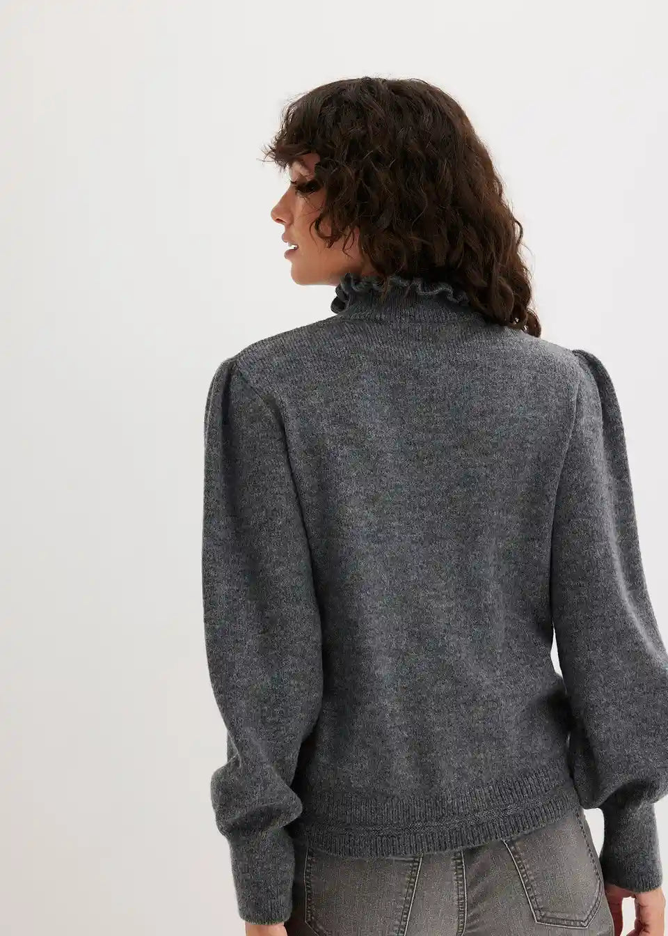 Feminina pulover s valovitim obrubom na kragni i završecima rukava
