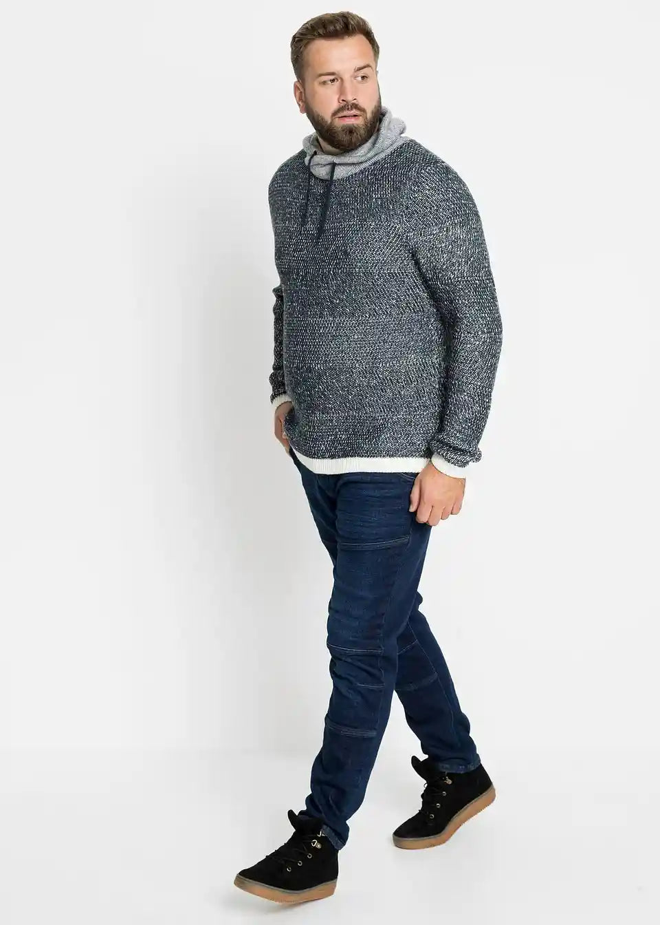 Moderan pulover s šalom ovratnikom i vezicom.