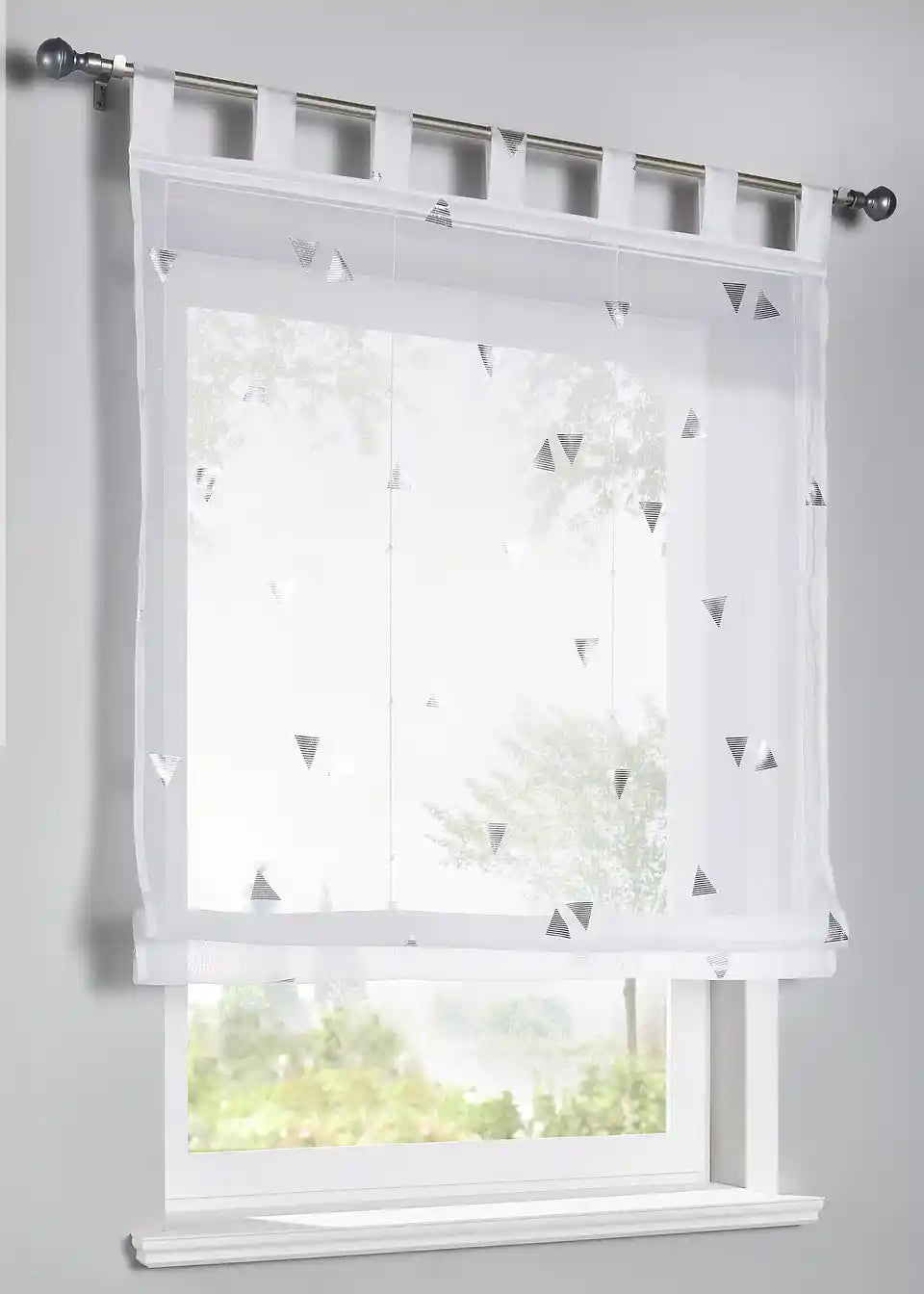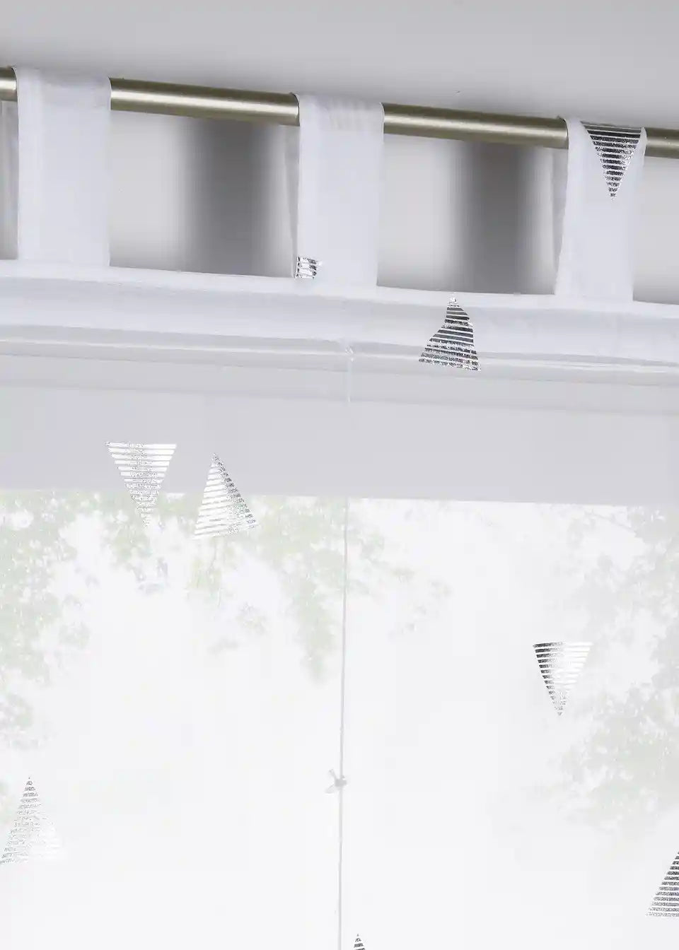 Ovaj raffrollo je moderan i ujedno jednostavan. Izvanredni detalj su otisnuti sjajni trokuti u različitim smjerovima. Trokuti su sastavljeni od malih linija koje su nanesene tehnikom folijskog tiska.