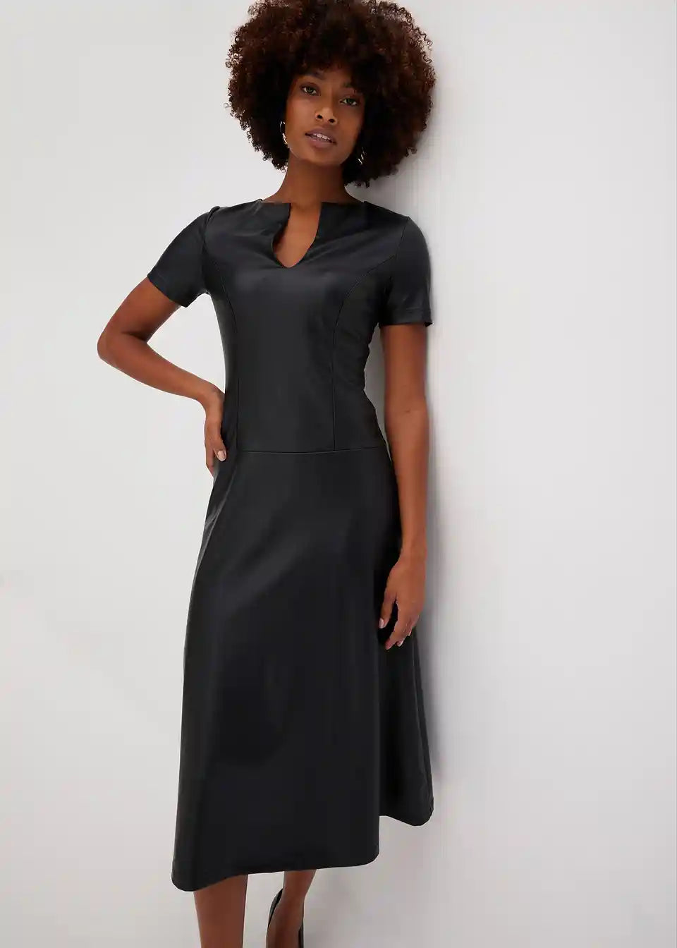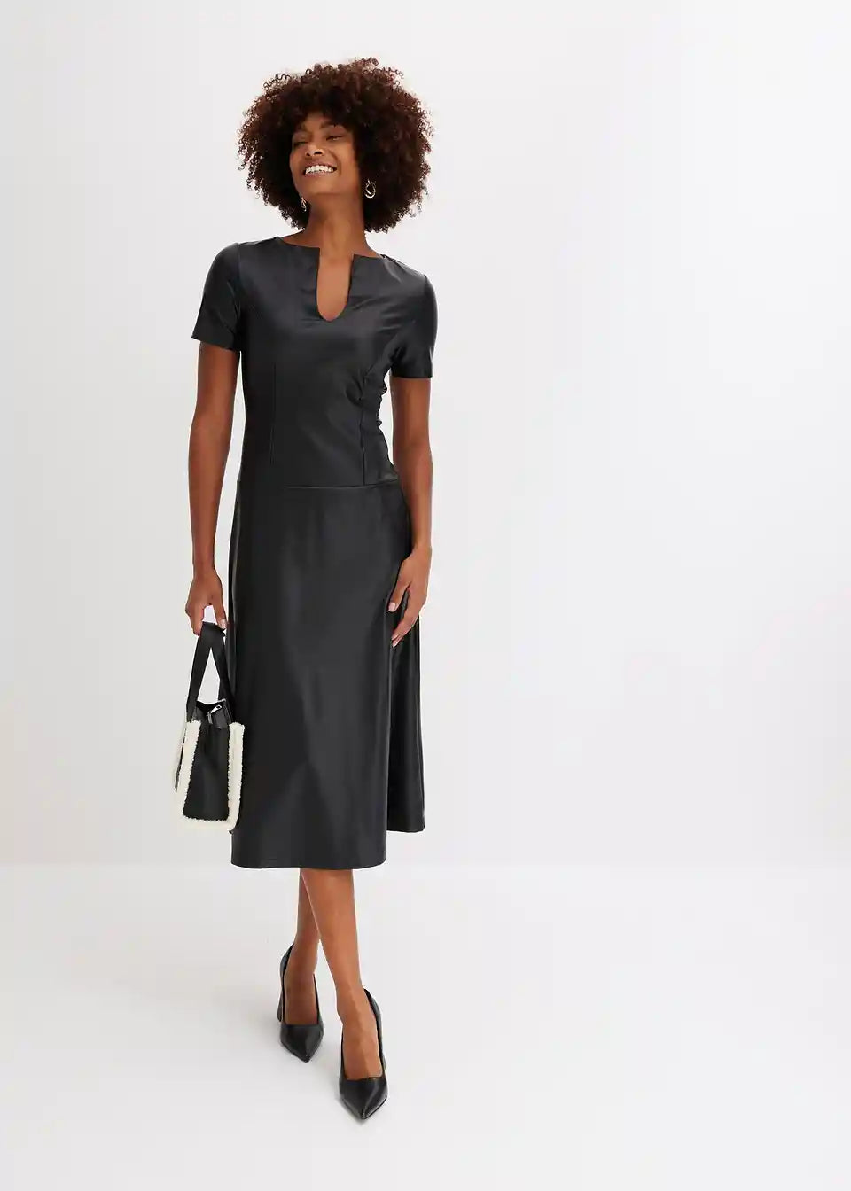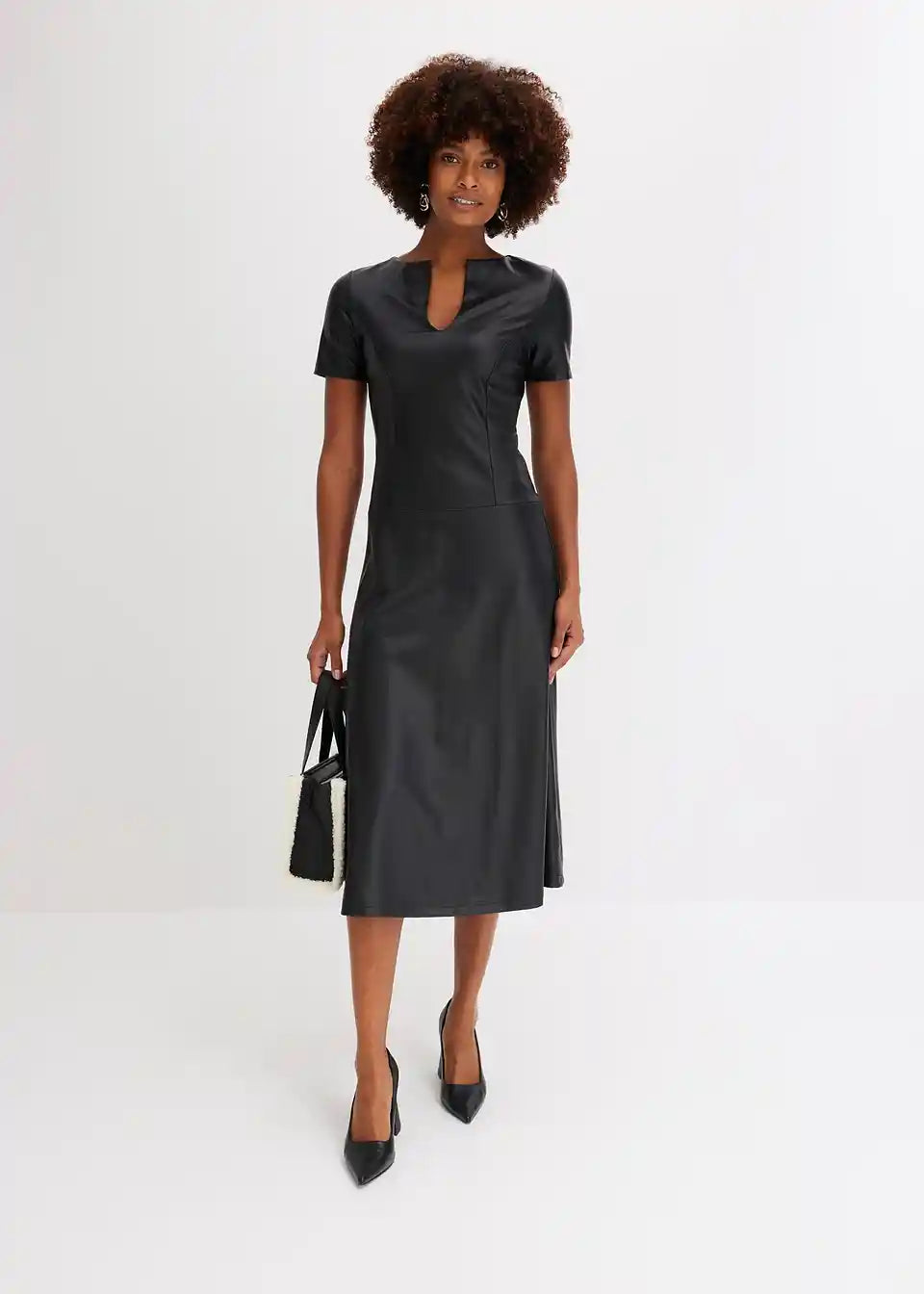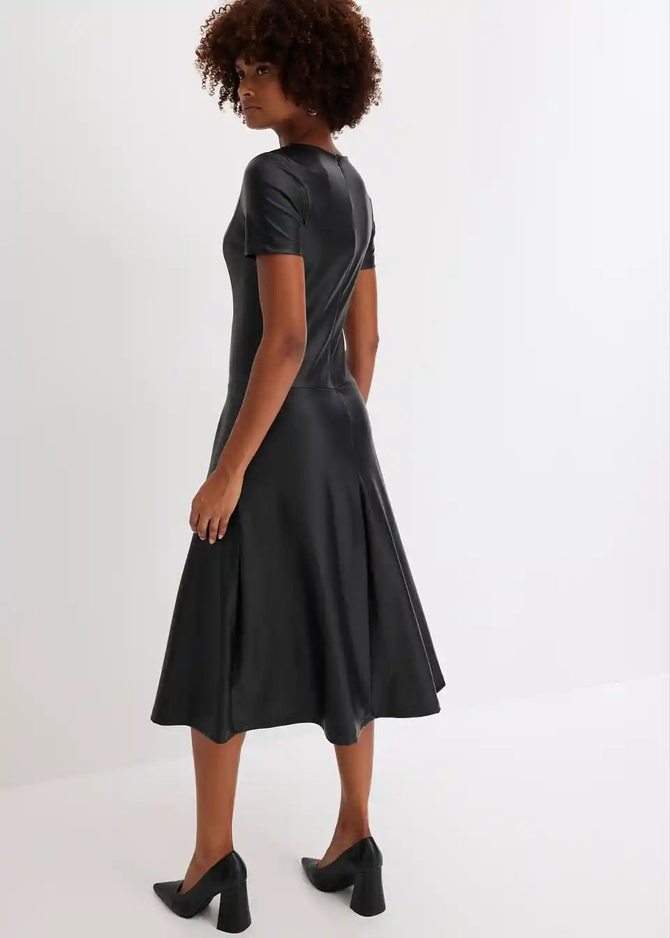 Moderna i ženstvena: haljina od umjetne kože kratkih rukava.