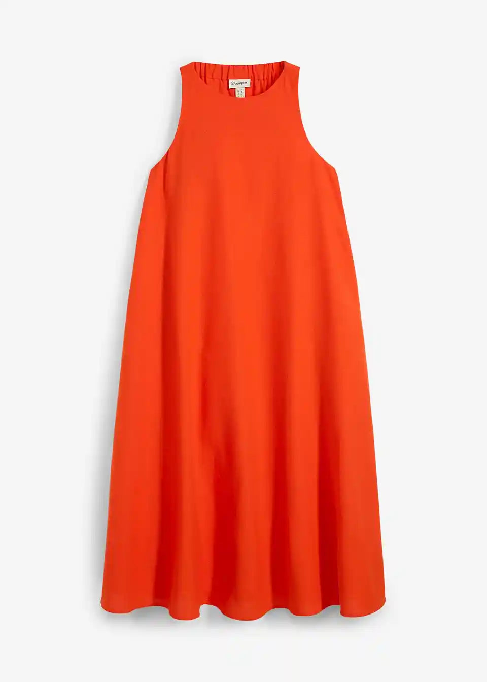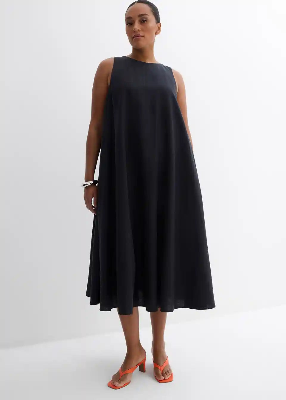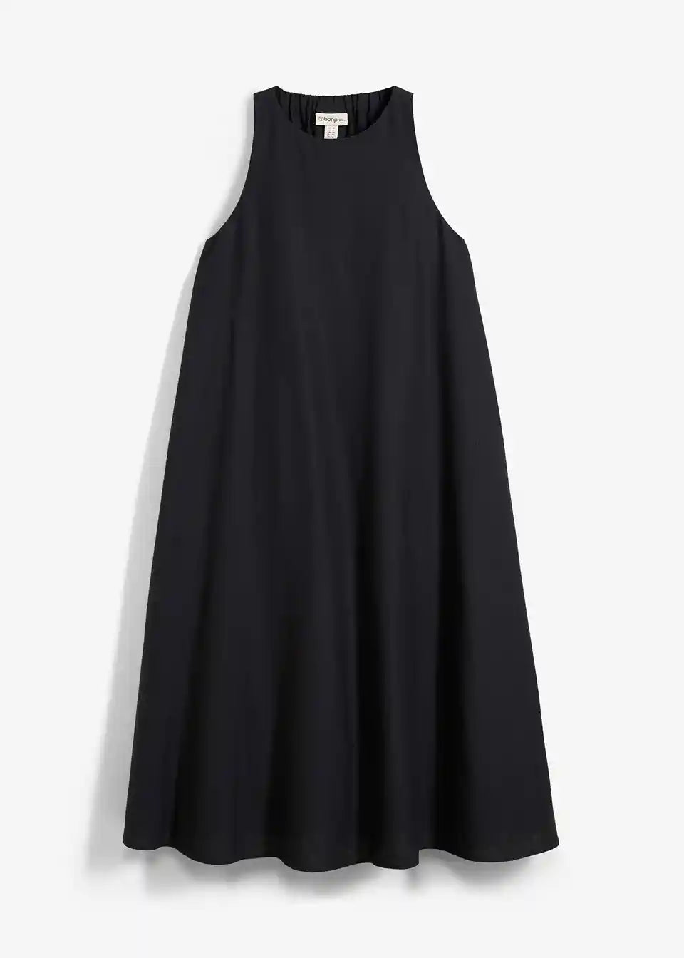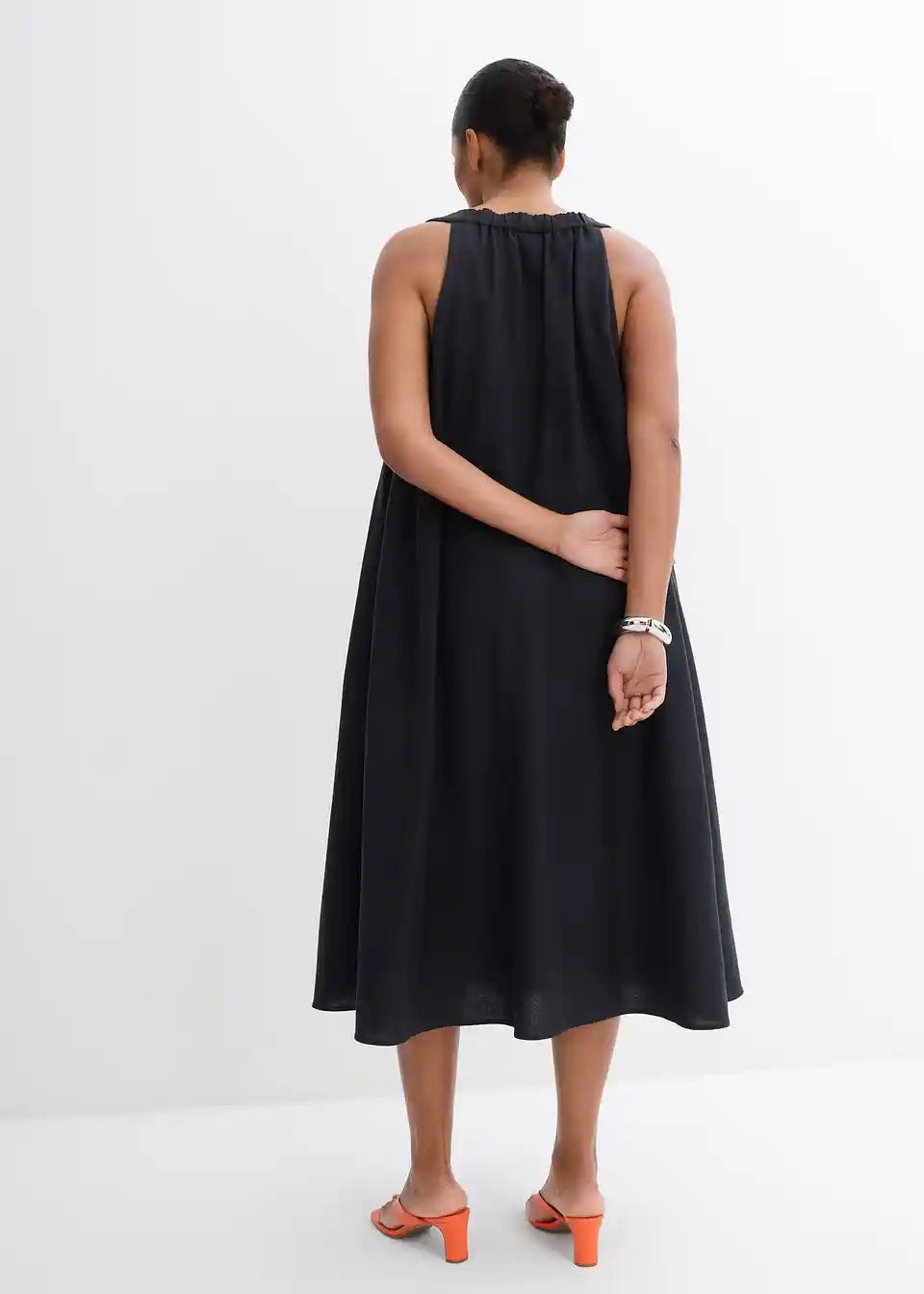 Midi haljina opuštenog kroja s elastičnim izrezom i džepovima u bočnim šavovima