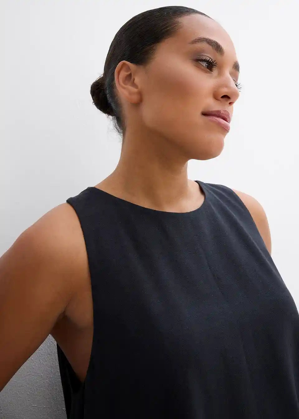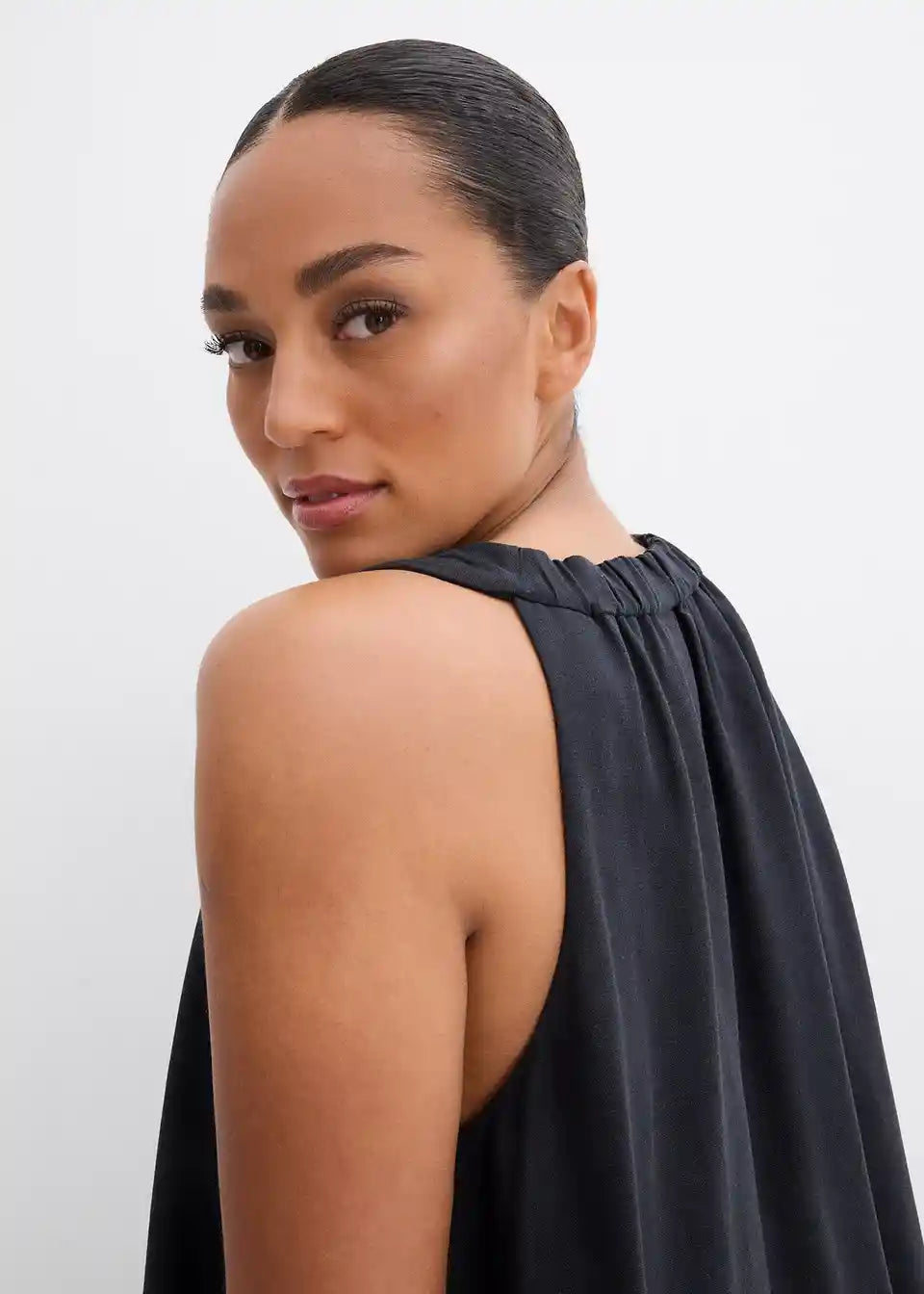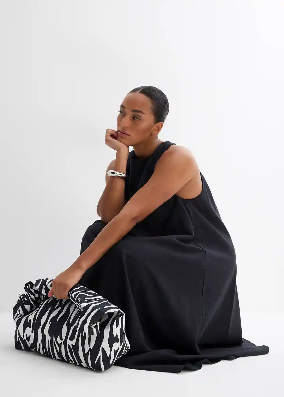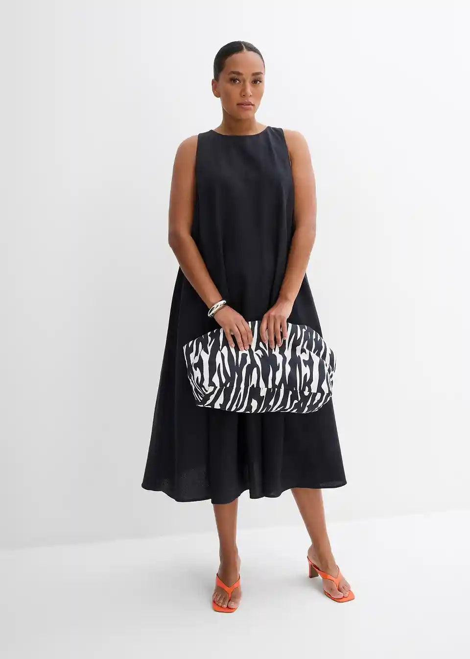 Midi haljina opuštenog kroja s elastičnim izrezom i džepovima u bočnim šavovima