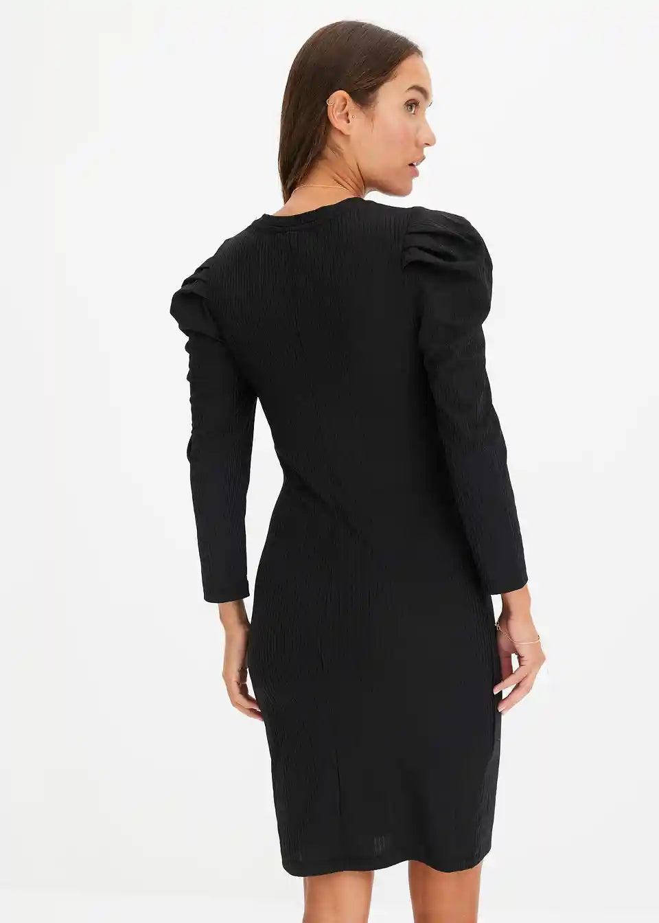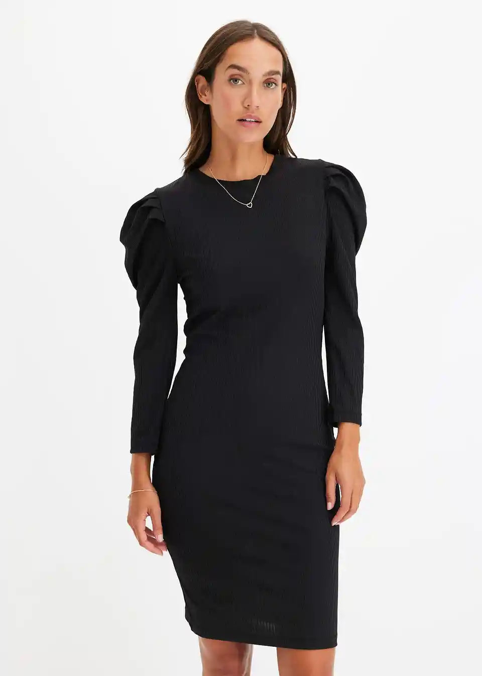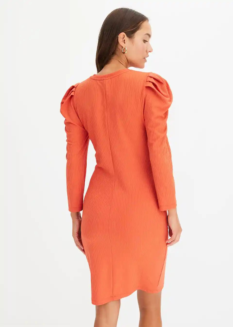 Rebrasta jersey haljina s voluminoznim rukavima.