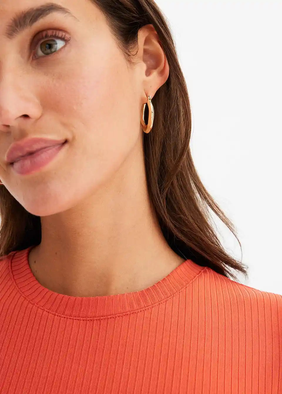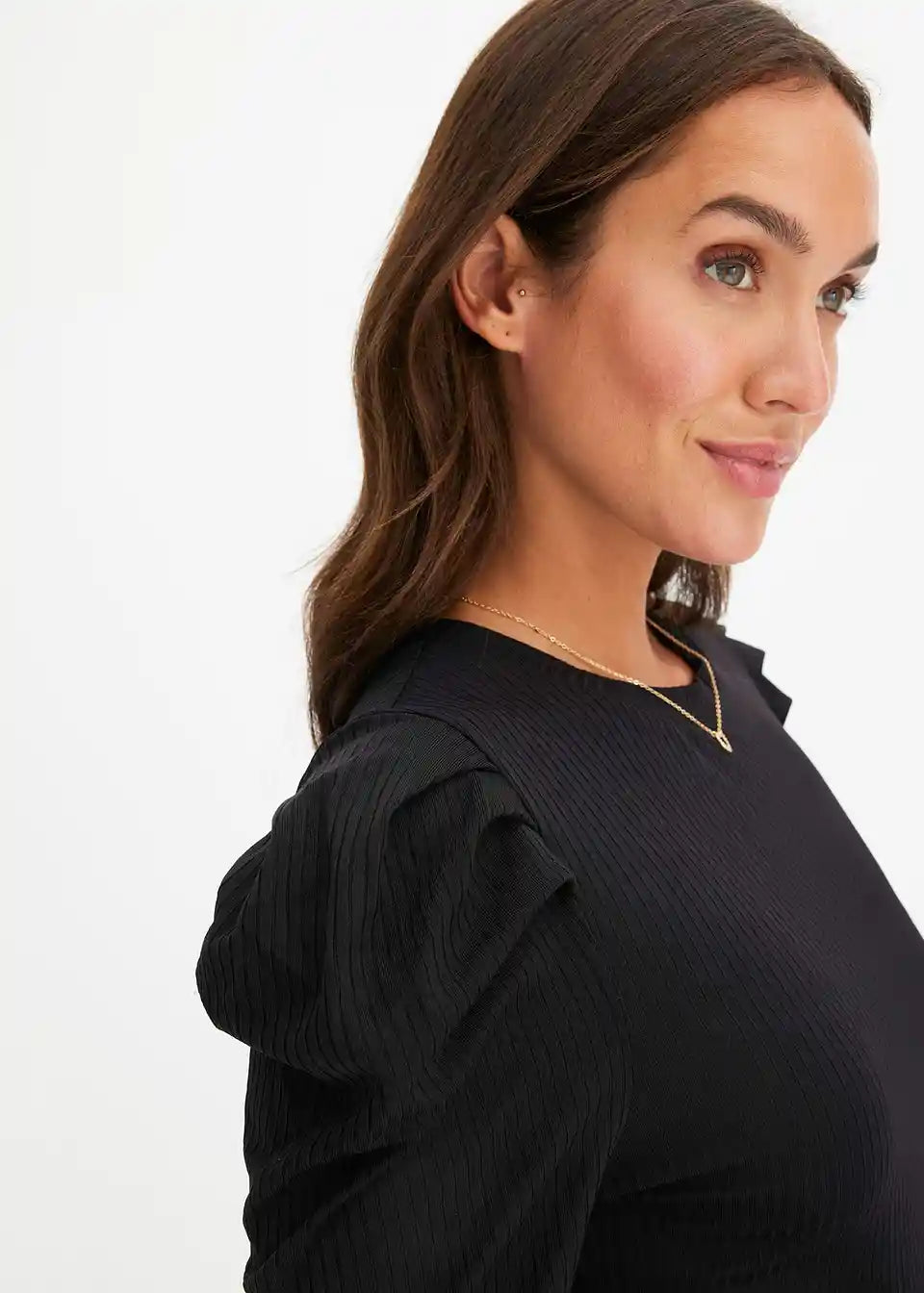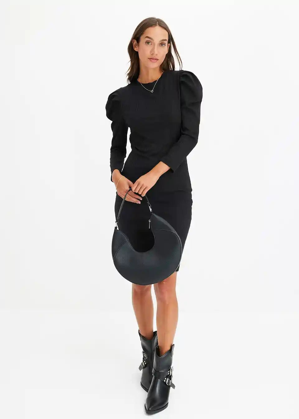 Rebrasta jersey haljina s voluminoznim rukavima.