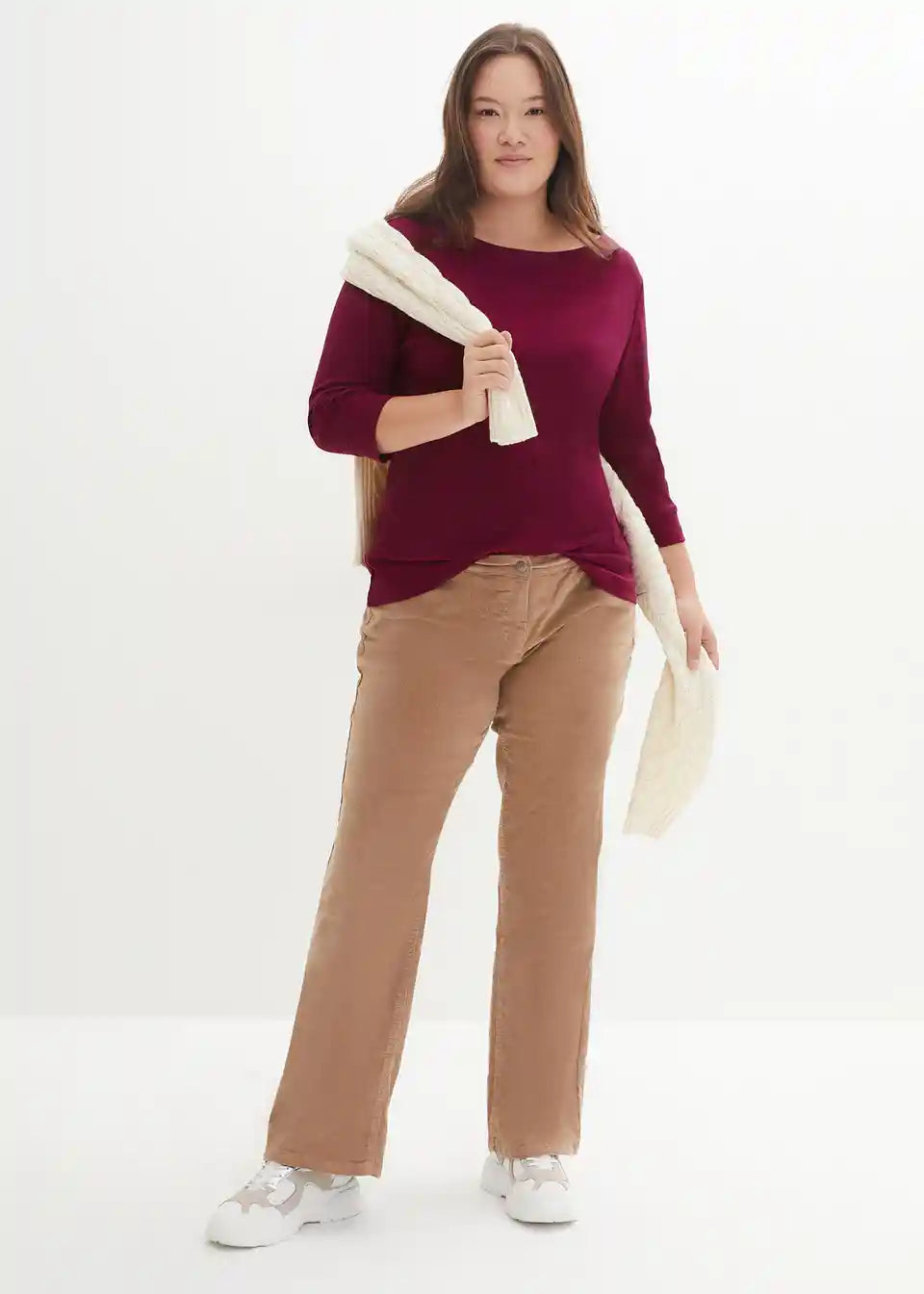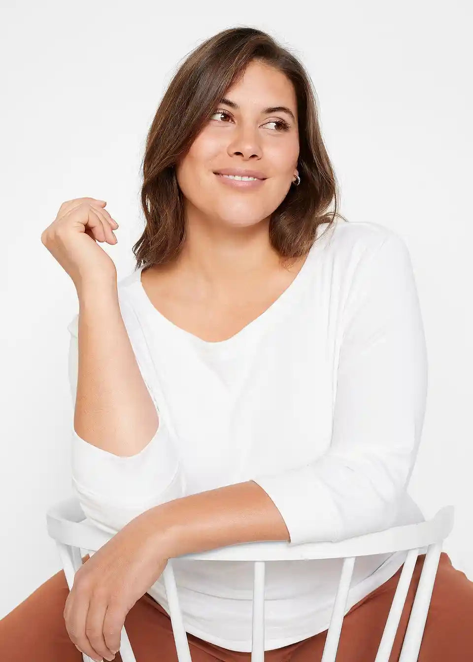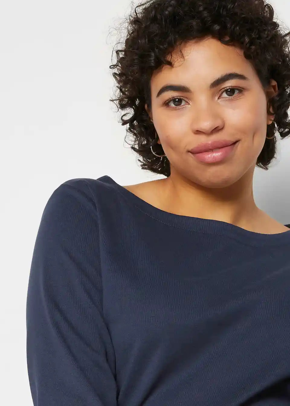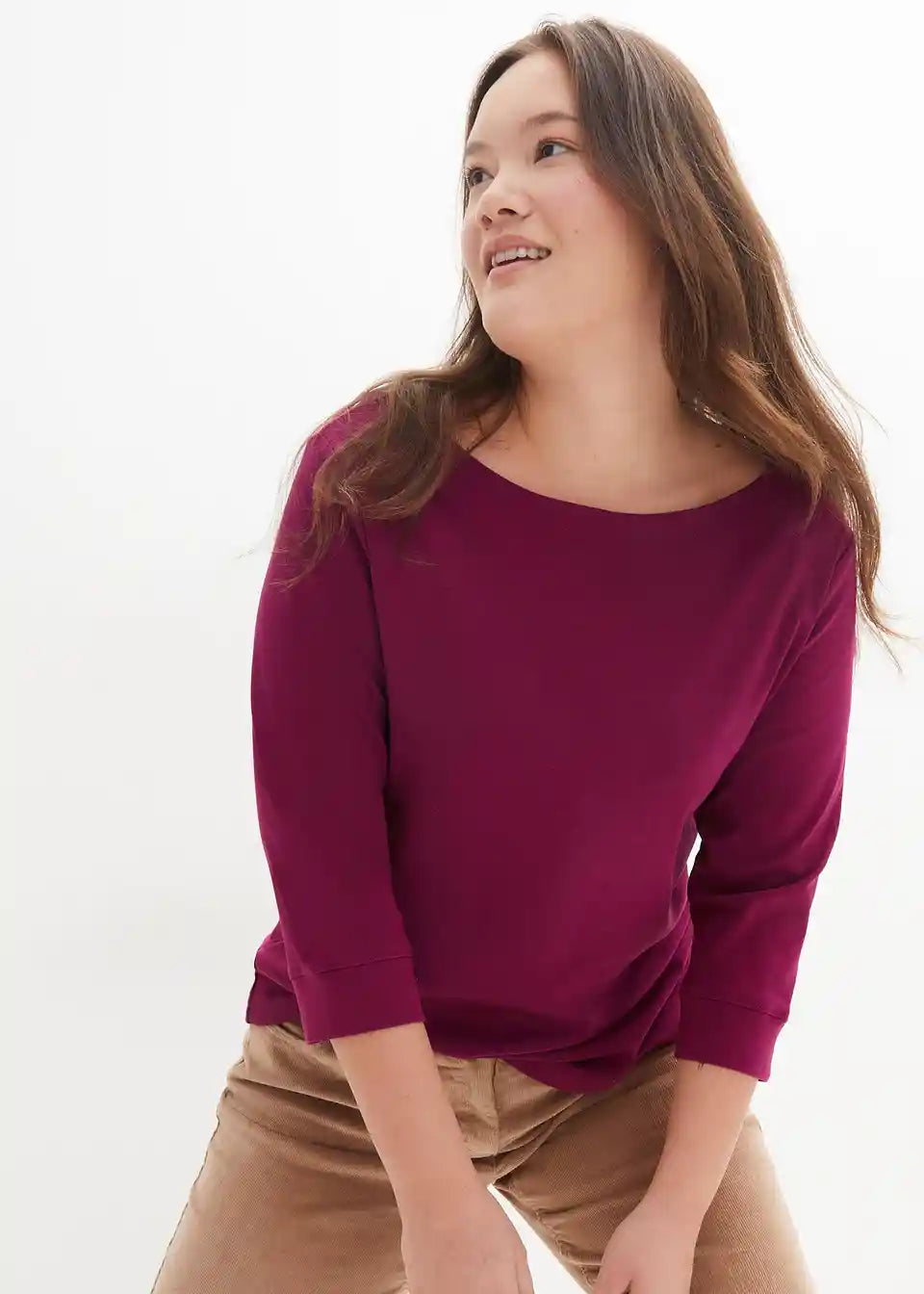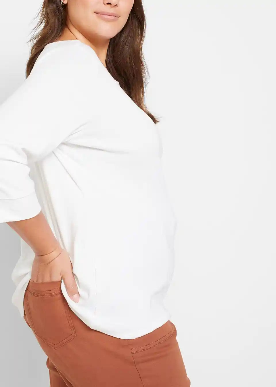 Udobna rastezljiva majica s 3/4 rukavima i U-Boot izrezom