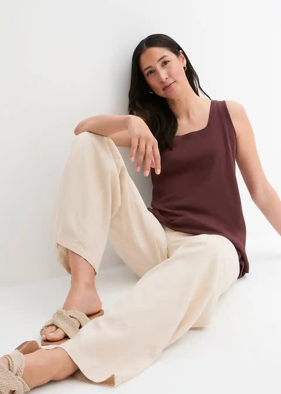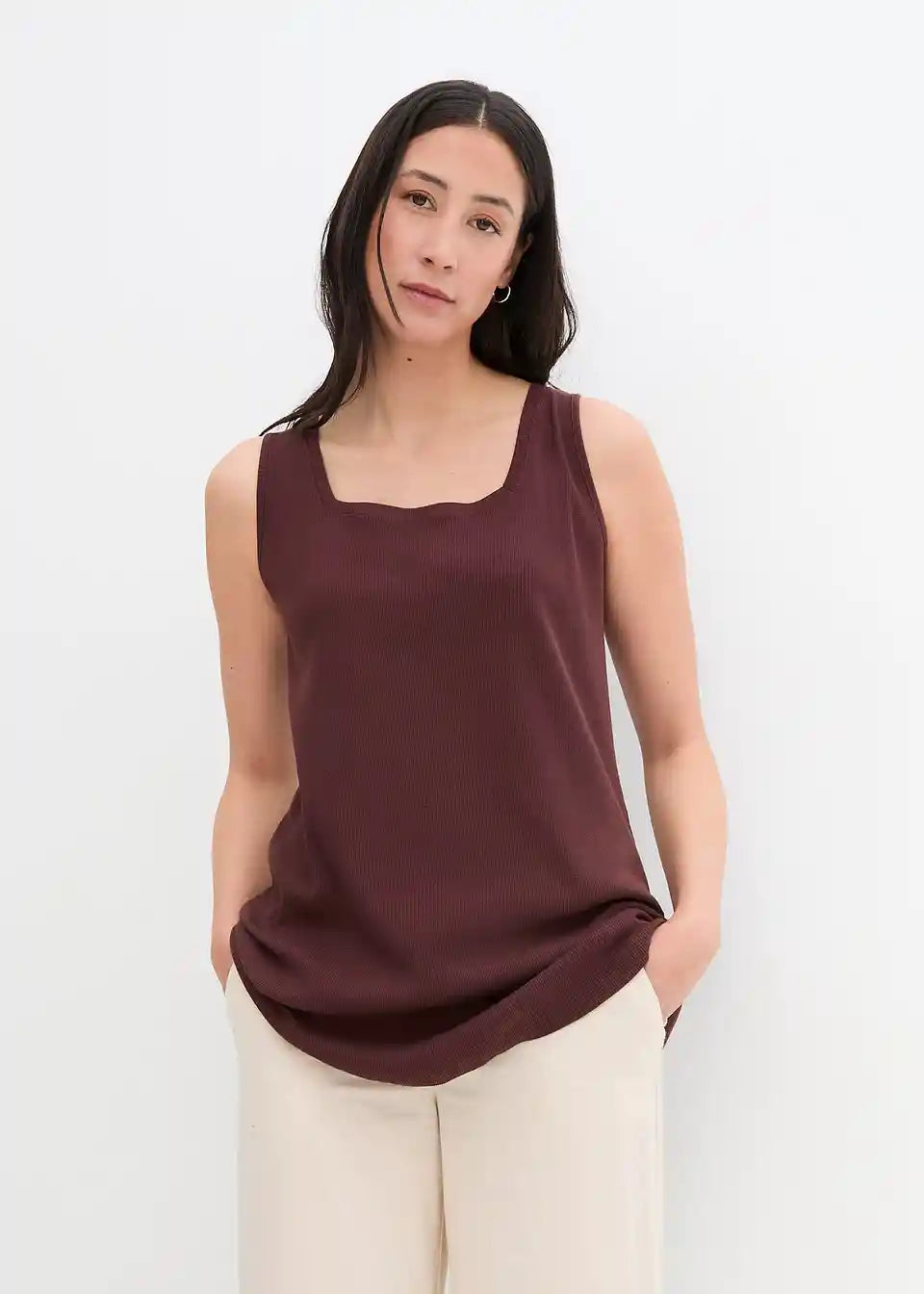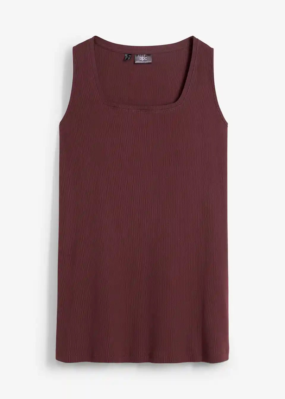 Rebrasta pamučna duga majica bez rukava s kvadratnim izrezom