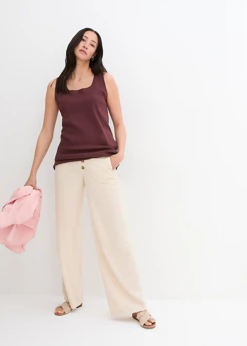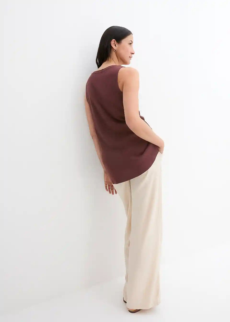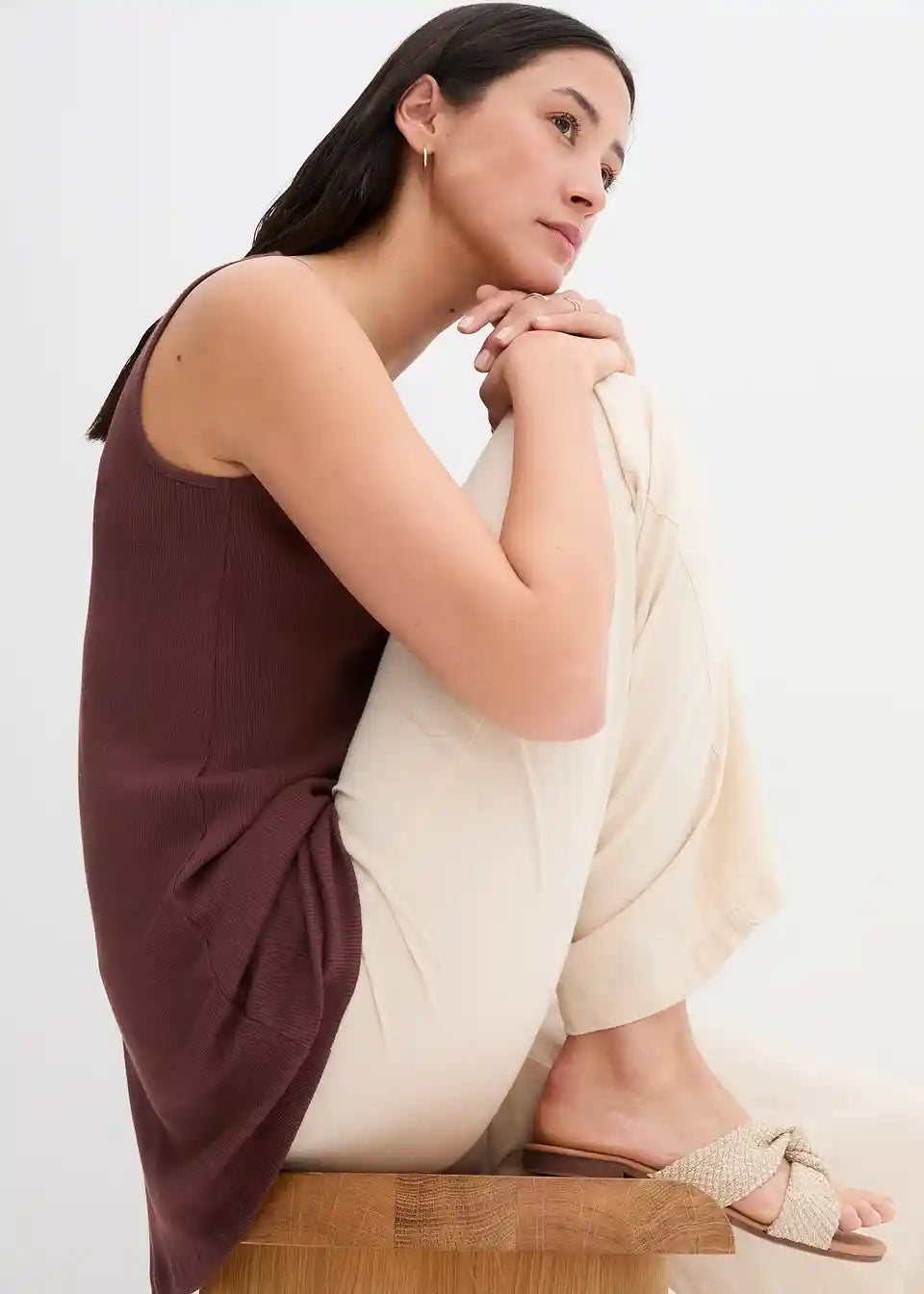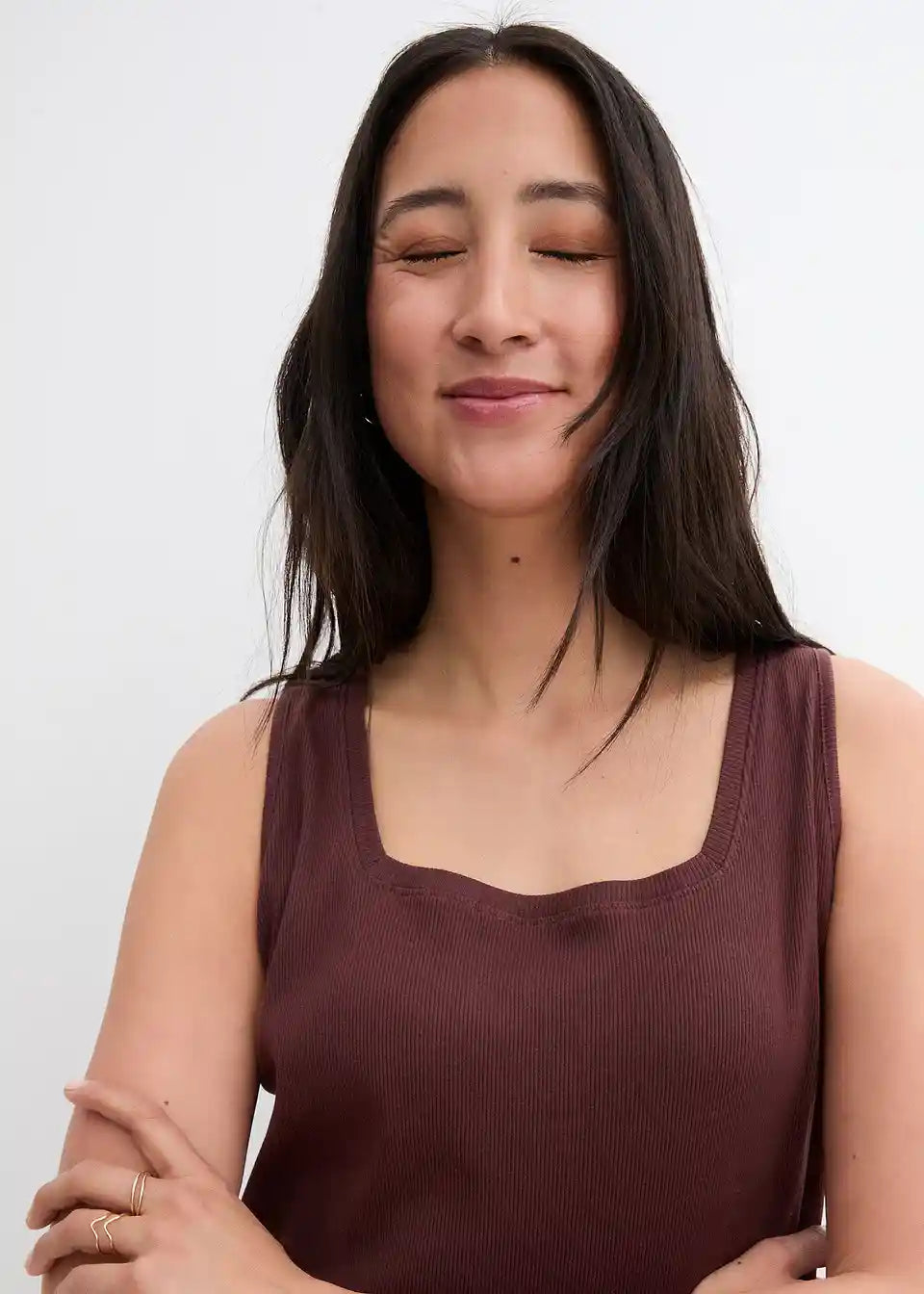 Rebrasta pamučna duga majica bez rukava s kvadratnim izrezom