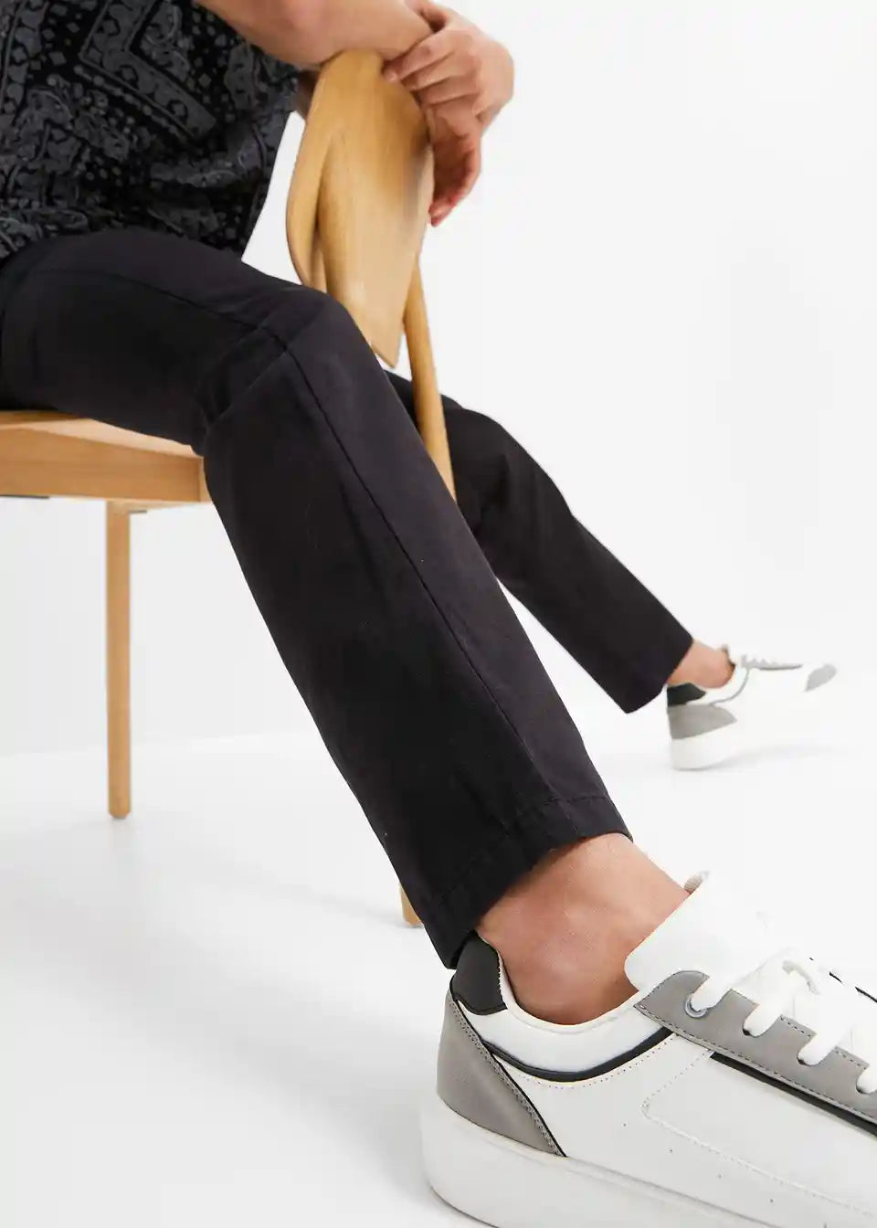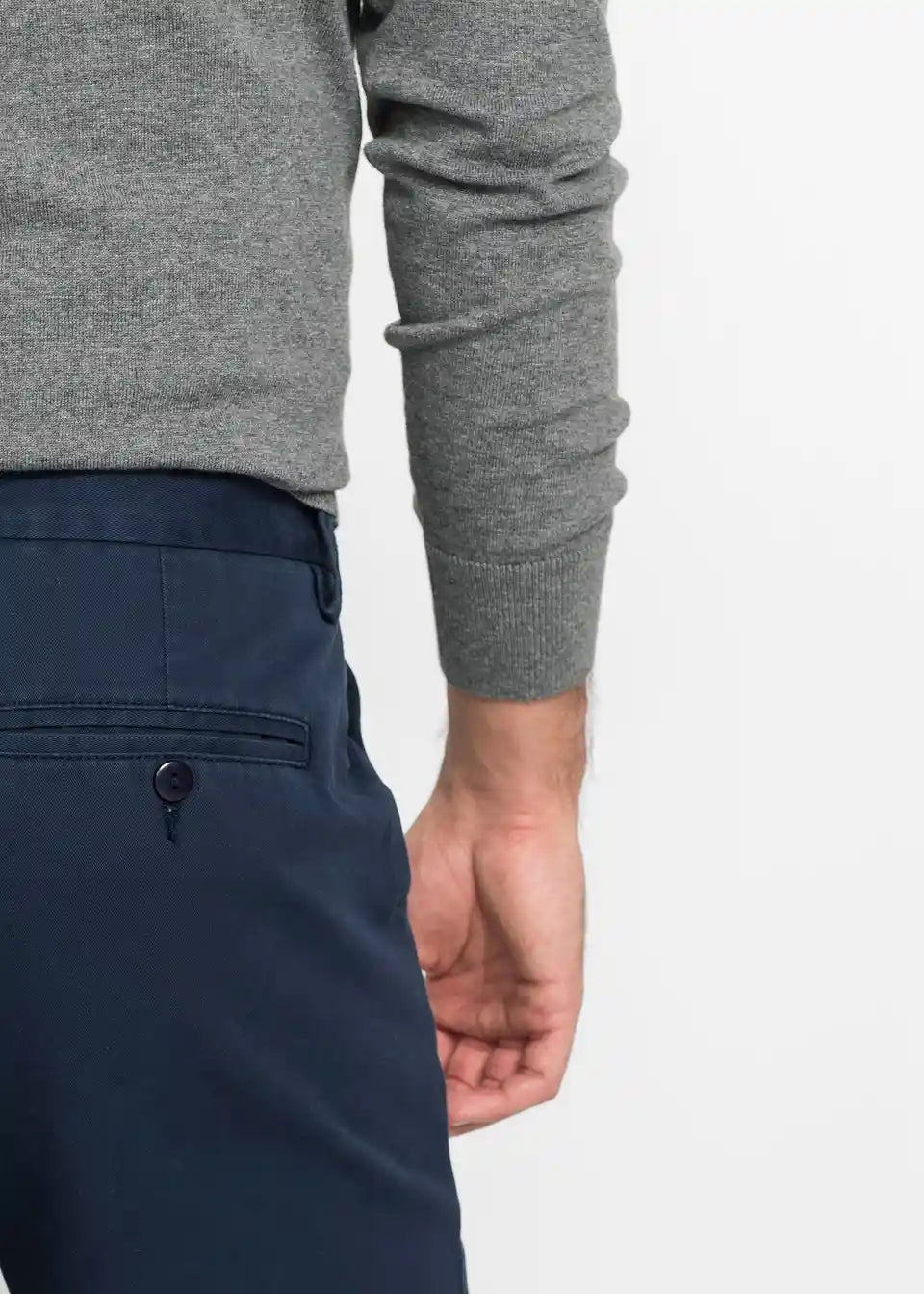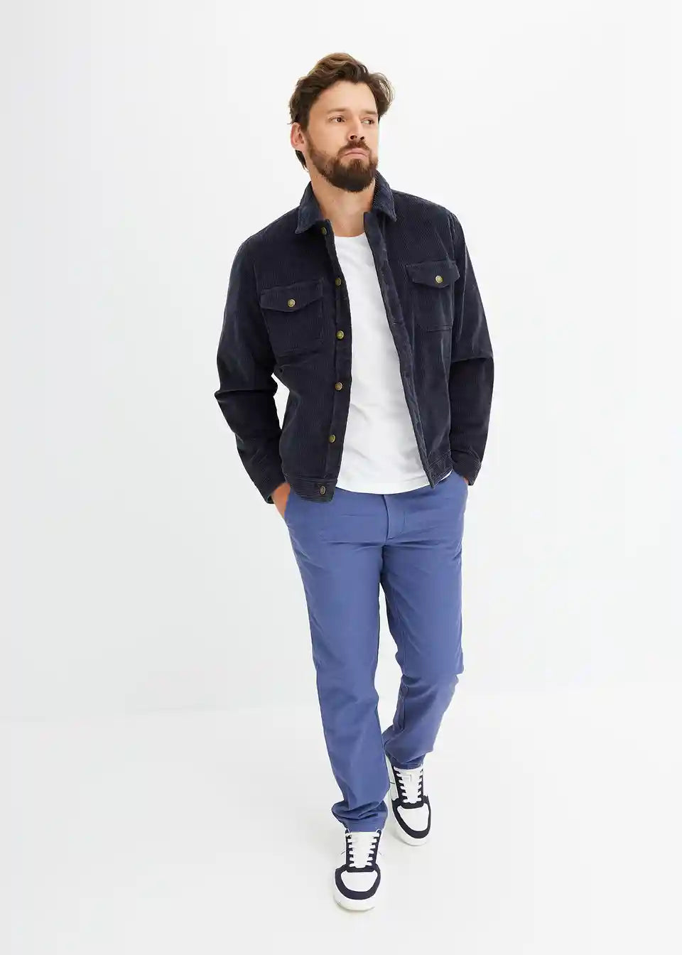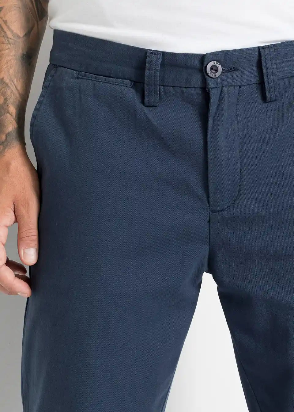 Muške chino hlače Regular Fit od bpc-a odlikuju se odličnim pristajanjem s ravnim nogavicama i osiguravaju uredan izgled. Klasičan kroj s normalnom visinom struka, patentnim zatvaračem i pojasom s omčama čini ove chino hlače svestranim osnovnim odjevnim predmetom. Koso postavljeni džepovi naprijed i stražnji džepovi s paspulom i gumbom zaokružuju skladan dizajn modela u Regular Fit kroju. U kombinaciji s kariranim košuljama i kožnim cipelama nastaje privlačna odjevna kombinacija za dnevni izgled.