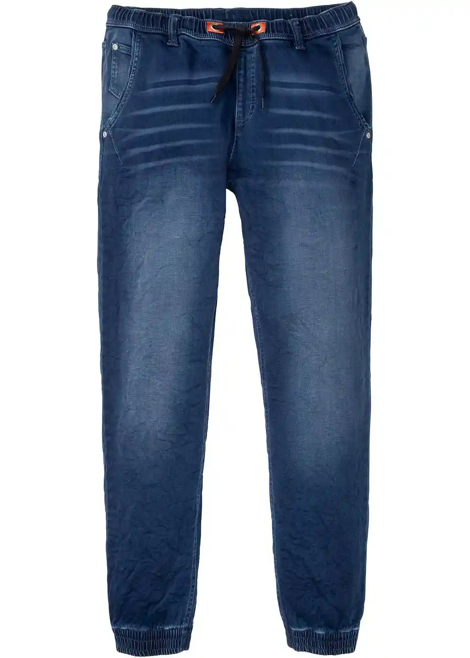 Trendovske sweat-traperice-joggpants u crinkle izgledu s kontrastnim detaljima.