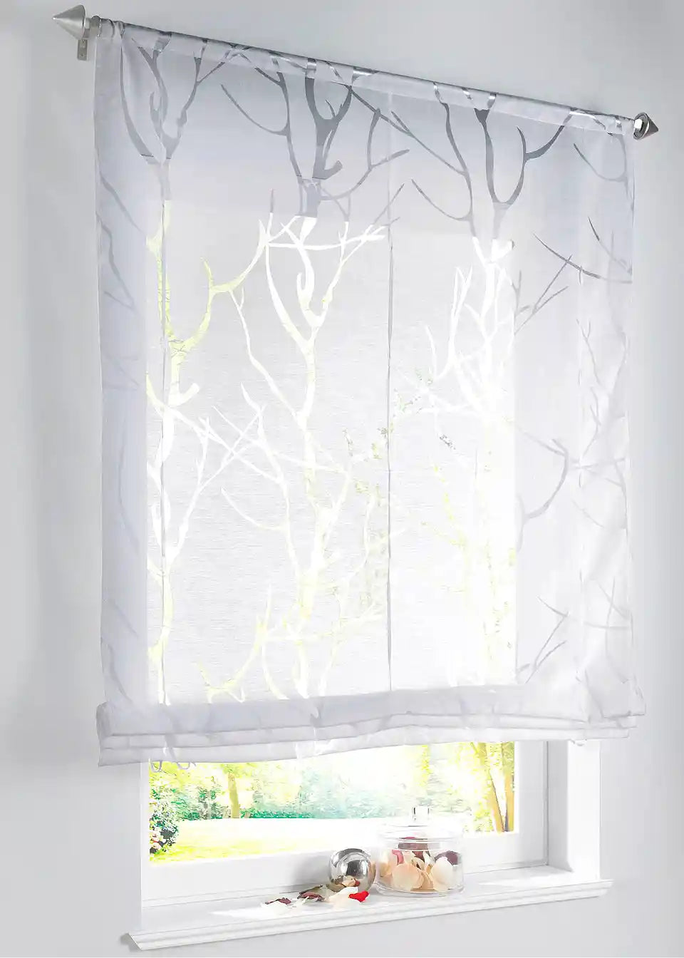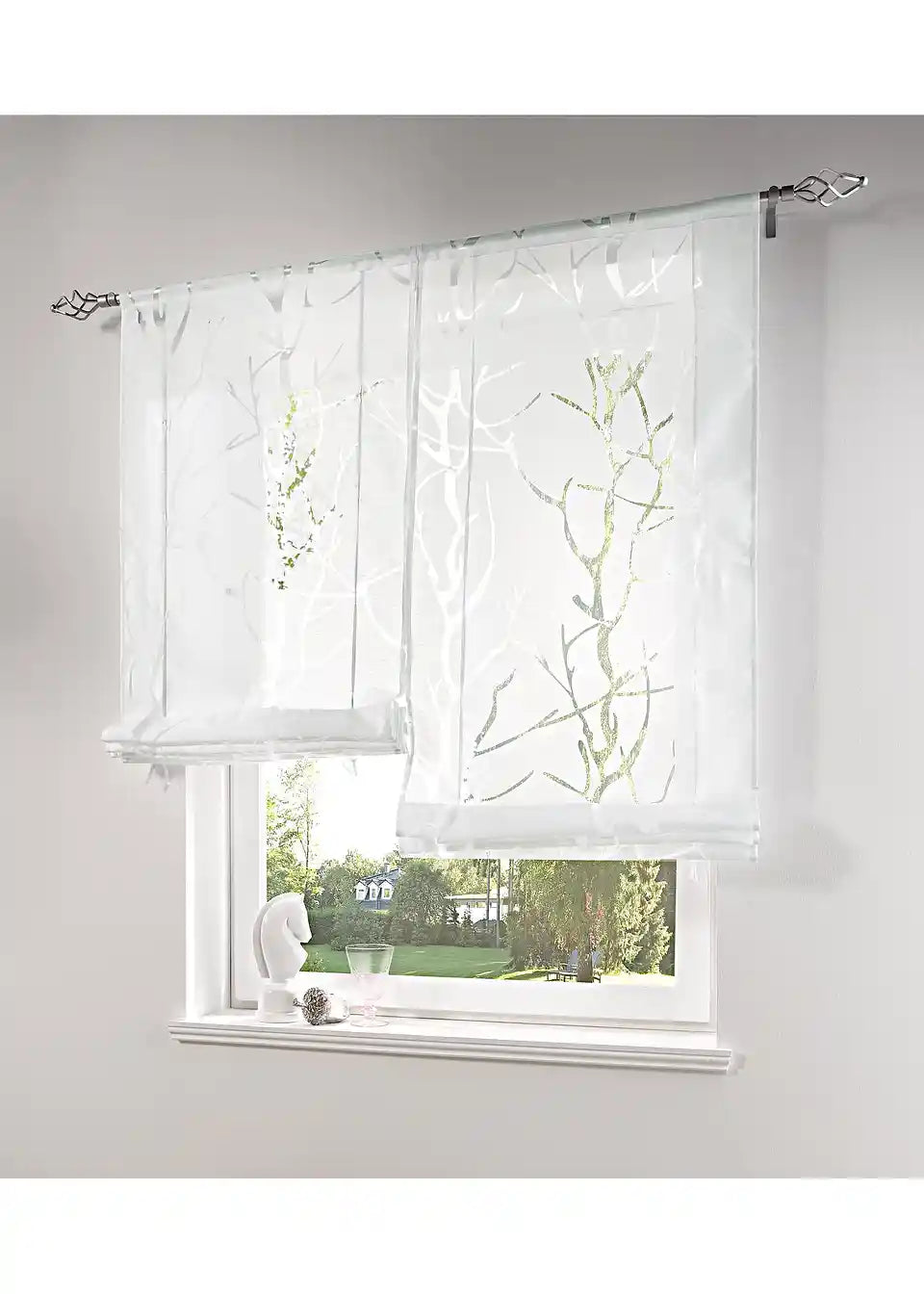 Elegantna rolo zavjesa s vrpcom izrađena od poluprozirnog mješovitog materijala, uzorak je izrađen složenim postupkom izgaranja, jednostavno namjestite željenu visinu pomoću ušivenih vrpci i pričvrstite - gotovo!