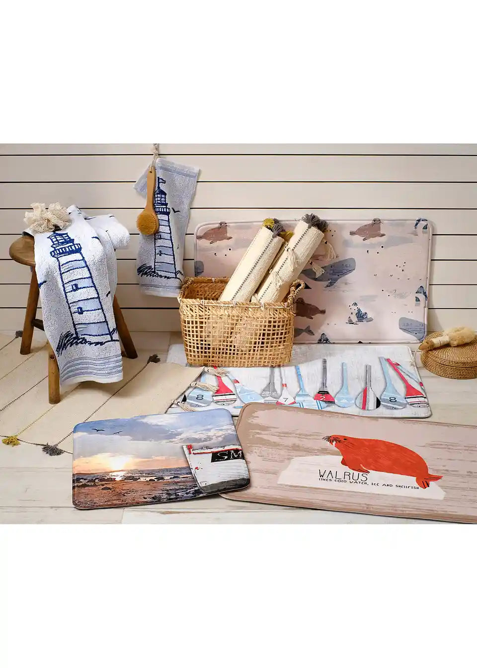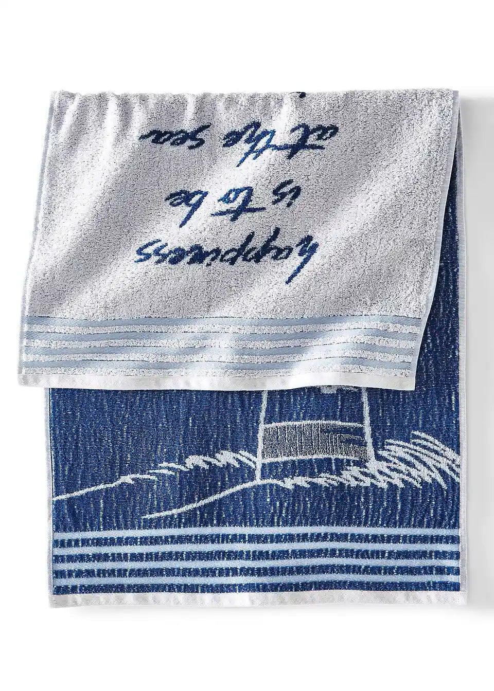 Motiv i izjava (ručnik za goste bez izjave) pružaju morski ugođaj u kupaonici, perivo na 60°C, ugodno mekana i upijajuća kvaliteta.