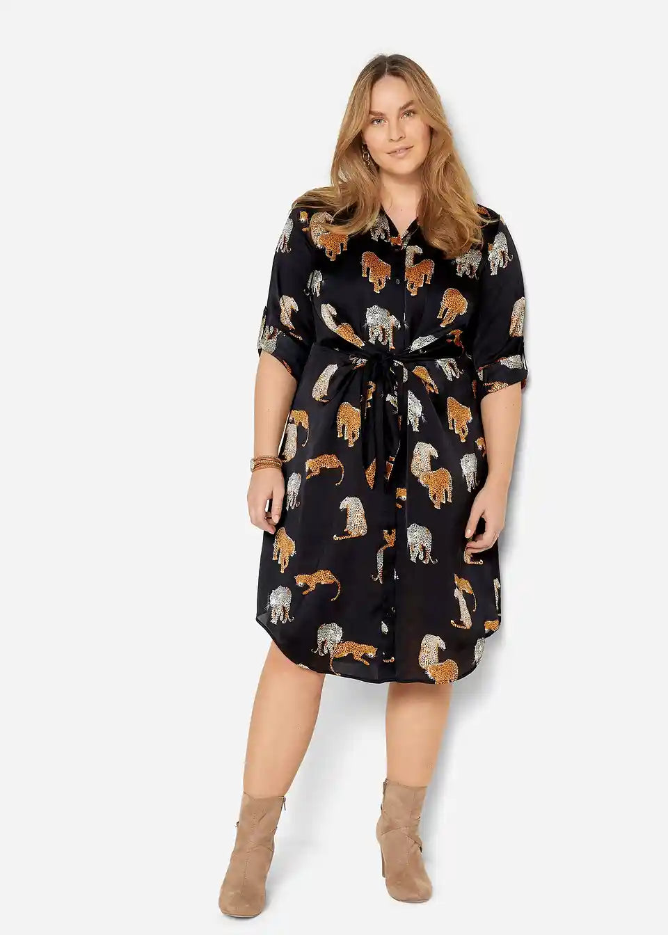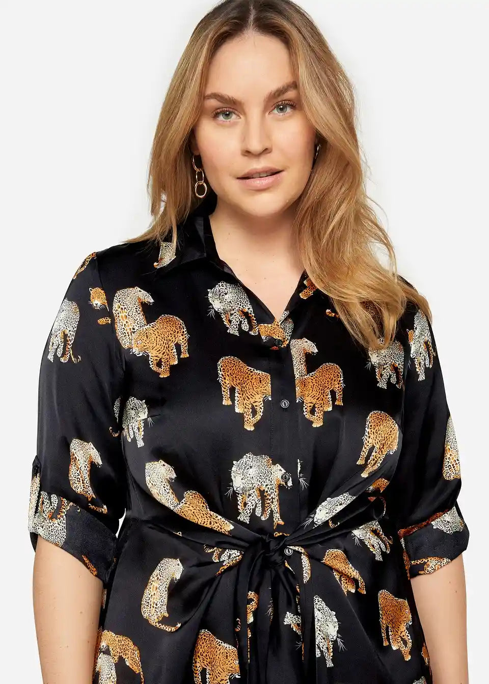 Prekrasna satenska košulja haljina s modernim leopard uzorkom