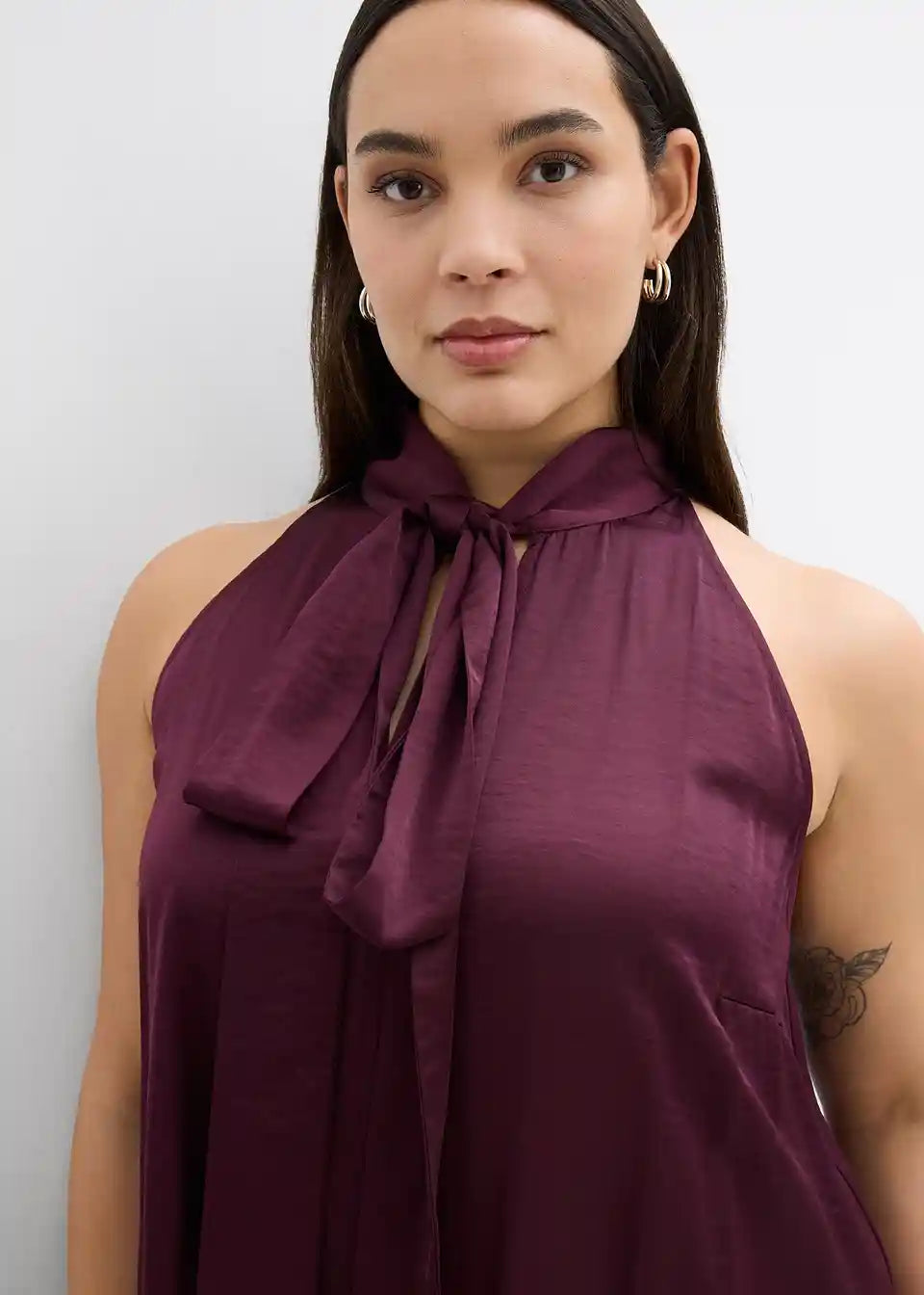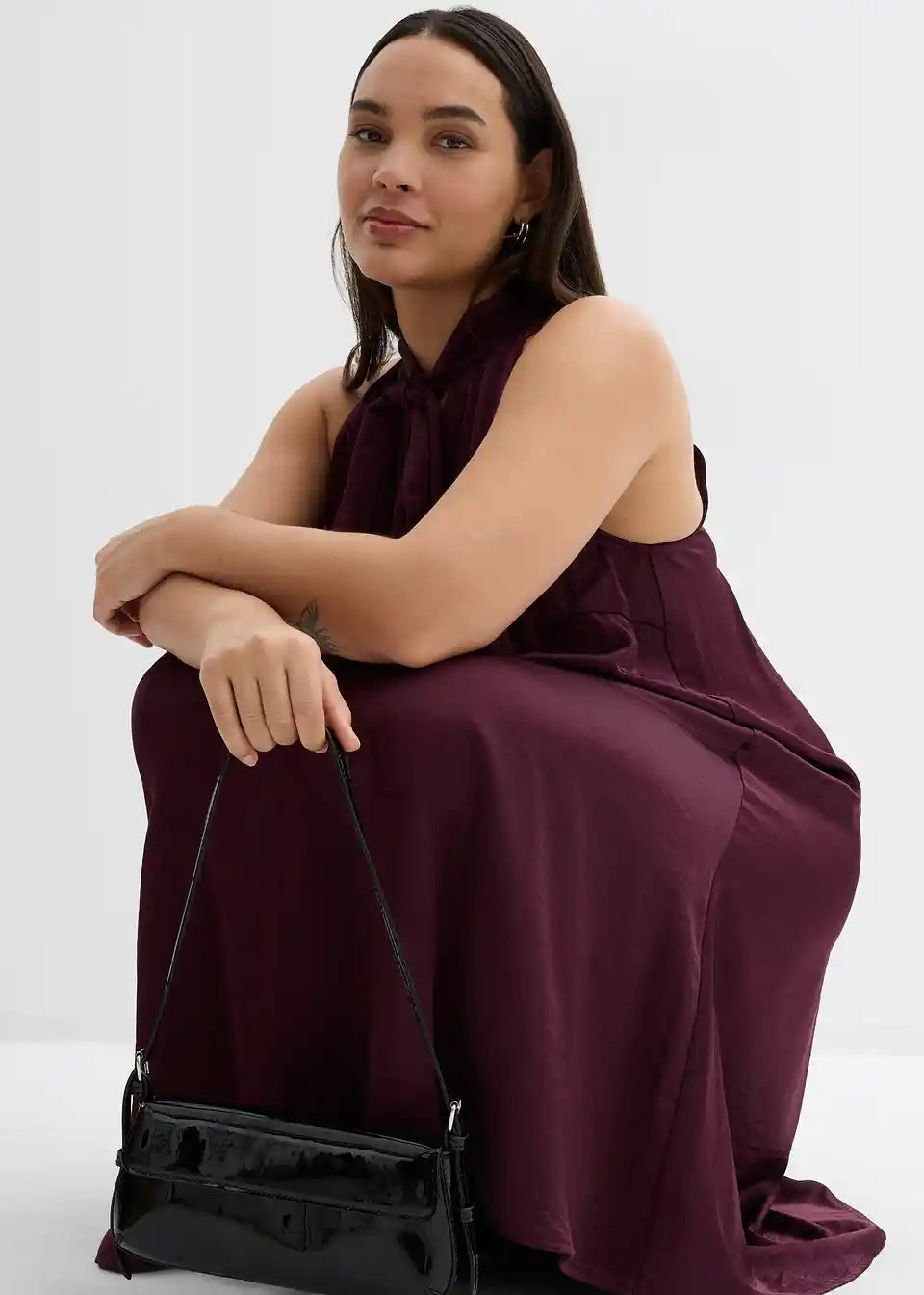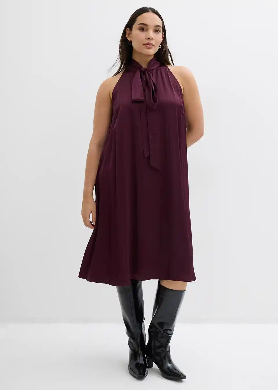 Lepršava haljina Midi s vezanjem oko vrata od lepršavog satena s detaljem marame