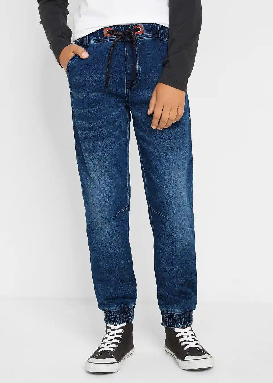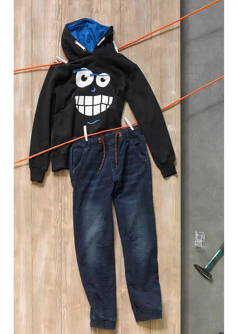 Ove cool Sweat-Jeans hlače oduševljavaju posebno udobnim krojem zahvaljujući elastičnom pojasu i završetcima nogavica te laganom pamučnom materijalu s malim udjelom elastana. Savršeno se mogu kombinirati s ležernom majicom i tenisicama za školu i svakodnevicu. Crinkle efekt je poseban naglasak!