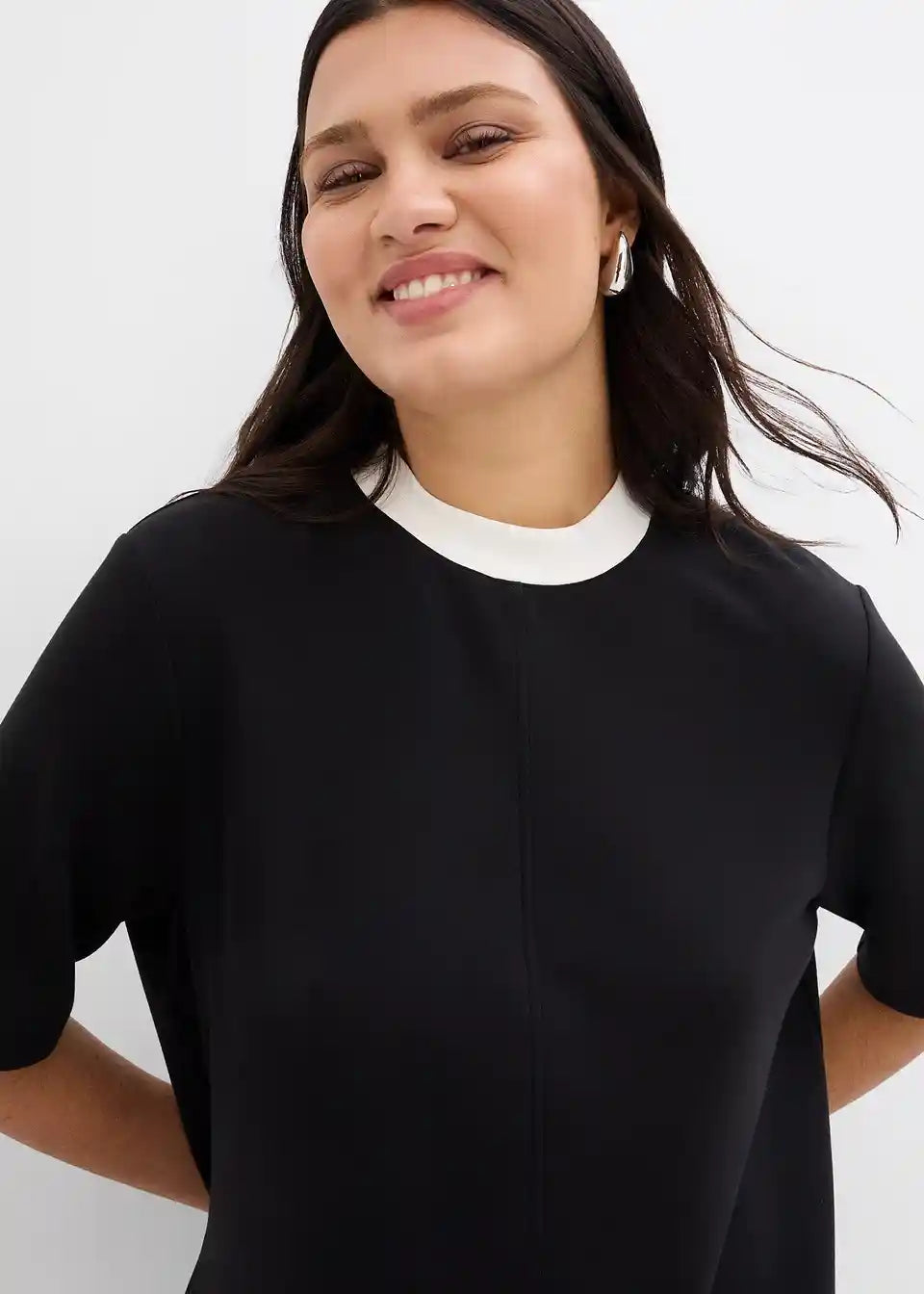 Mini haljina s dolčevita ovratnikom kontrastne boje od scuba materijala s udjelom viskoze