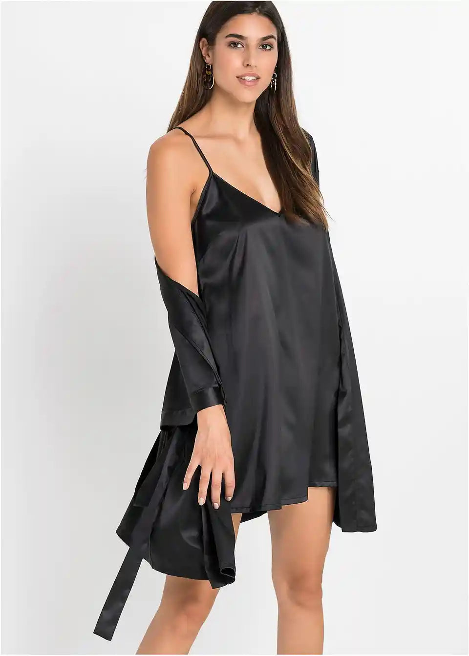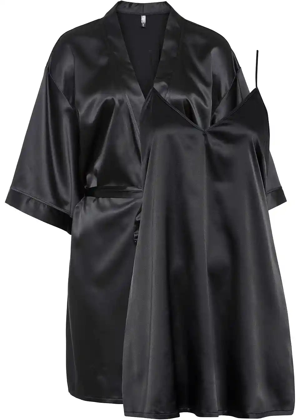 Ovaj elegantni set je neophodan i ne bi smio nedostajati ni u jednom ormaru s rubljem. Jednostavni negliže lako se prebacuje preko tijela. Kimono se može zavezati zahvaljujući pojasu u struku. Nošeno kao set ili pojedinačno, ova dva dijela uvijek oduševljavaju.