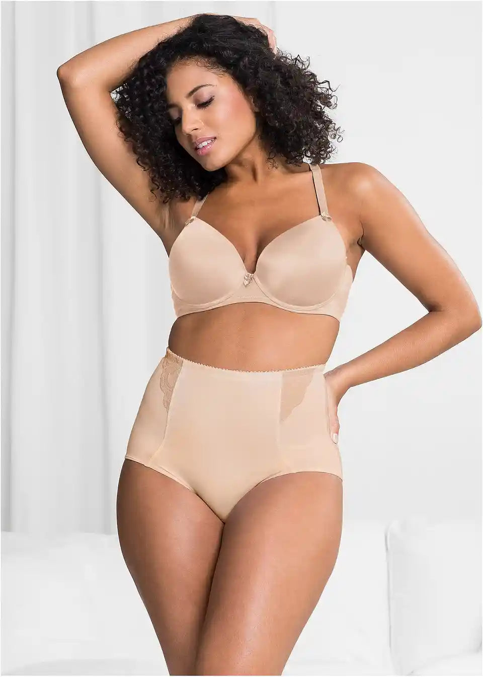 Čvrsti materijal ovog modela od Nice Size ima efekt oblikovanja. Šavovi pojačavaju područje trbuha i podržavaju učinak. Zahvaljujući plosnatim šavovima na završetku nogavica, shape gaćice ostaju nevidljive čak i ispod uskih suknji i hlača. Bočni čipkasti umetci dodaju funkcionalnim shape gaćicama lijepu notu. Podstava je od pamuka. Odgovarajući grudnjak s mekanim košaricama upotpunjuje ovaj slip za atraktivan komplet.