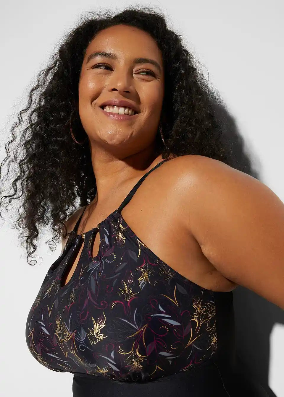 Elegantni kupaći kostim s lijepim detaljima na izrezu izrađen od oblikujućeg materijala