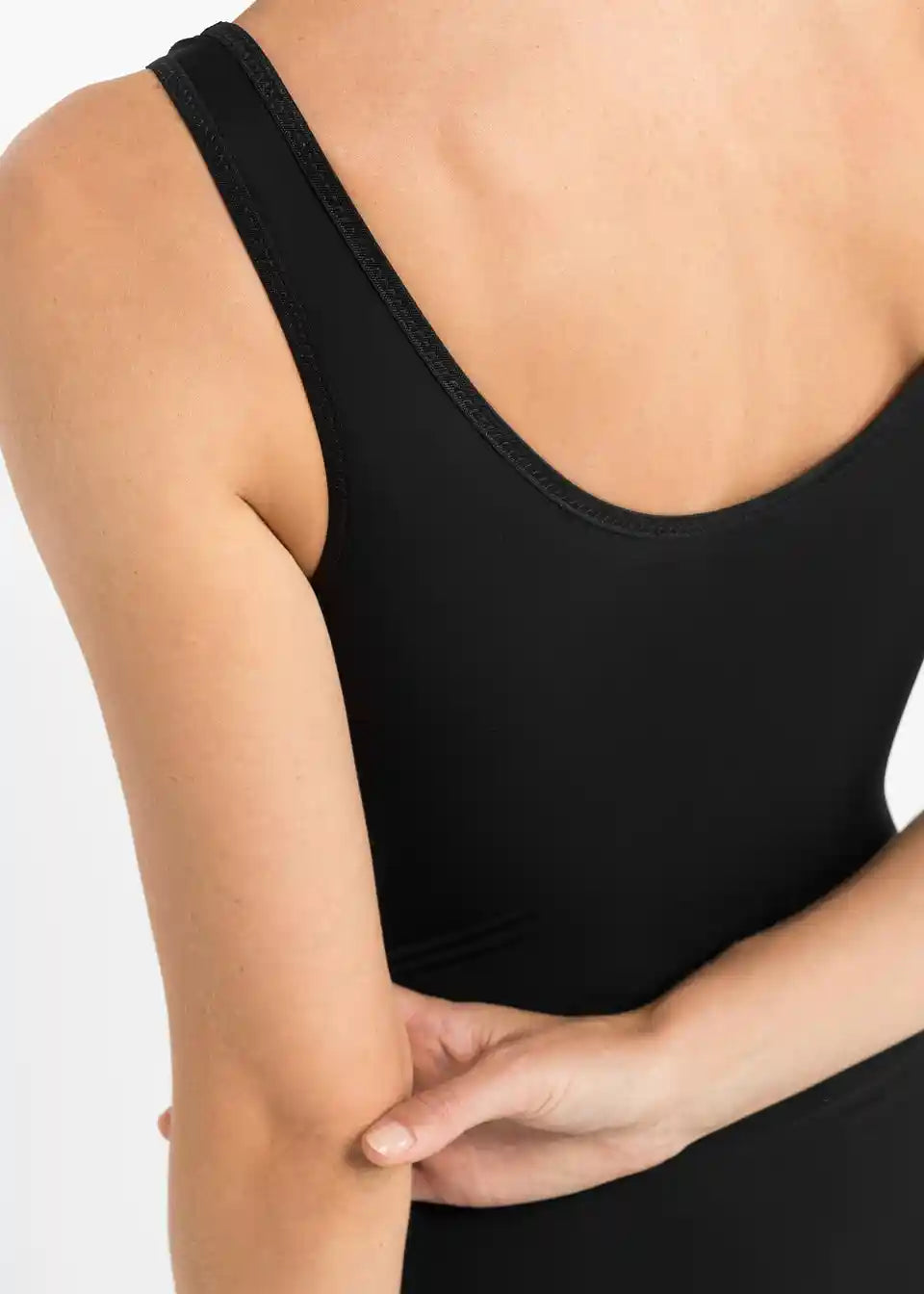 Ovaj prekrasni top od Nice Size stvara privlačnu siluetu. Neprozirni top s srednjim učinkom oblikovanja prikladan je za veličine košarica od A do D te lijepo oblikuje trbuh. Košarice i naramenice ukrašene su zavodljivom čipkom. Ovaj oblikujući top može se nositi samostalno ili u kombinaciji s grudnjakom.