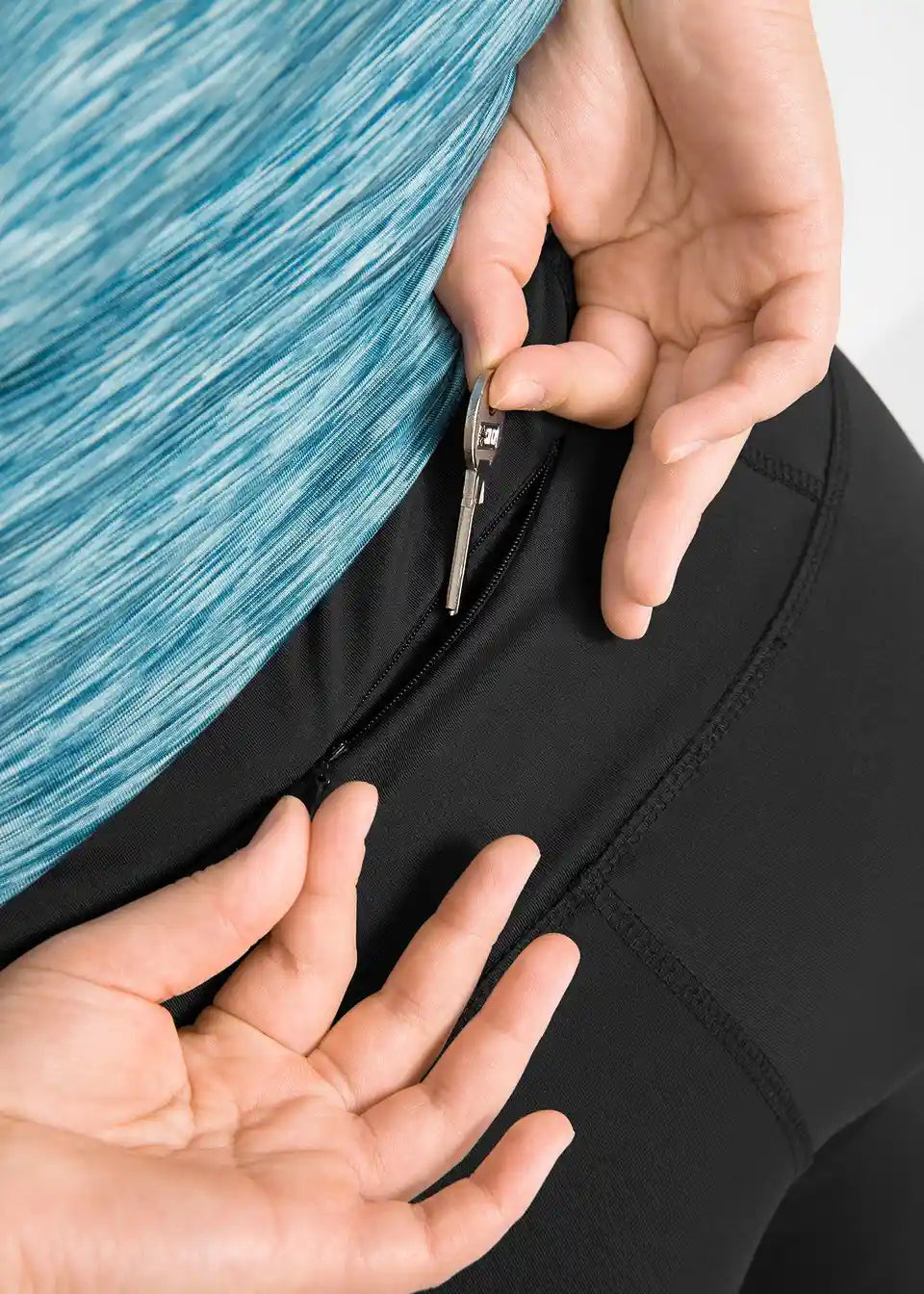 Brzosušeće sportske tajice od super elastičnog materijala u 3/4-dužini bez bočnih šavova s prikrivenim džepom na stražnjem pojasu