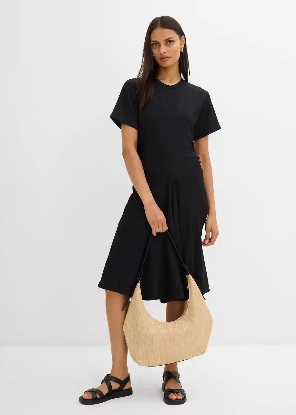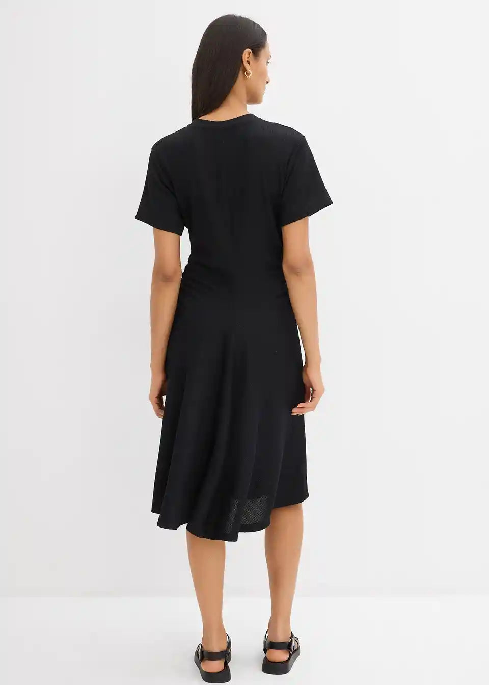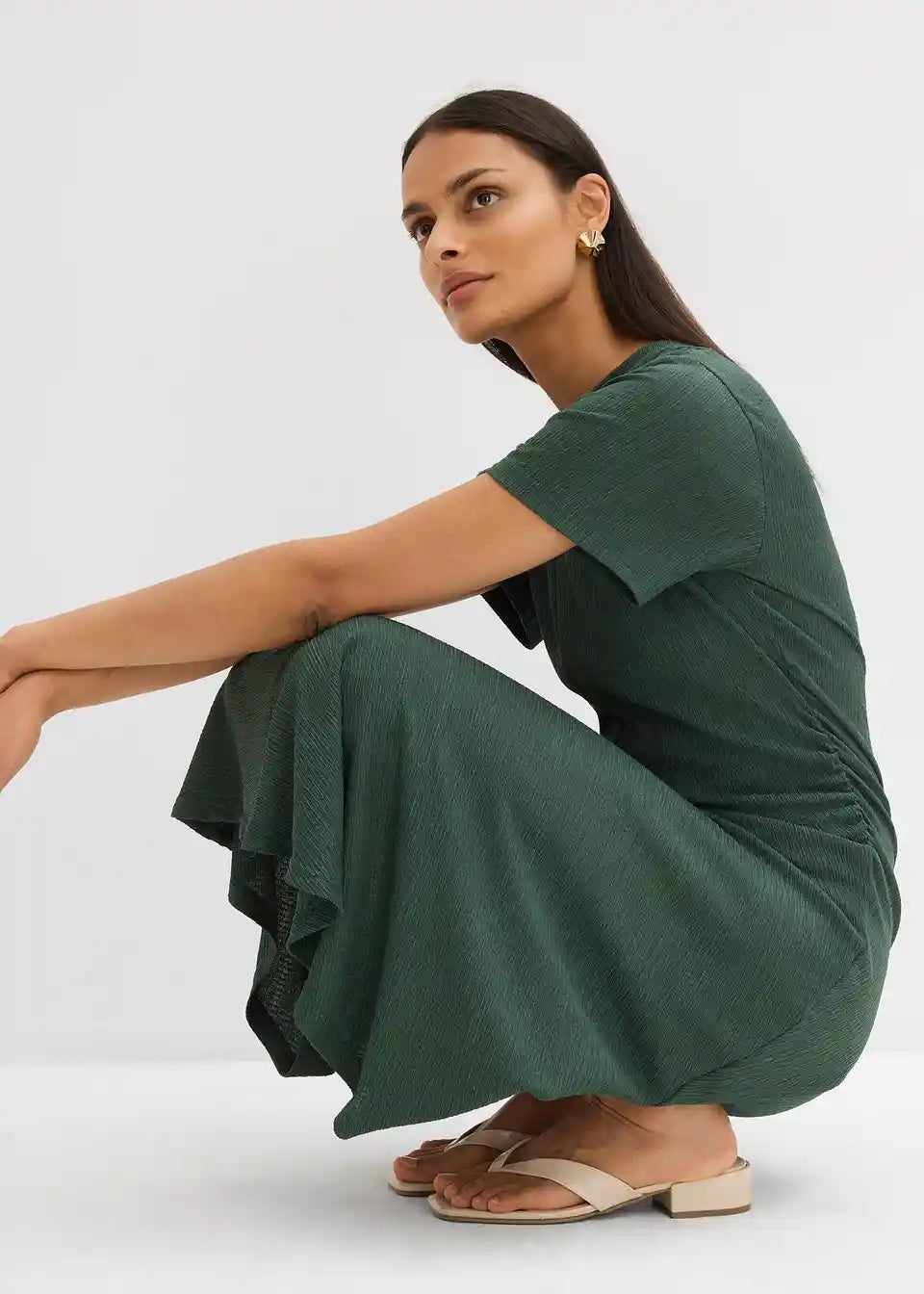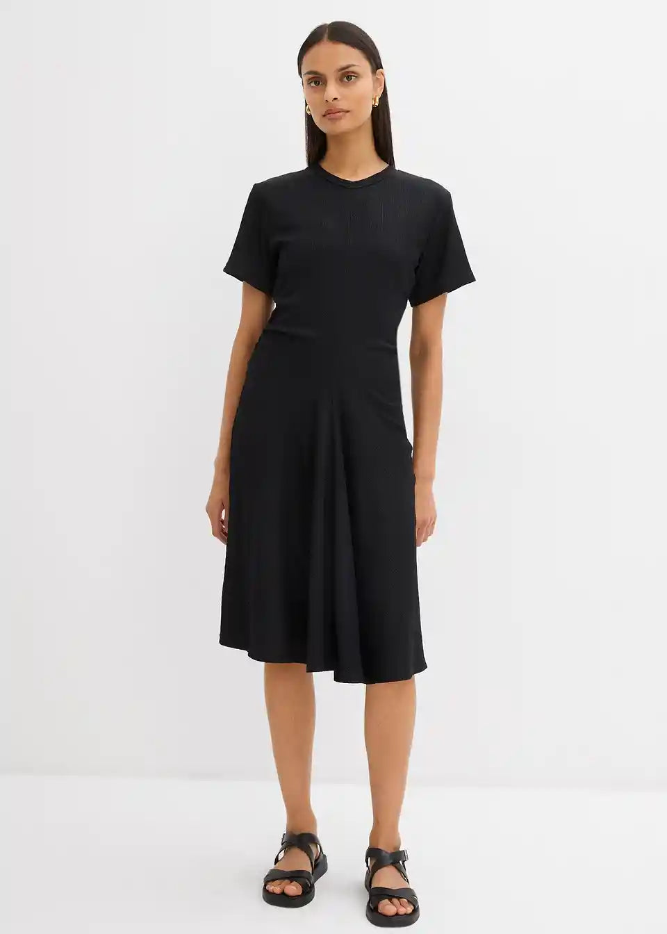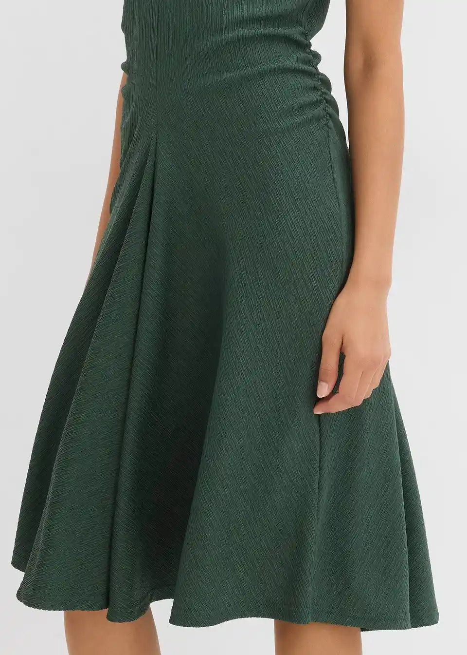 Shirt haljina od tkanine sa strukturiranim uzorkom. Okrugli izrez i kratki rukavi. Nabori u struku i vertikalni dio šava sprijeda.