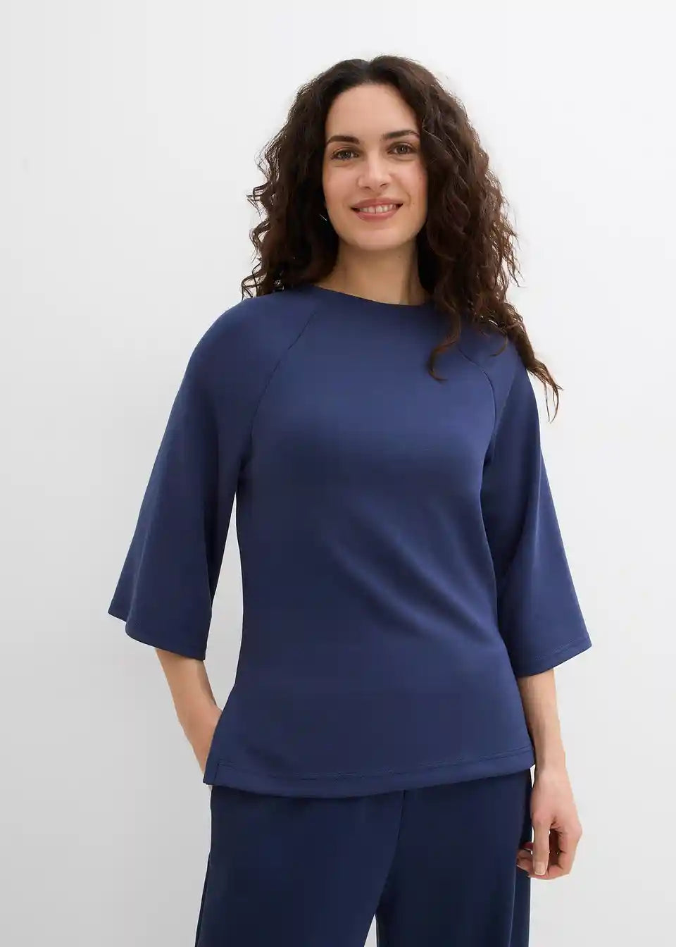 Široko krojen shirt od meke mješavine viskoze s 3/4 rukavima i bočnim prorezima. S elastičnim detaljem na leđima za dodatnu udobnost.