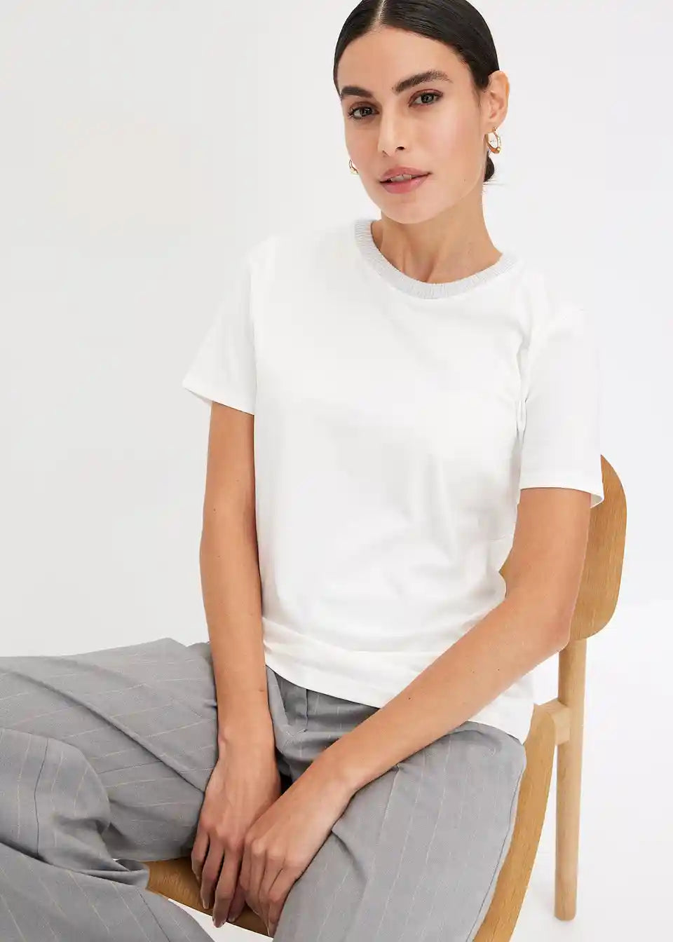 Majica s rebrastim rubovima od pletenine i sjajnim vlaknima