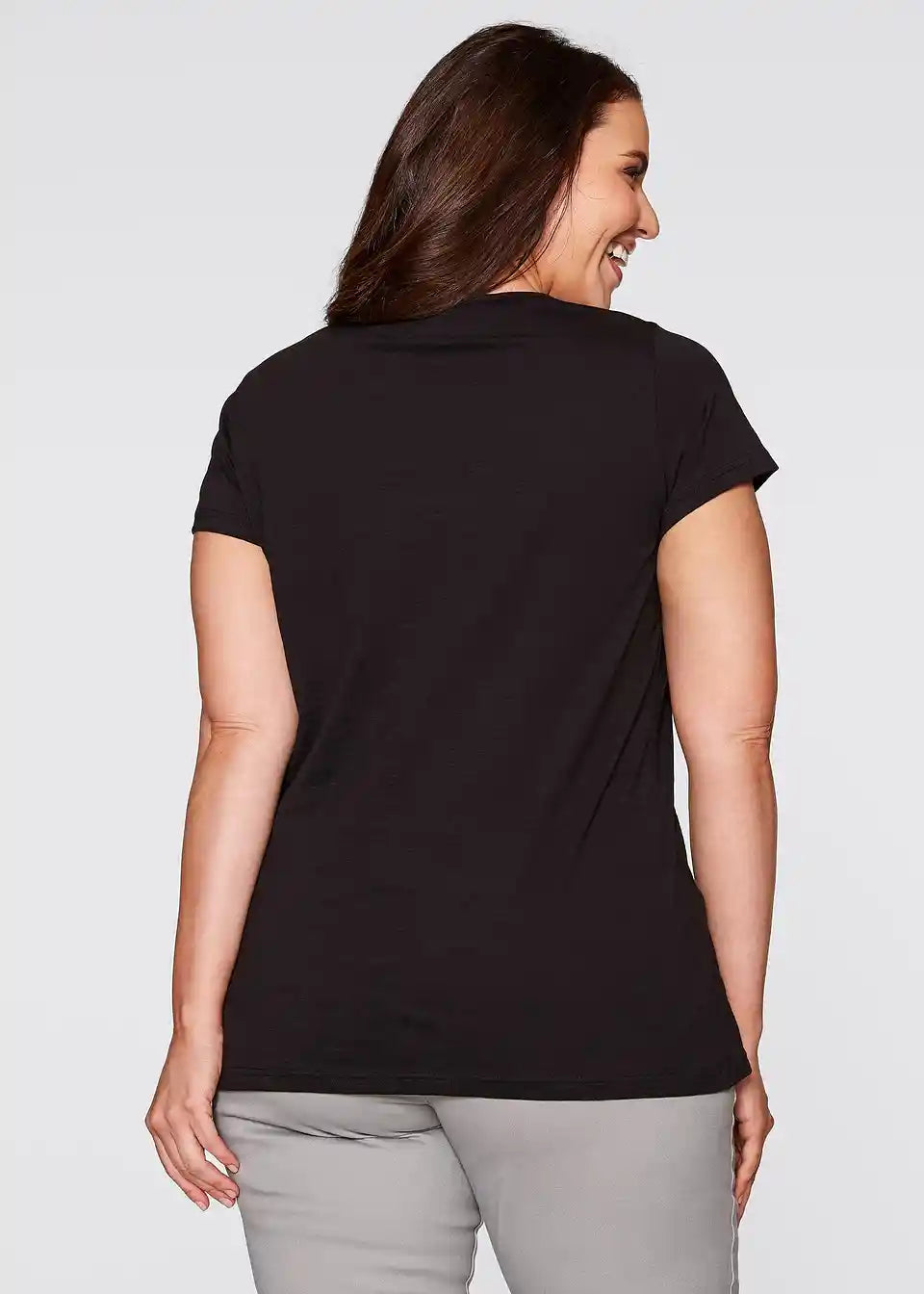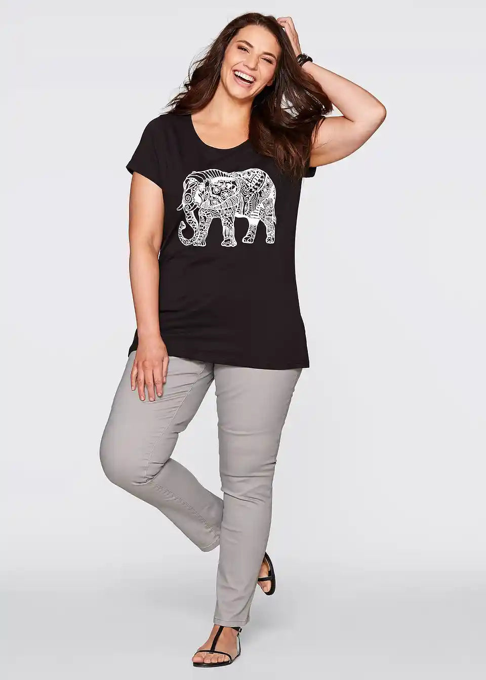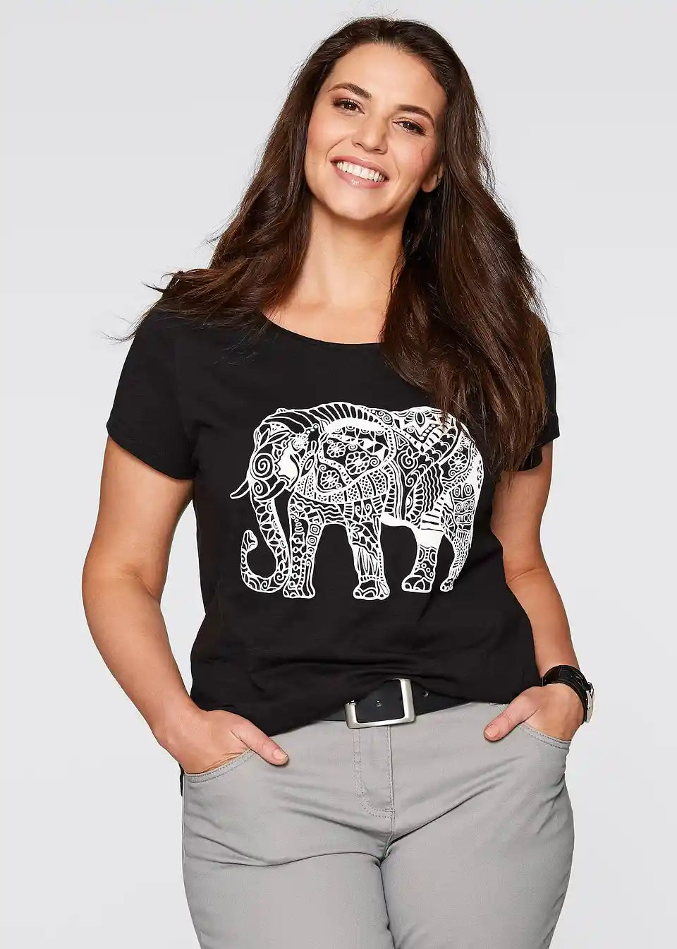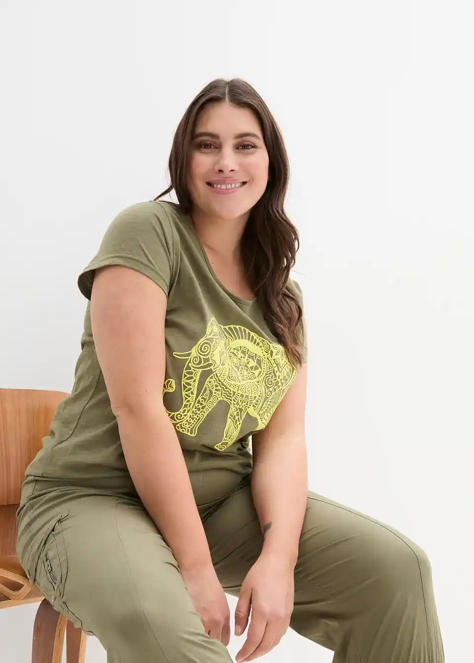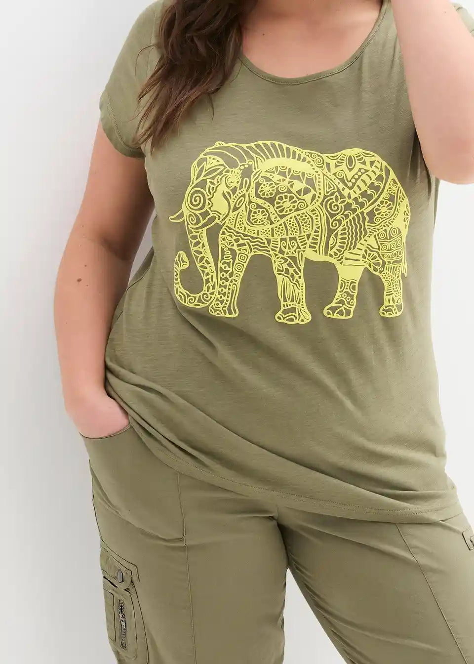 Zahvaljujući mekanom i lepršavom materijalu te izvrsnom kroju, ova majica s pola rukava iz kolekcije bpc postaje omiljeni komad. Labavi kroj laska figuri i pruža ugodan osjećaj. Prednji dio majice ukrašen je lijepim printom. Model kratkih rukava ima klasični okrugli izrez. Savršeno se kombinira s trapericama i sandalama za ležeran izgled.